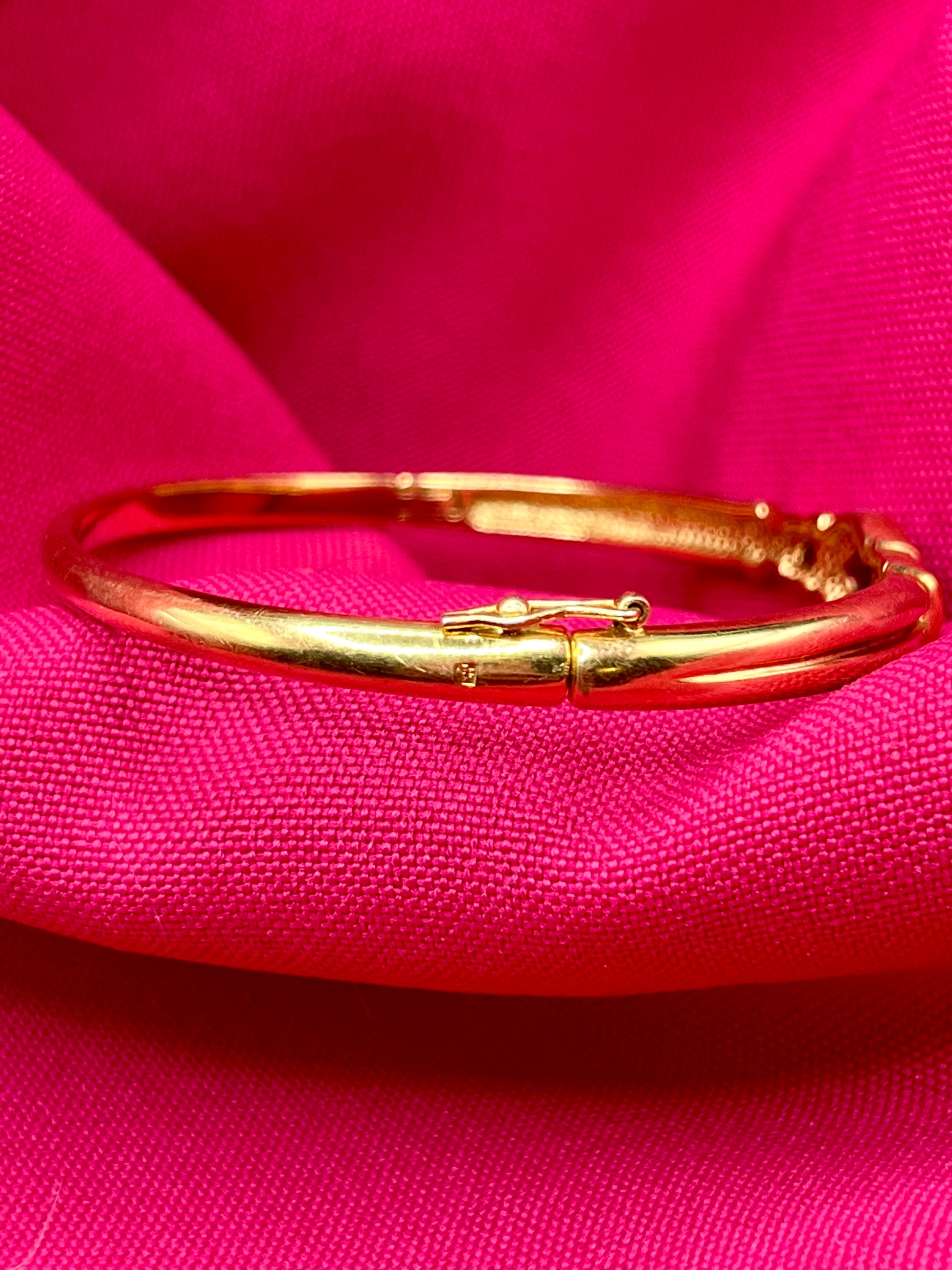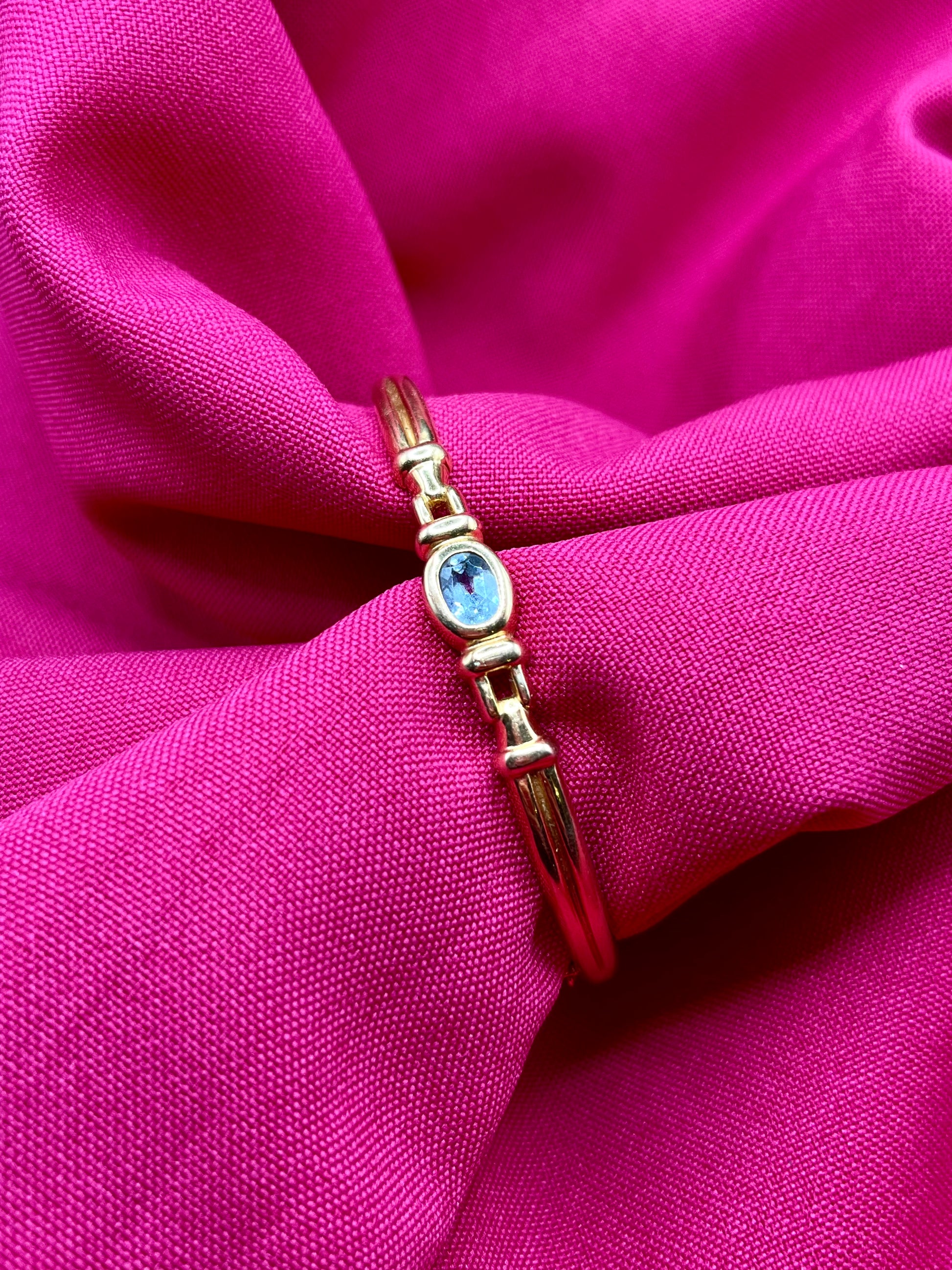 FR/ Sublime bracelet jonc en plaqué or des années 1930, sertie d’une belle pierre bleue claire et avec un design très élégant. Le fermoir est typique de l’époque. Pièce rare et unique.