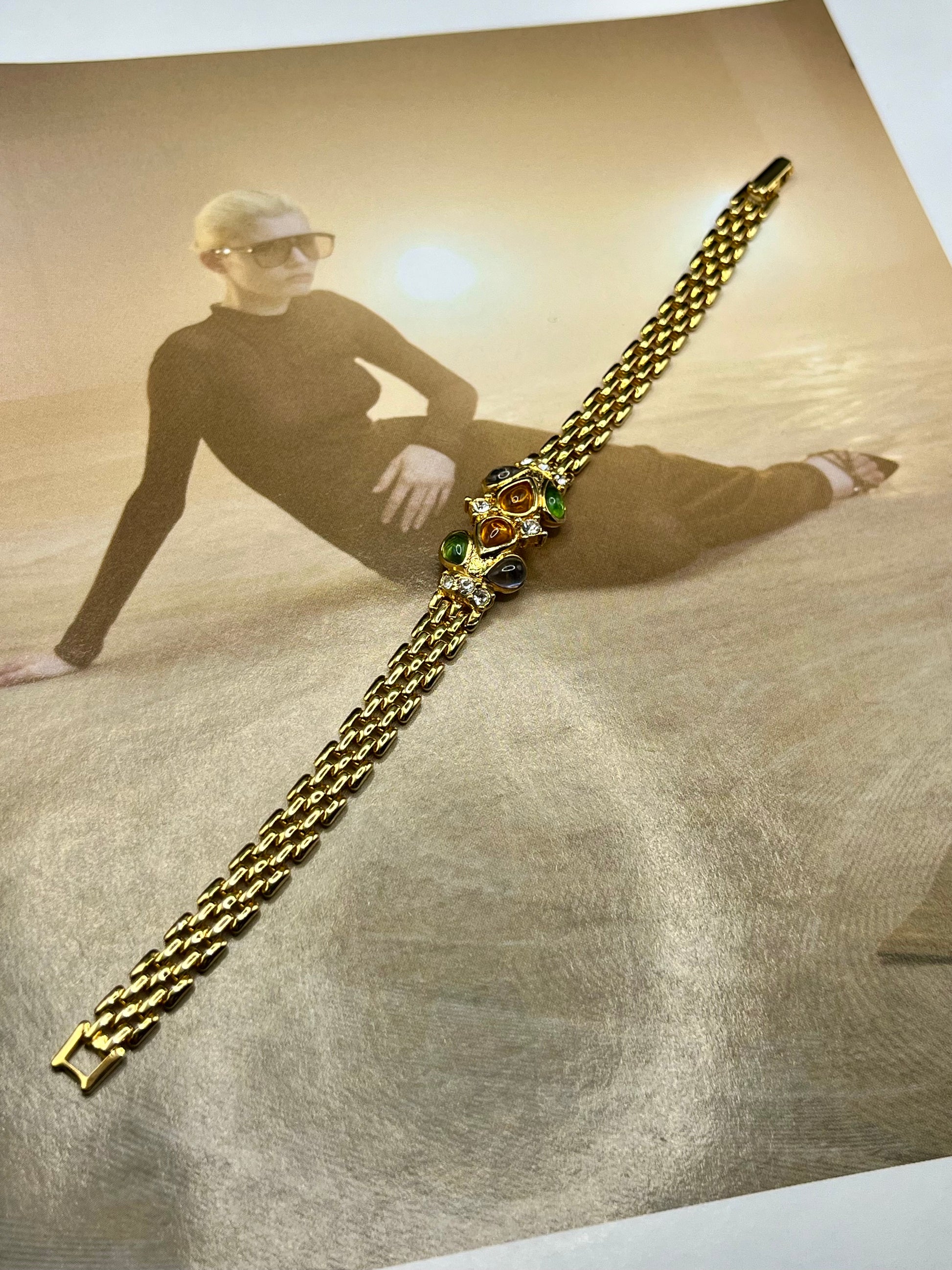 FR/ Très joli bracelet élégant en plaqué or 9 carats et pâte de verre.