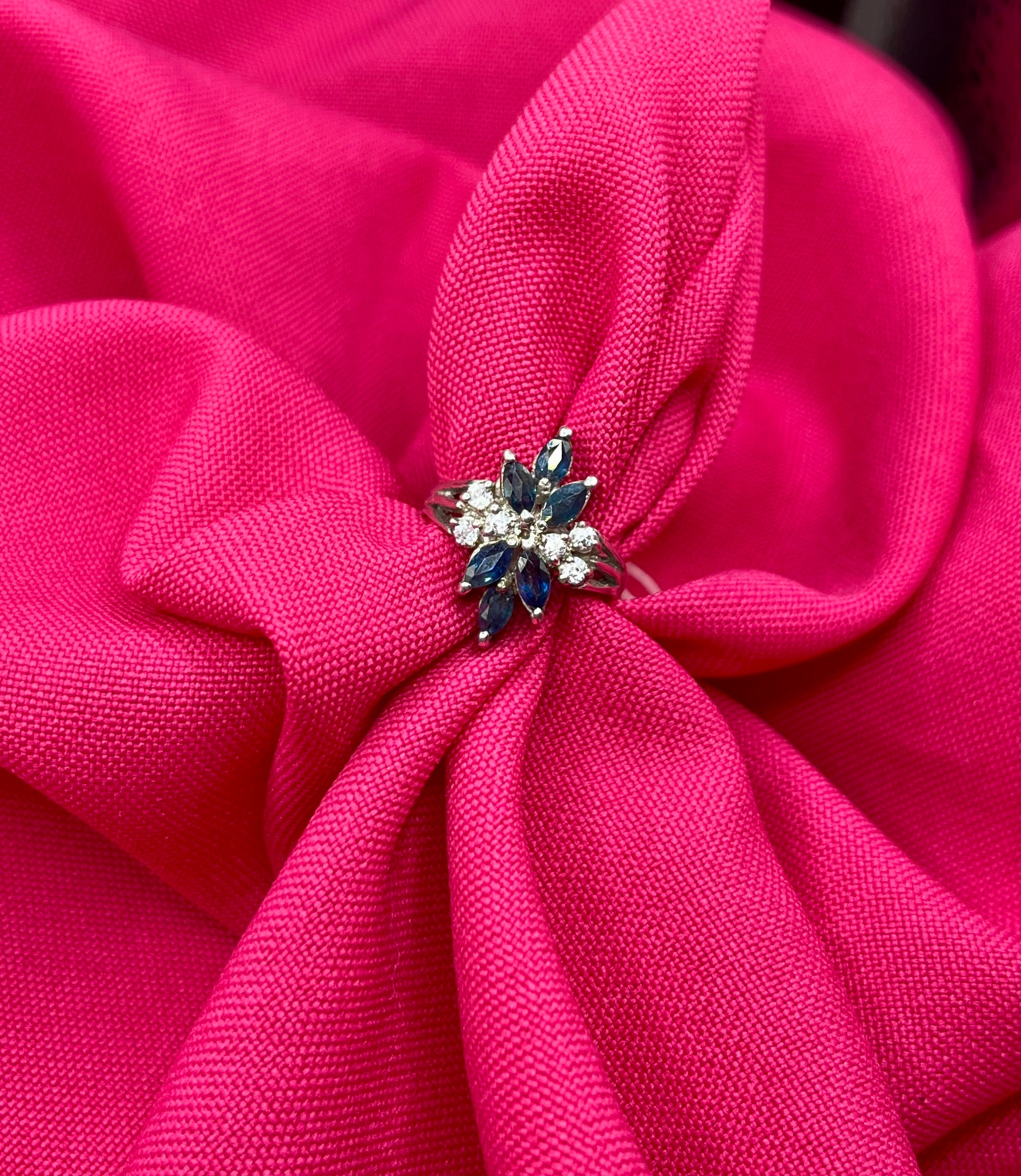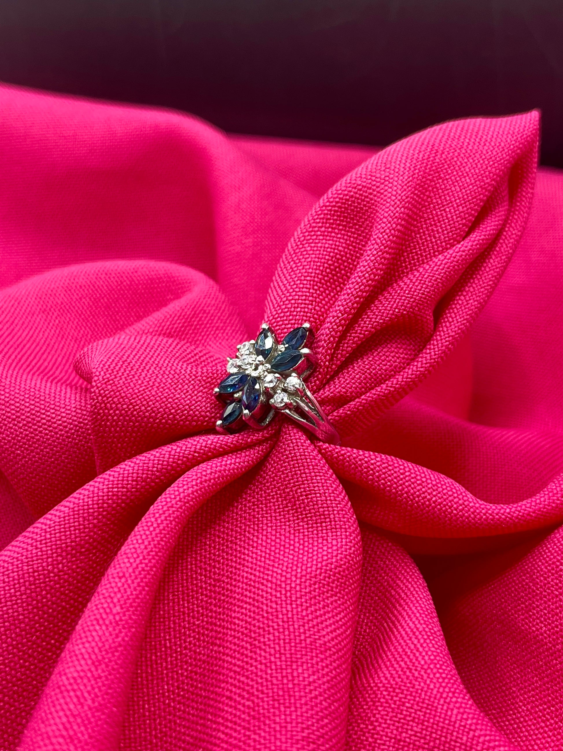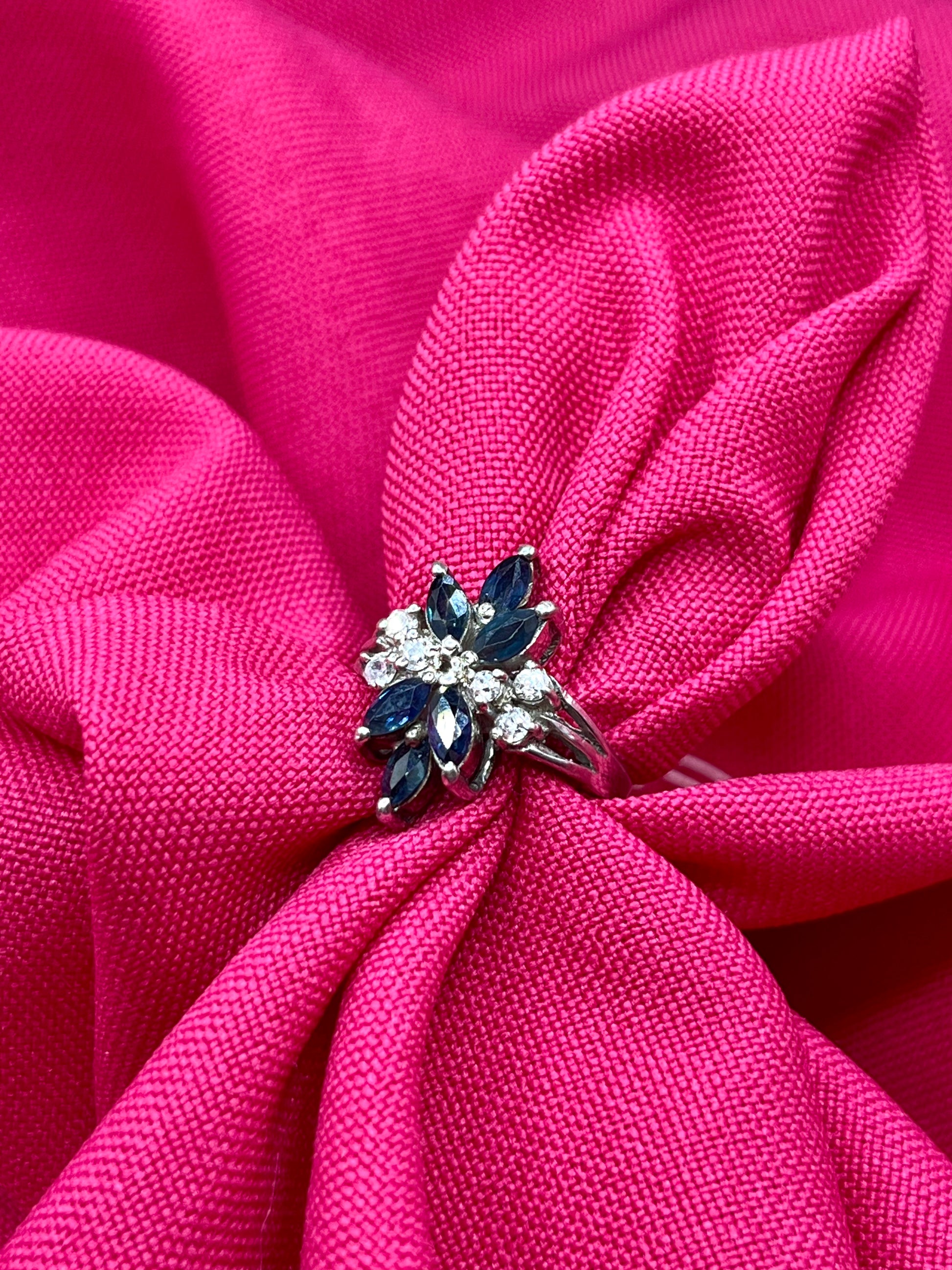 FR/ Sublime modèle des années 20 en argent 925 sertie de pierres bleues nuit et zirconiums. Une pièce entre le classique l’originalité.