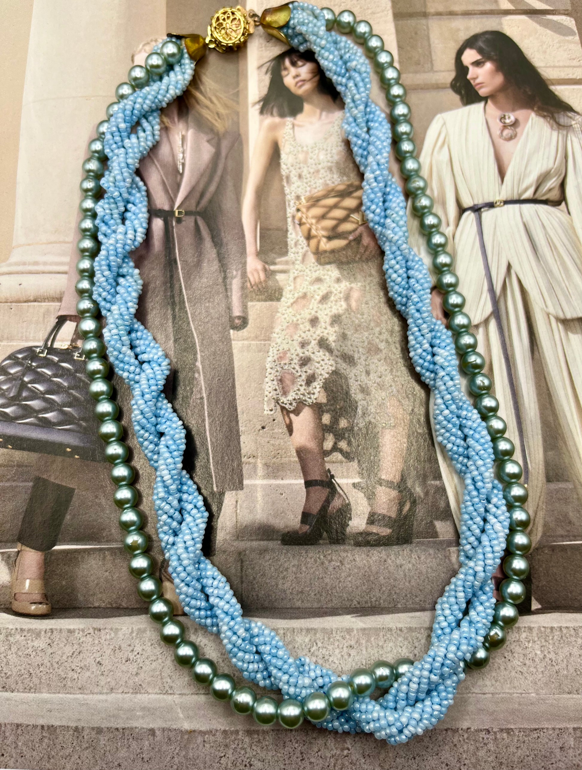 EN/ Double row blue pearl necklace from the 1950s, a real nugget with a very pretty clasp typical of those years. A rare, elegant and delicate piece.