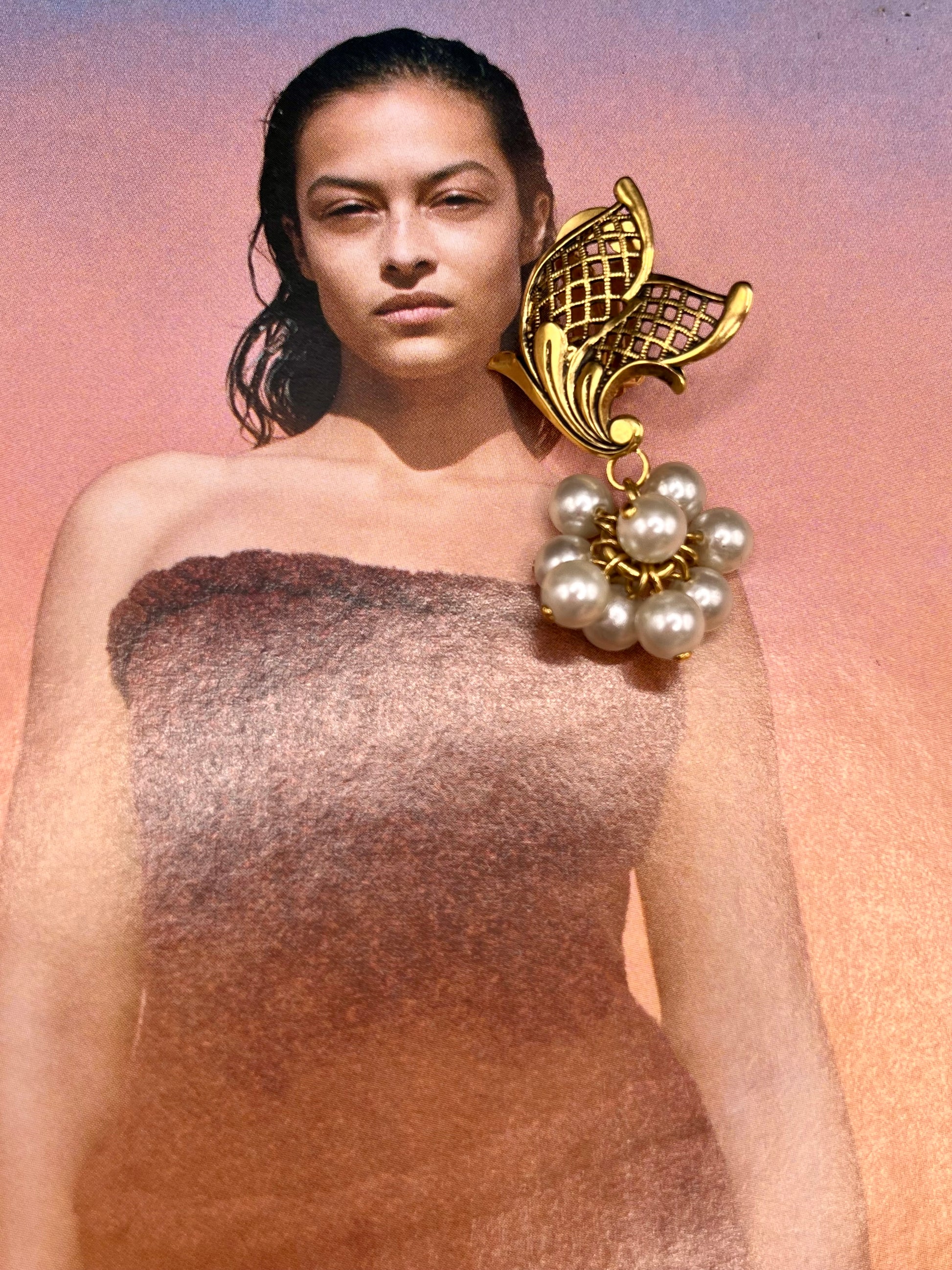 EN/ Sublime pair of clips from the 50s. The details and the delicacy of the frame is crazy. The hanging pearls that follow the movement of the head add a fun and adorable side to this piece.