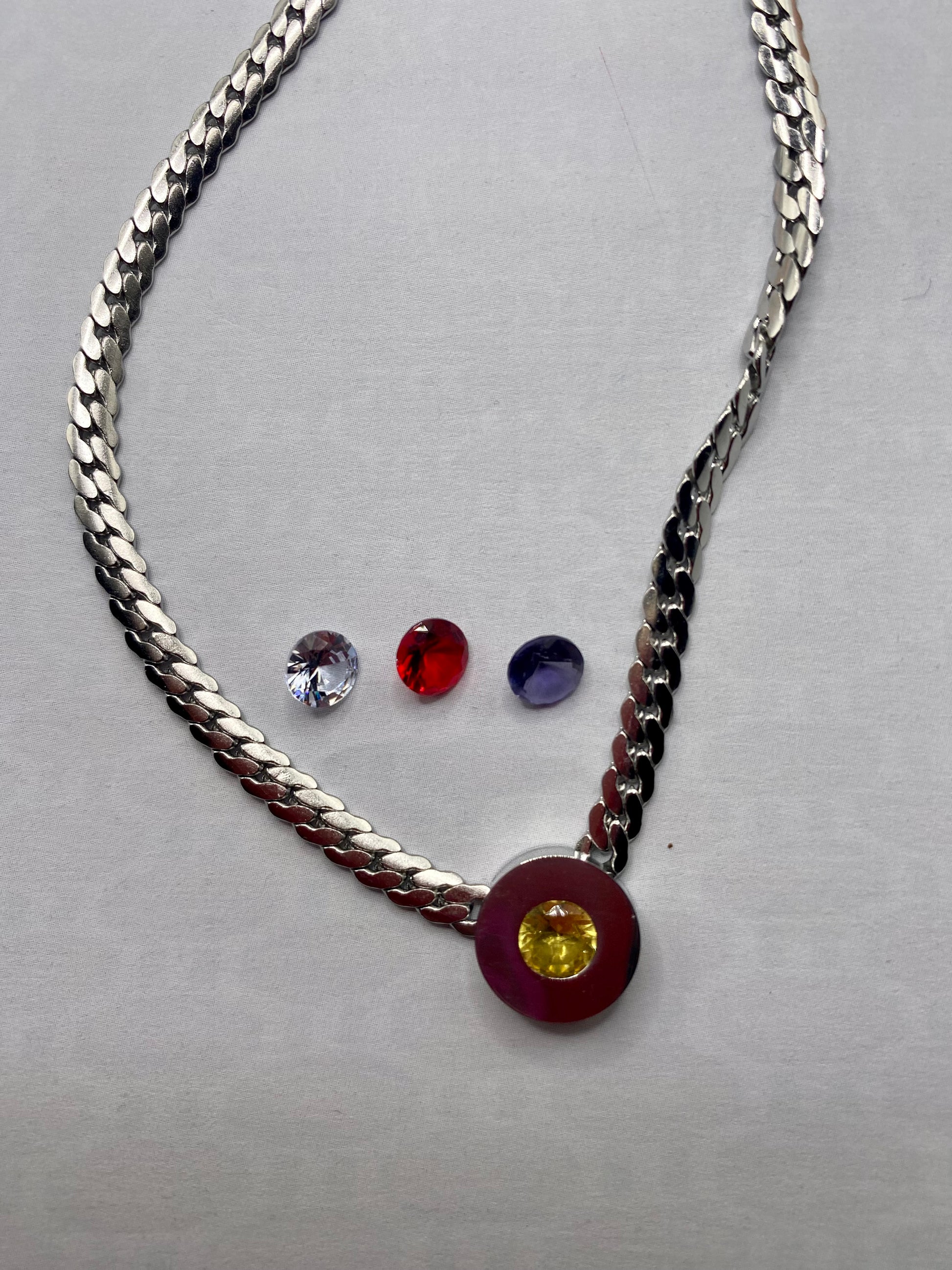 EN/ I immediately fell for this necklace, both for its shape and its originality! It is a necklace that allows you to have 4 with a declination of crystals that changes with an extremely simple and fast screwed system on the back. I have never seen such an elegant, stylish and ingenious jewel.
