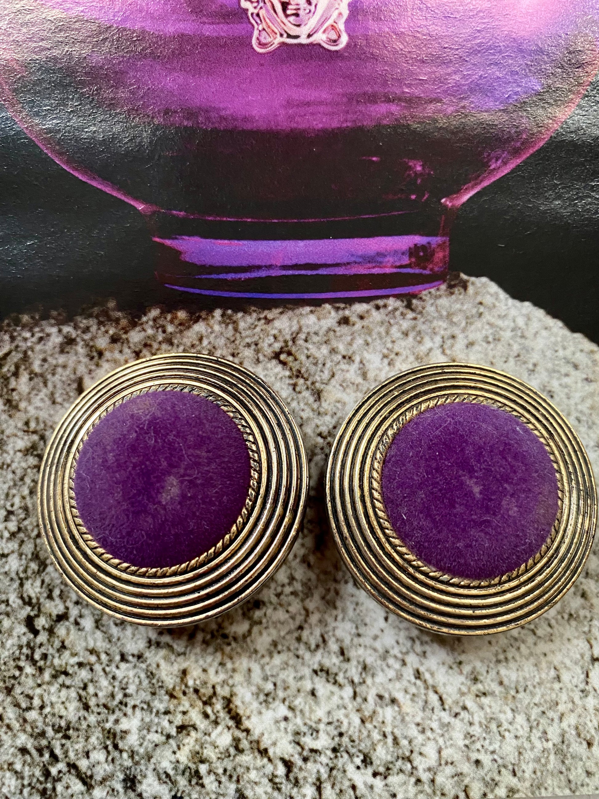 FR/ Clips des années 80 en bronze et velours. Très légères. Pièce iconique.