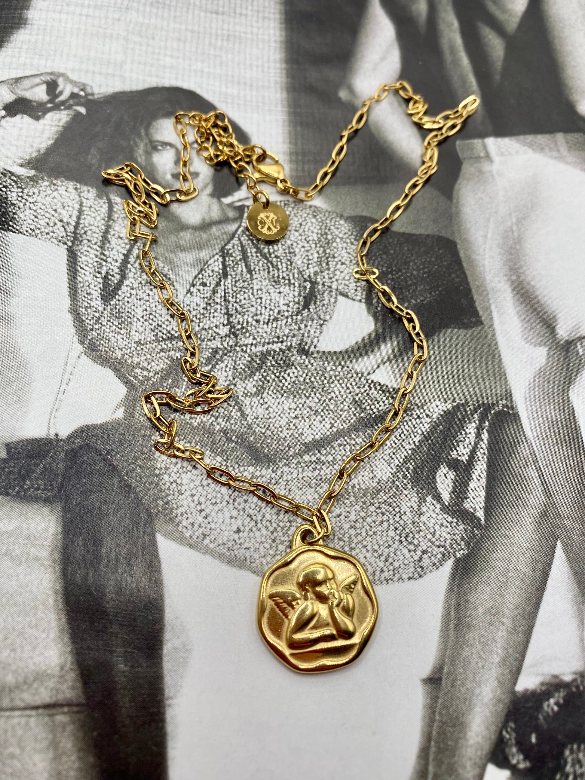 FR/ Chaîne et pendentif en plaqué or signé CxL by christian Lacroix, j’ai complètement craqué pour ce petit ange délicat sur le pendentif associé à cette chaîne qui fait plus moderne, une association parfaite pour un bijou stylé.