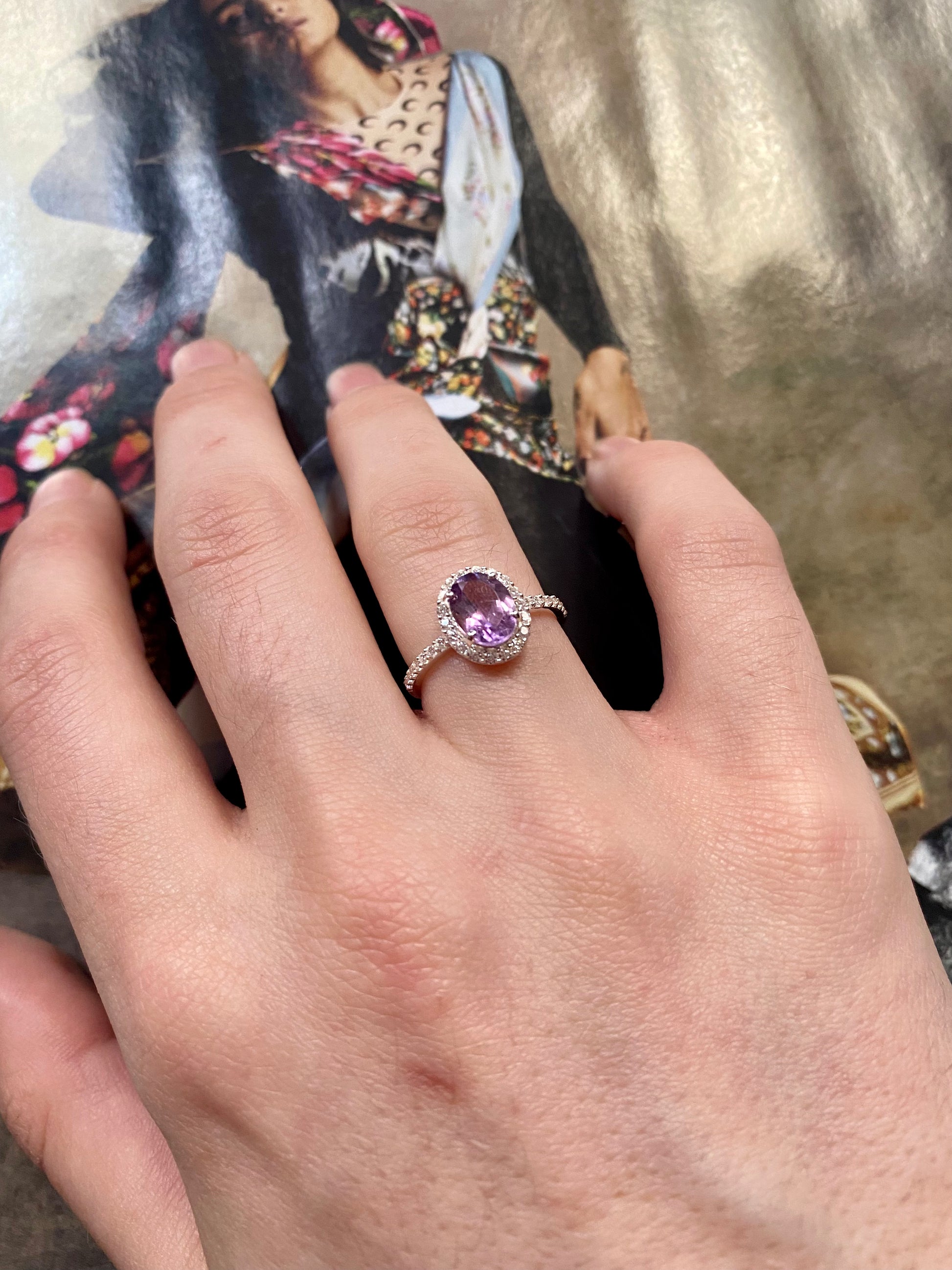 FR/ Cette bague très élégante en argent 925 possède pleins de petits zirconiums et une très belle améthyste. C’est un classique pour tous les jours, la touche finale d’un look qui ne demande aucun effort mais qui change tout !