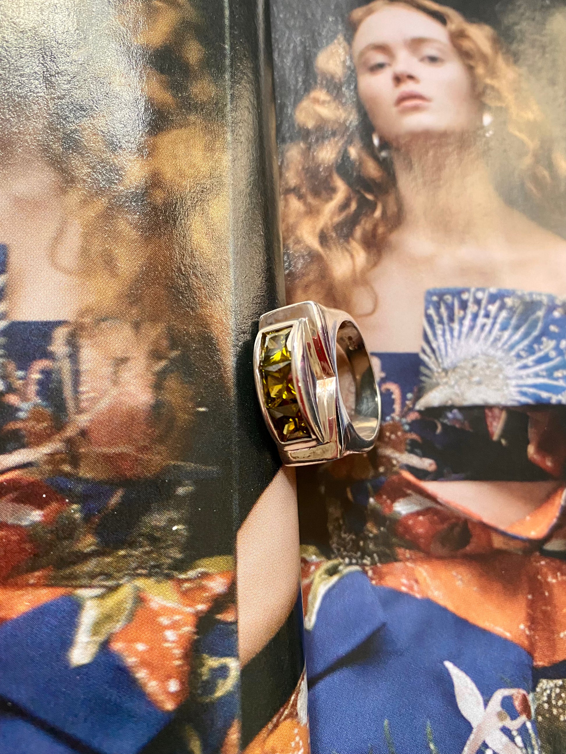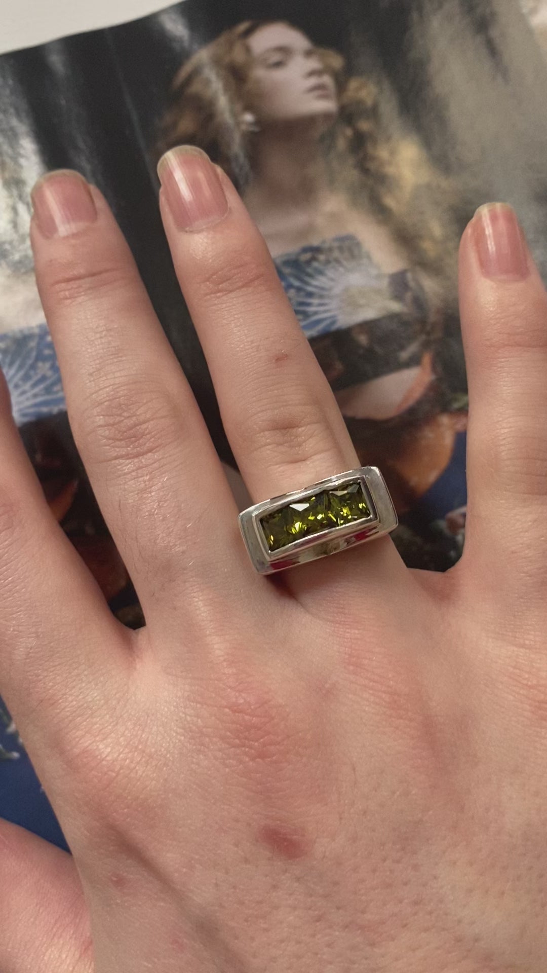 EN/ This silver ring has three beautiful péridots. She is stunning !