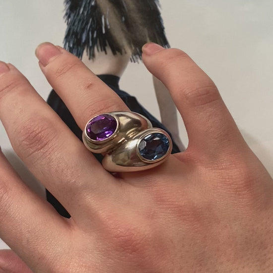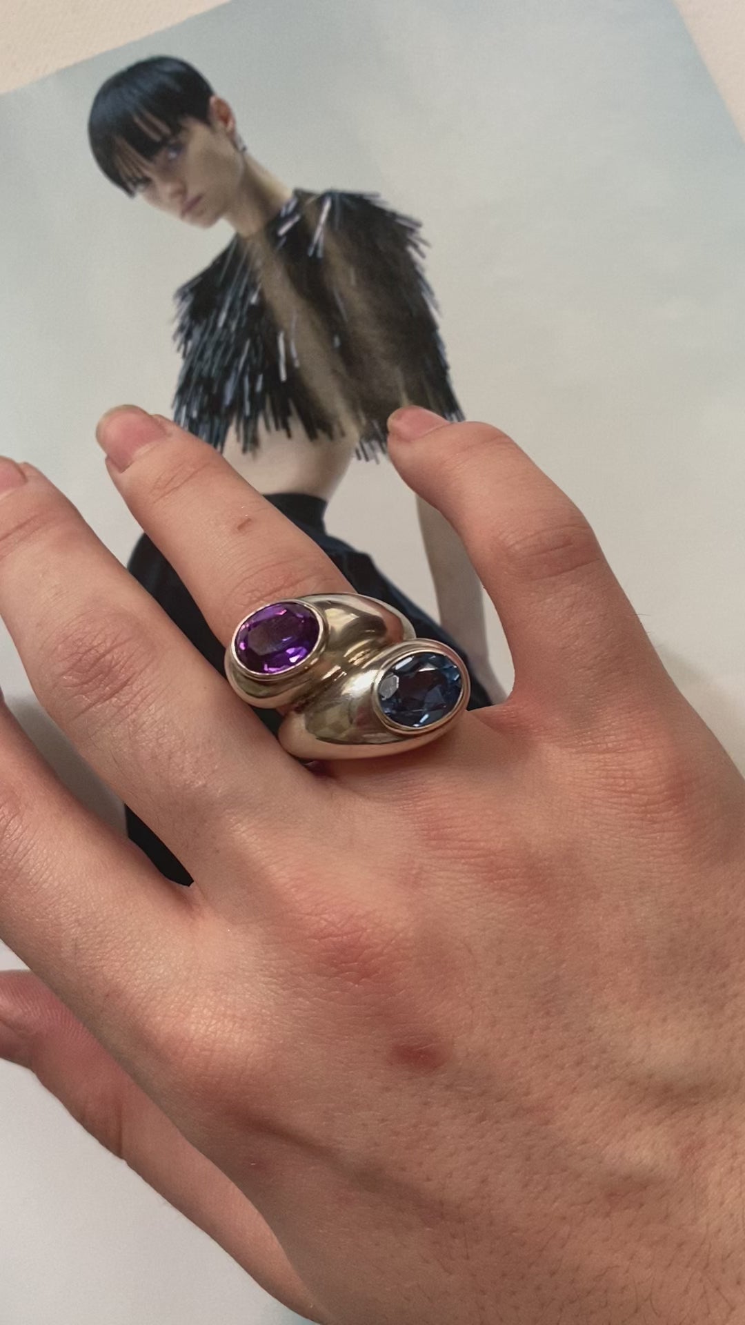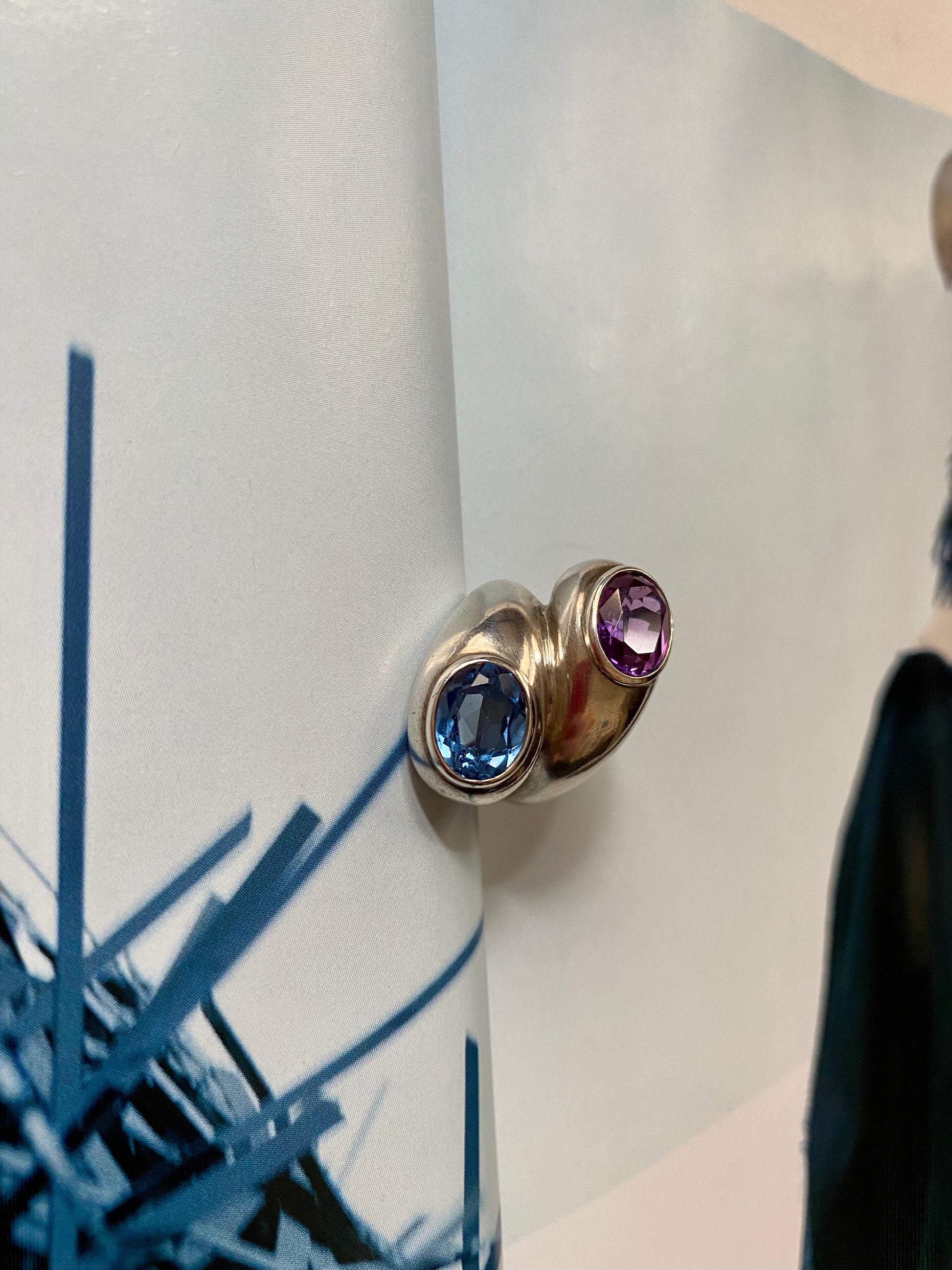 EN/ Solid silver ring with the You&Me shape. She is amazing, large and with two stones blue and purple. What a piece.
