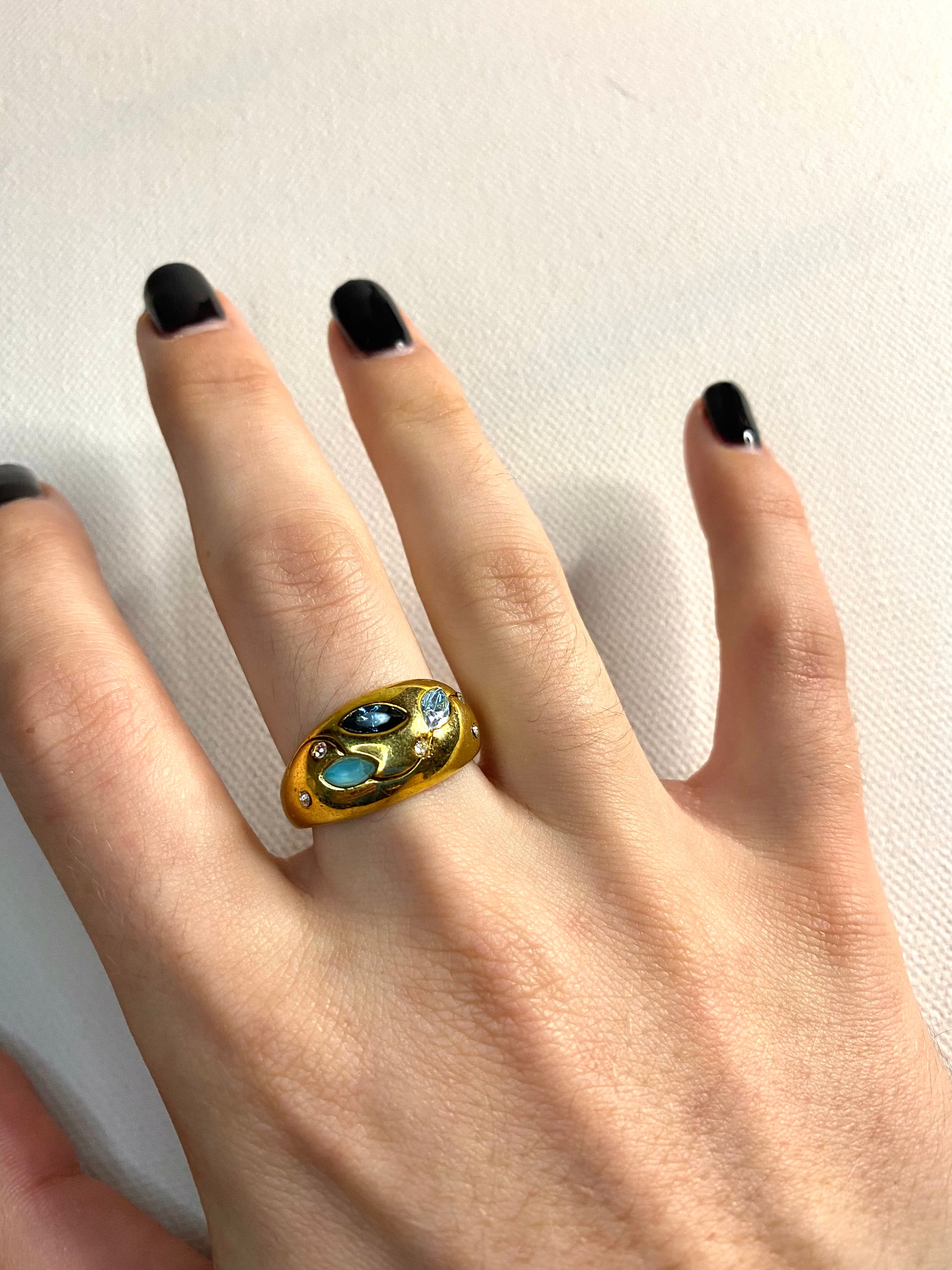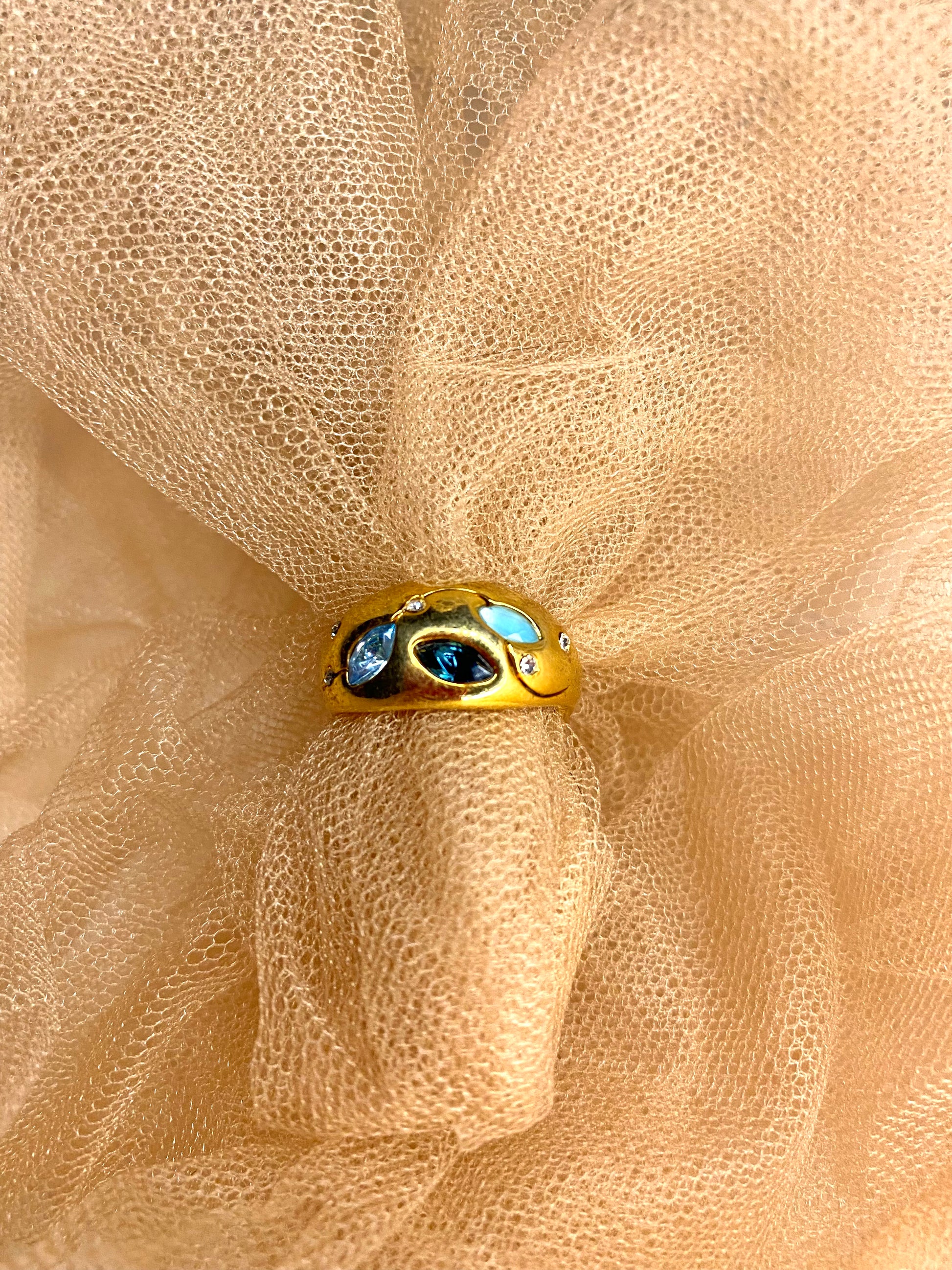 EN/ This gold plated ring has different shades of blue crystals. She is from the 50’s. So chic and beautiful.