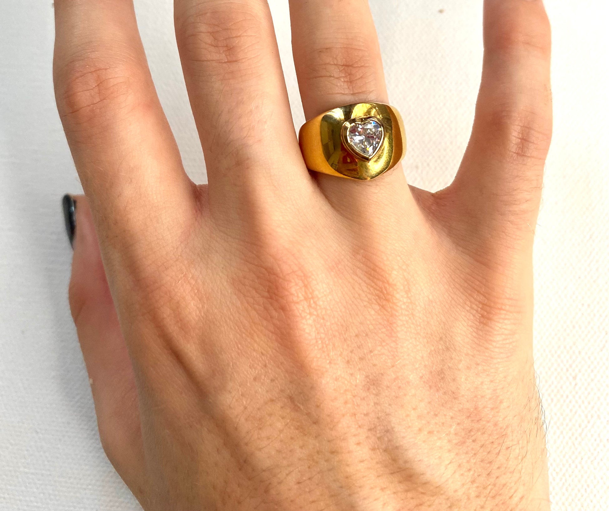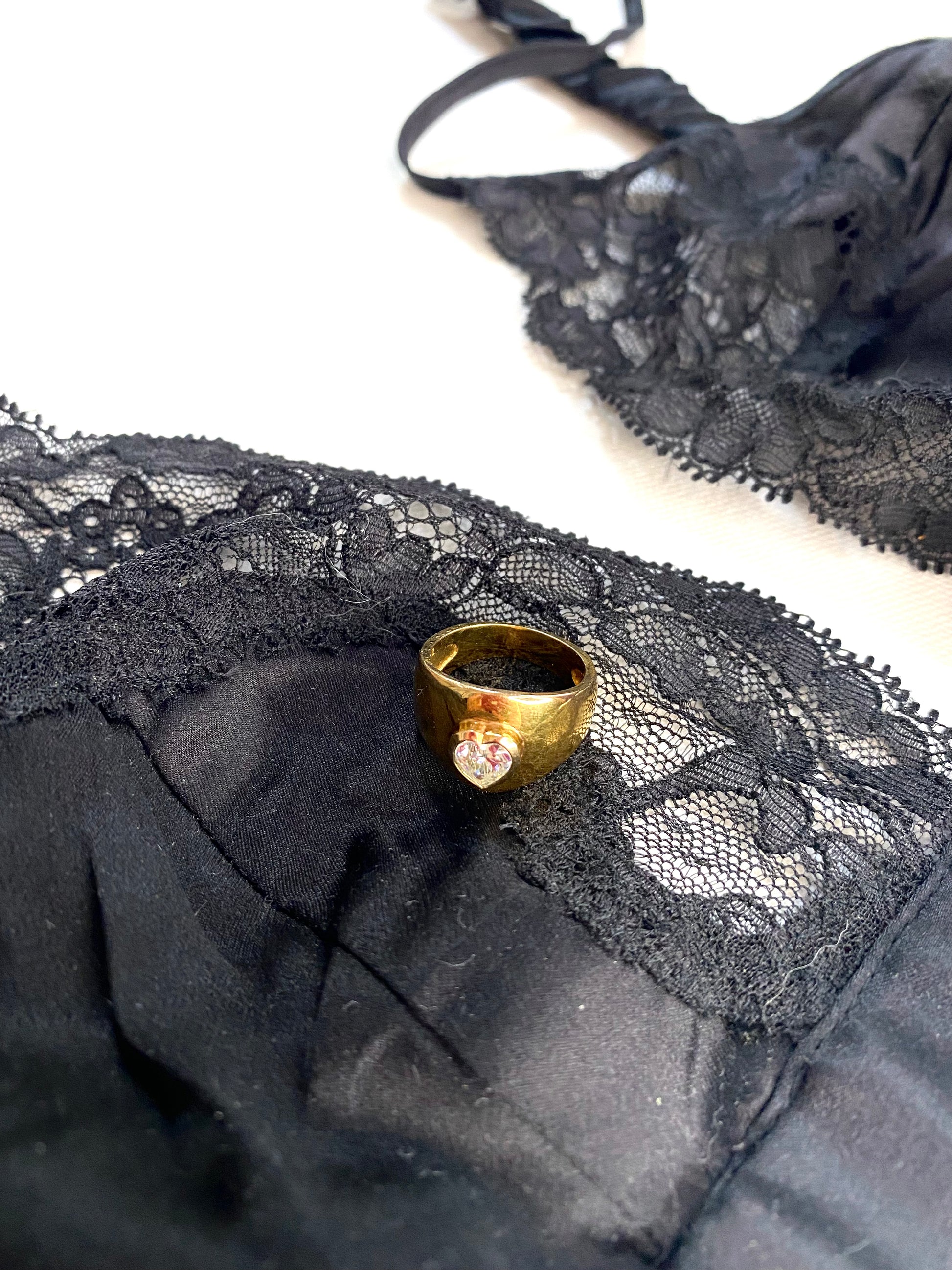 Bague plaqué or avec une pierre en forme de coeur.