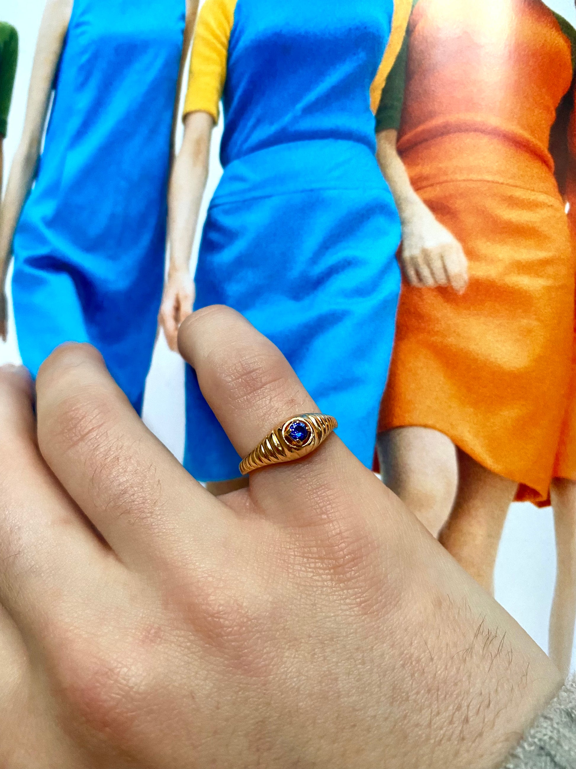 EN/ Gold-plated ring with a pretty little blue crystal. Minimalist ring that adapts to all looks.