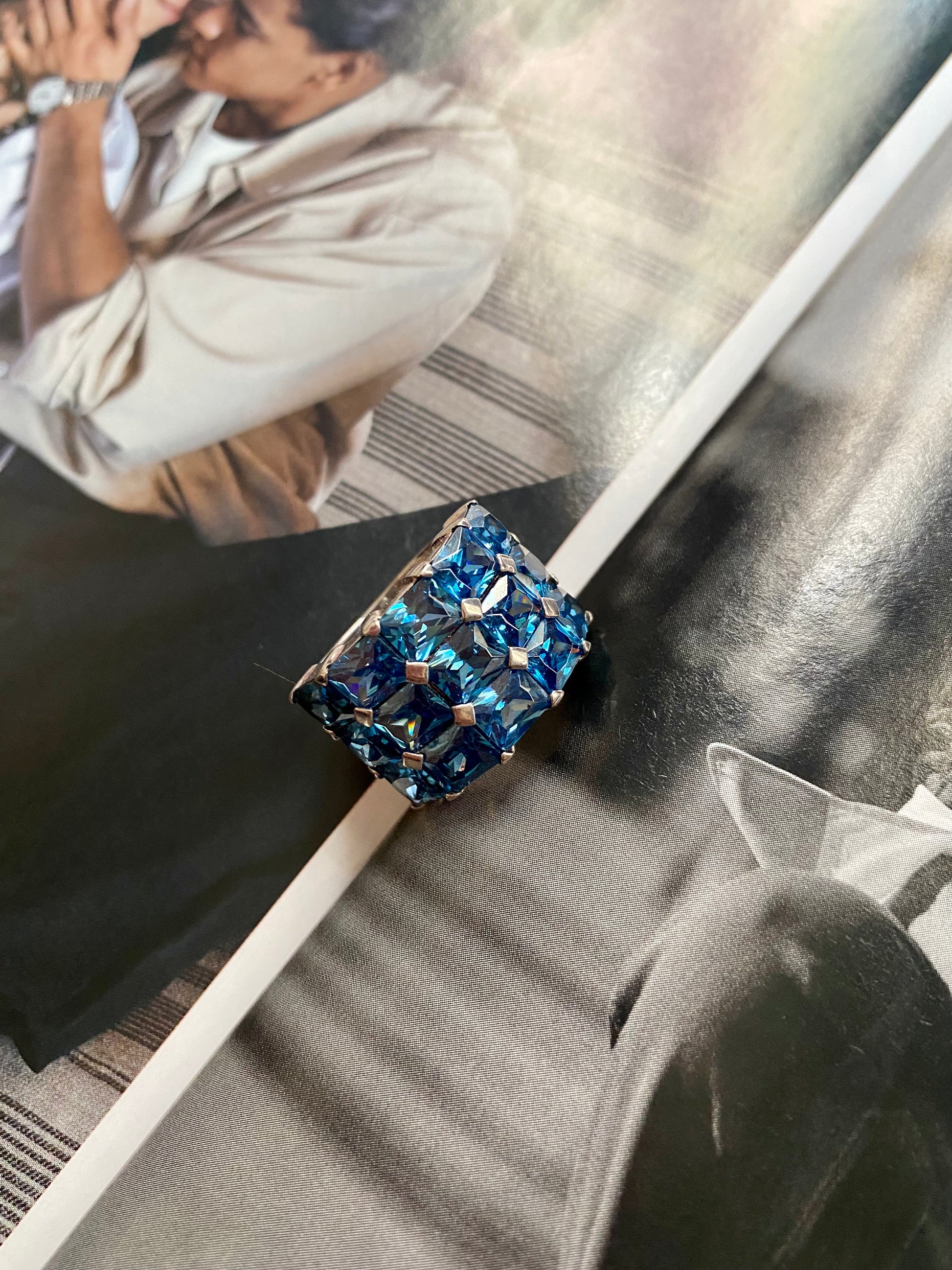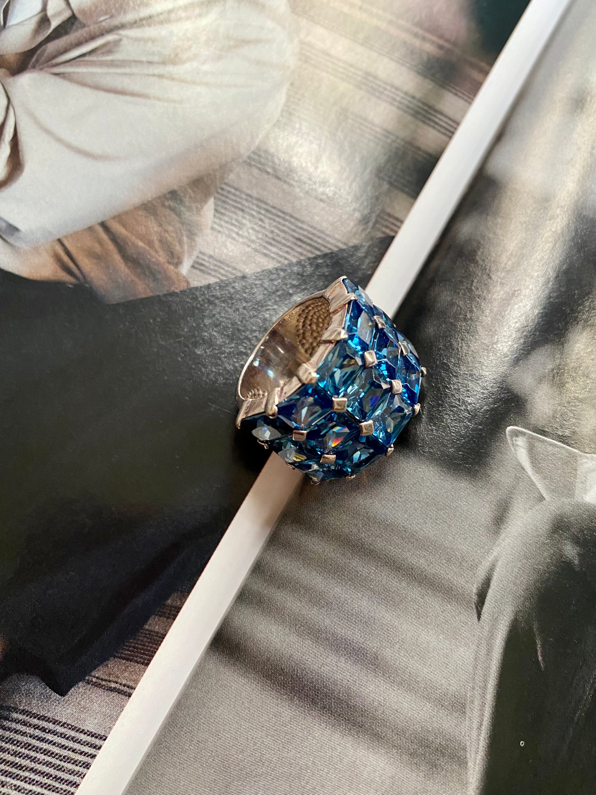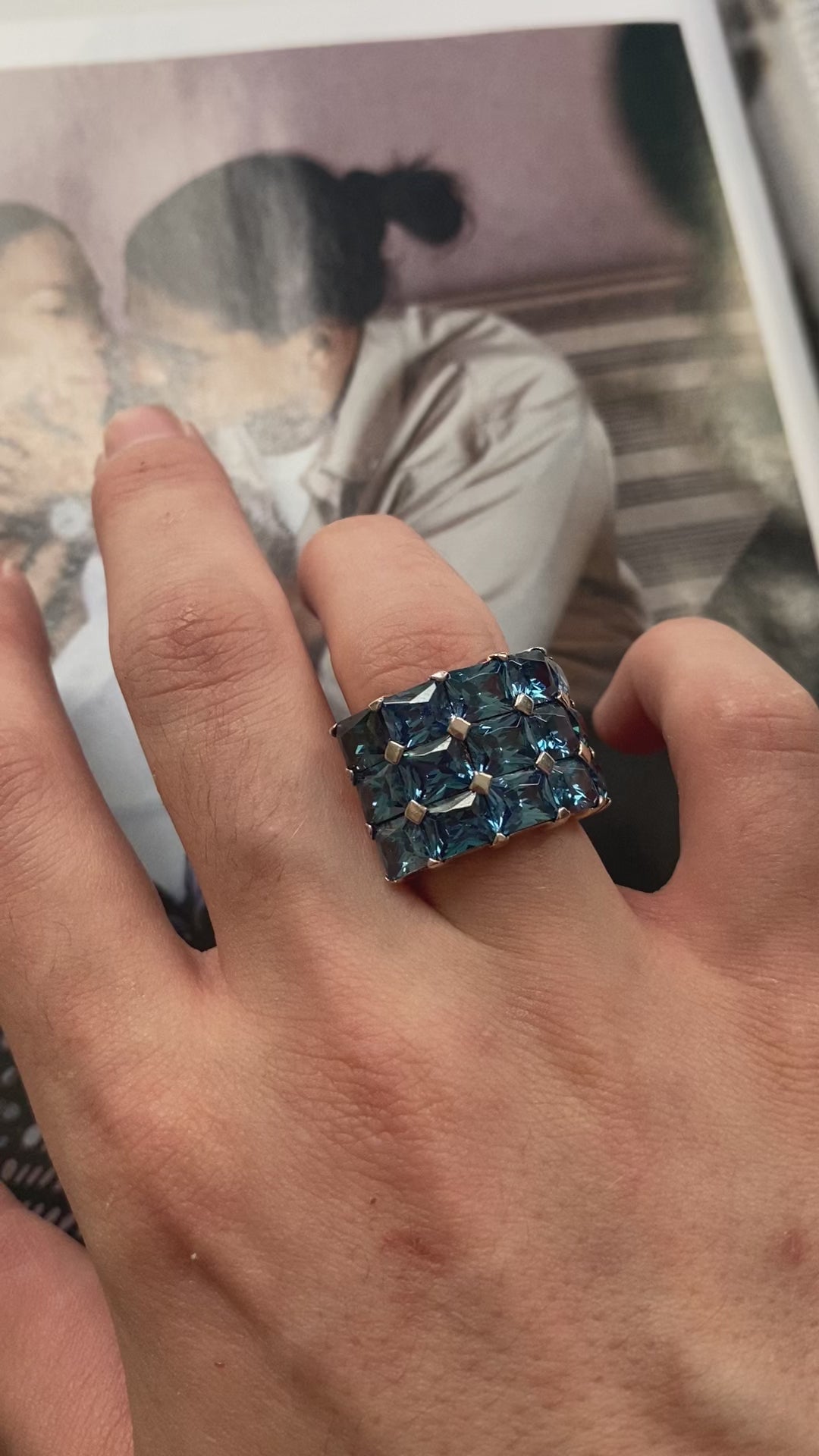 Bague en argent 925 avec des petites pierres bleues. Taille 53. Poinçonnée. Silver 925 ring. 53 fr size. Hallmarked.