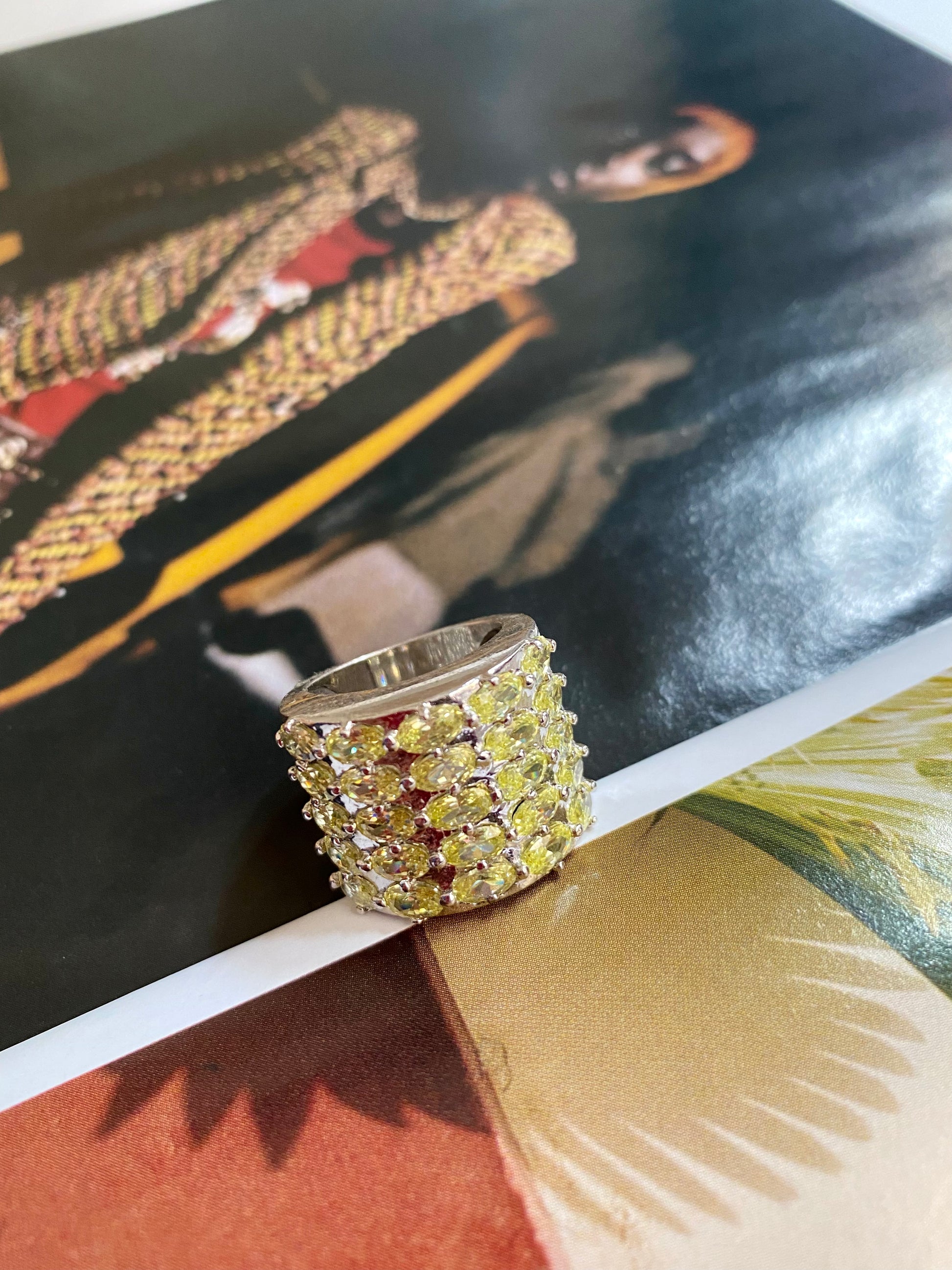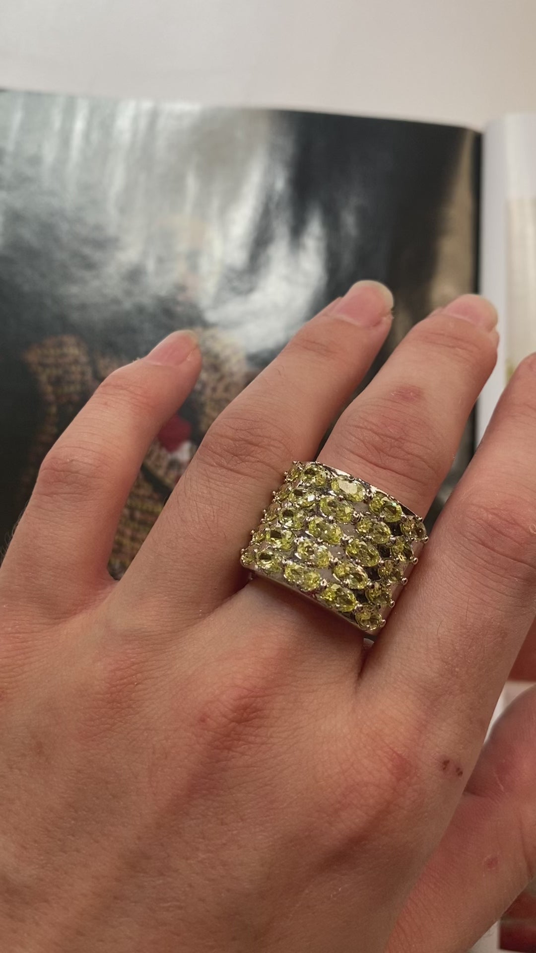 Bague en argent 925 sertie de cristaux verts clairs. Taille 54fr.