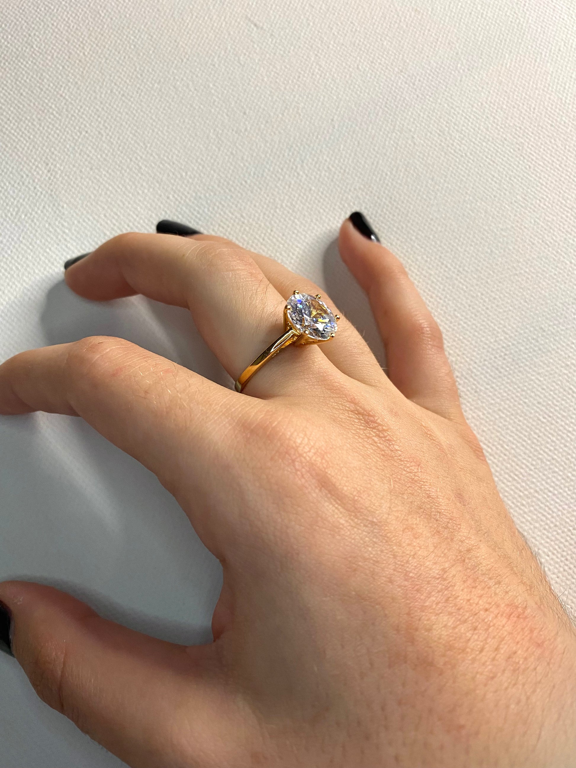 Bague en plaqué or avec une grosse pierre en verre.