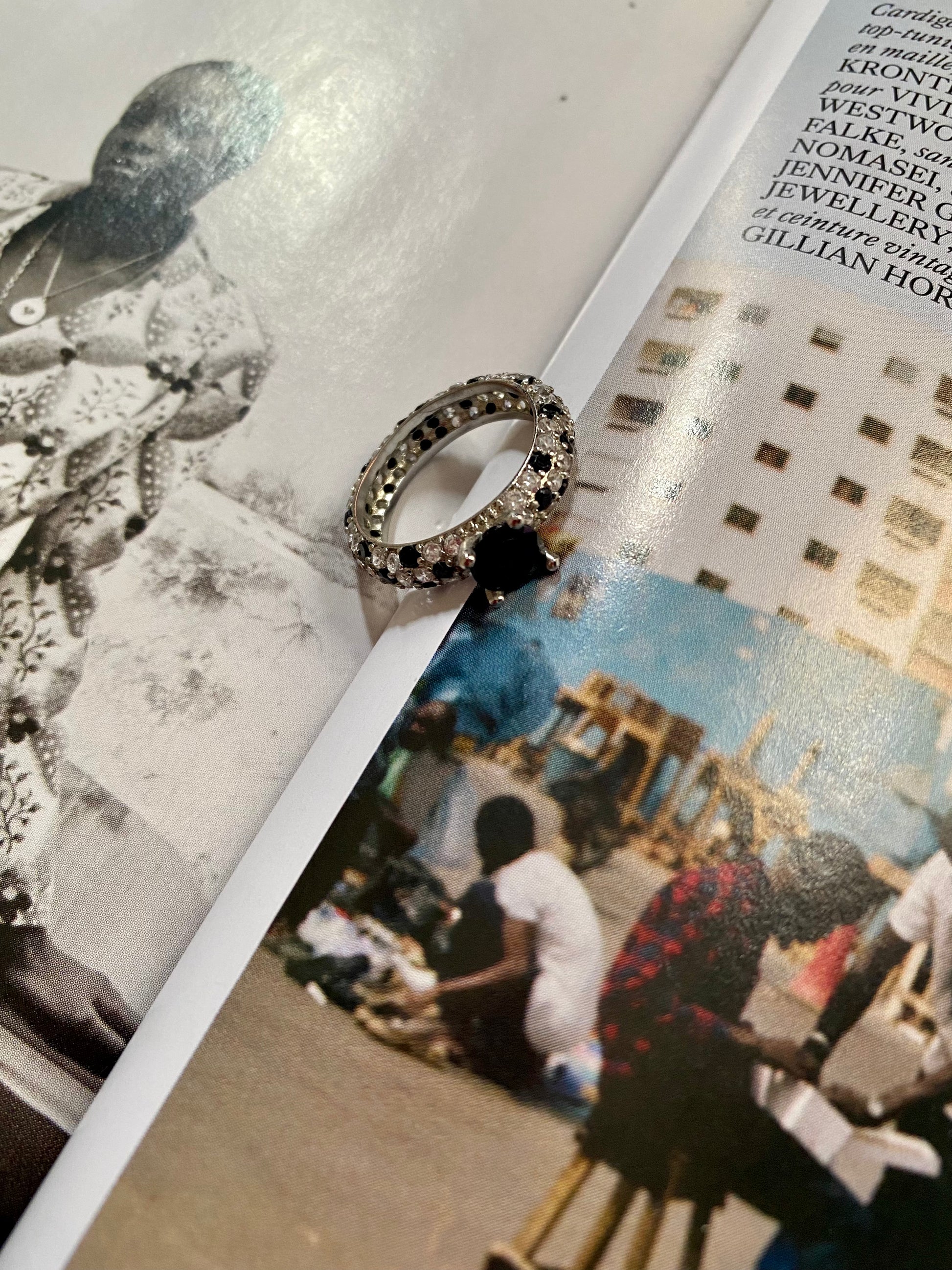 Silver ring with zirconiums and a Onyx. Taille 53 fr.