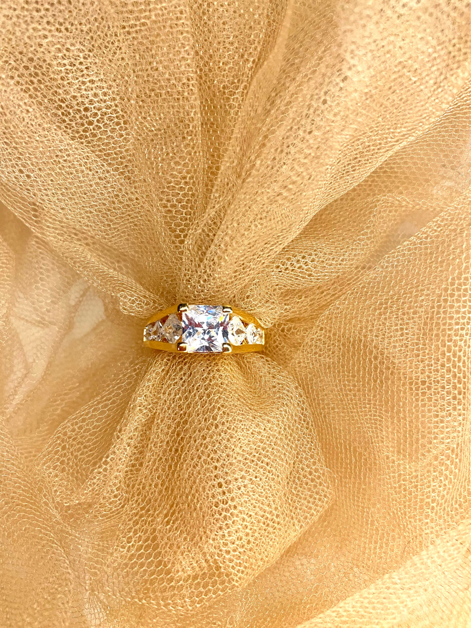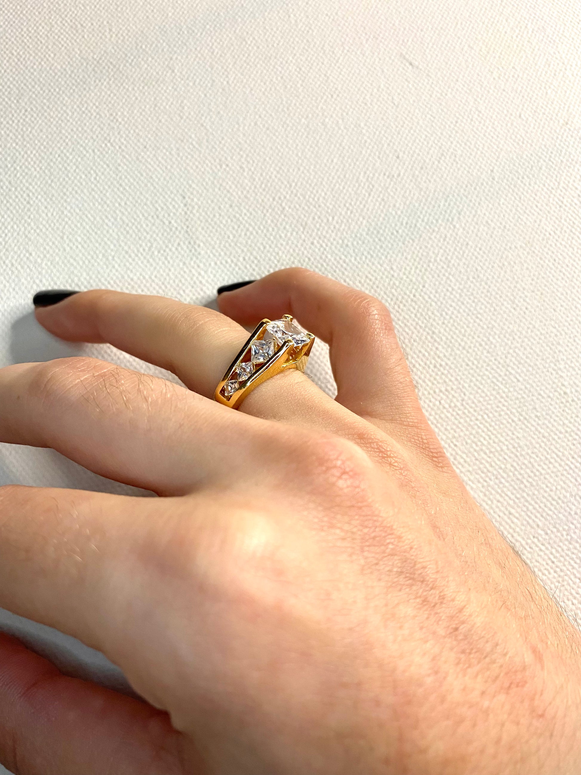 EN/ Gold-plated ring with glass stones. The design gives a stone casting effect that is very pretty and elegant. A piece that will make its effect and shines a lot.