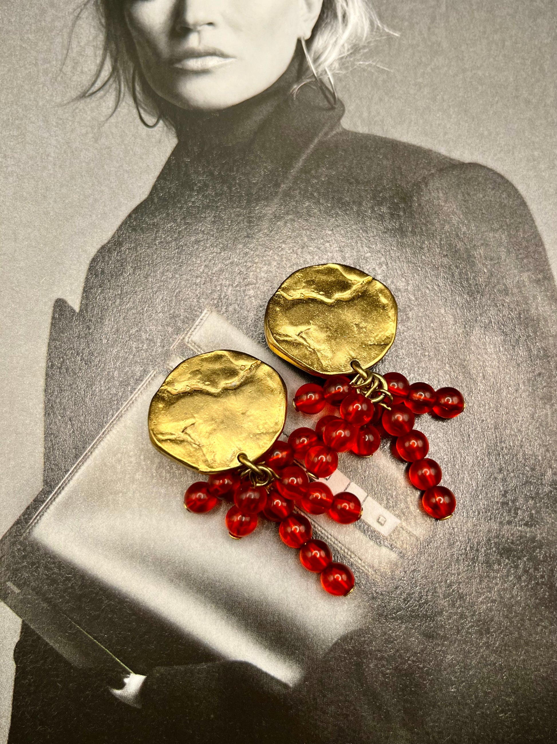 EN/ Luminous clips from the 80s Biche de Bere jeweler. The hammered matte gold brings to this fun pair, a couture side.