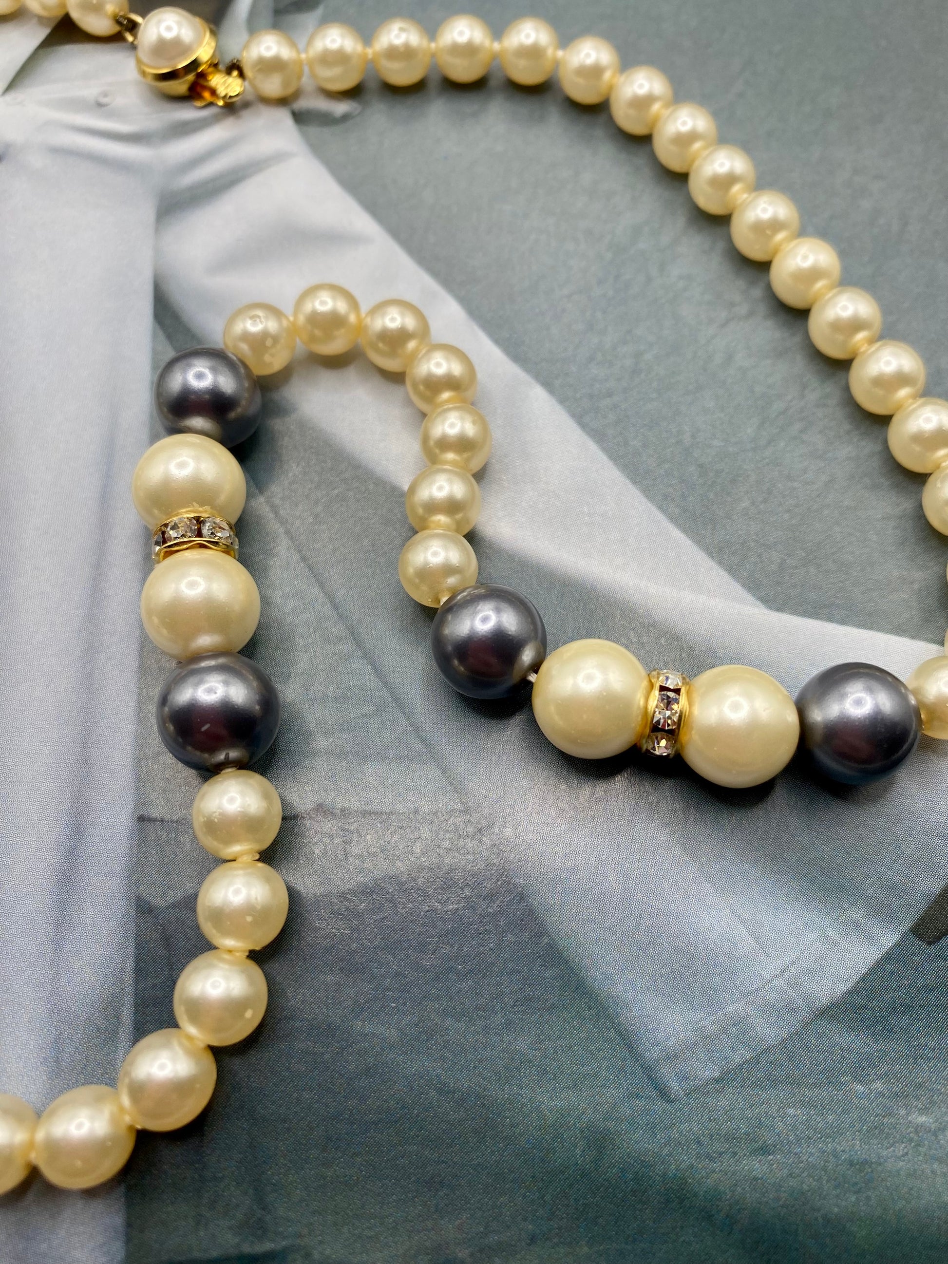 Collier de perles fantaisies des années 80. Les détails du collier et le fermoir sont sublimes.