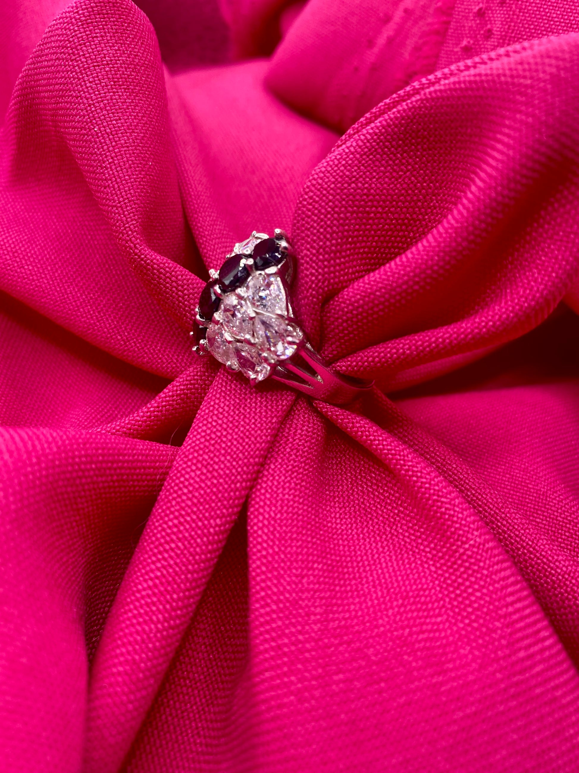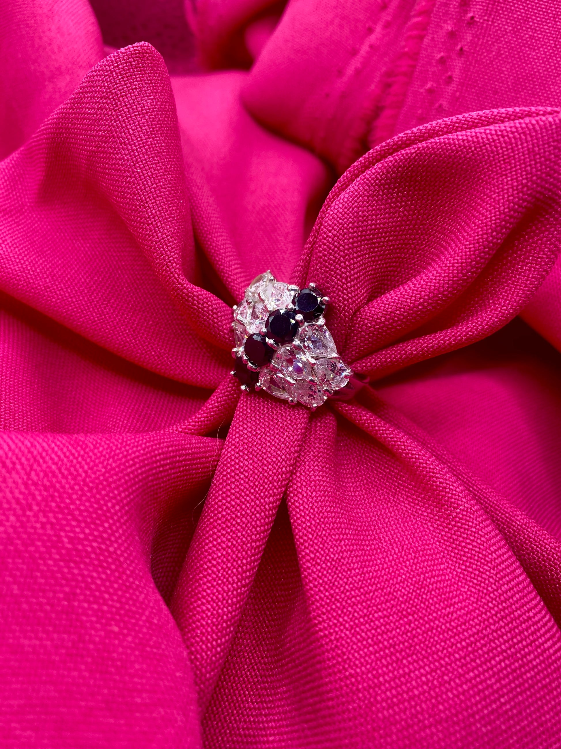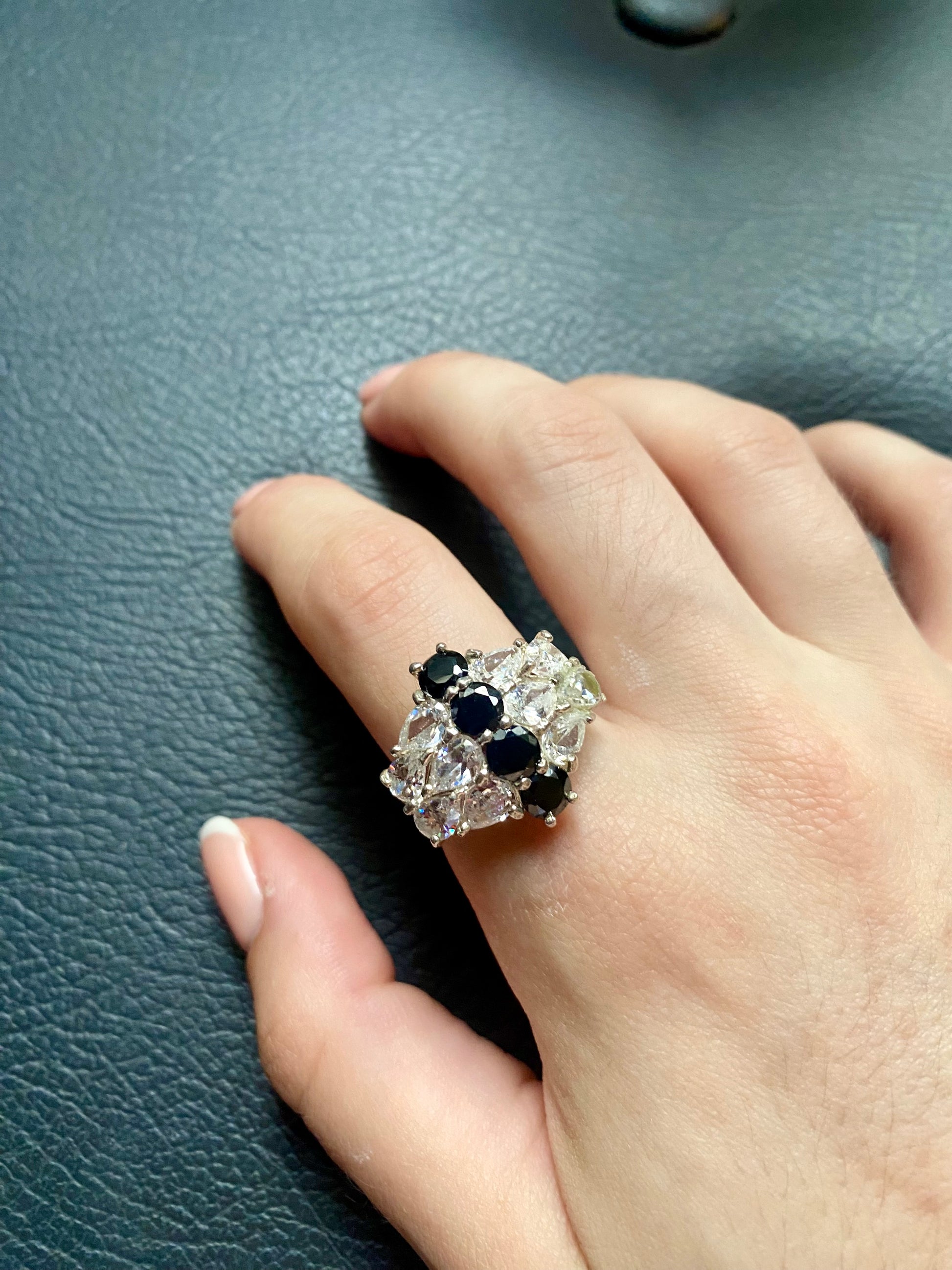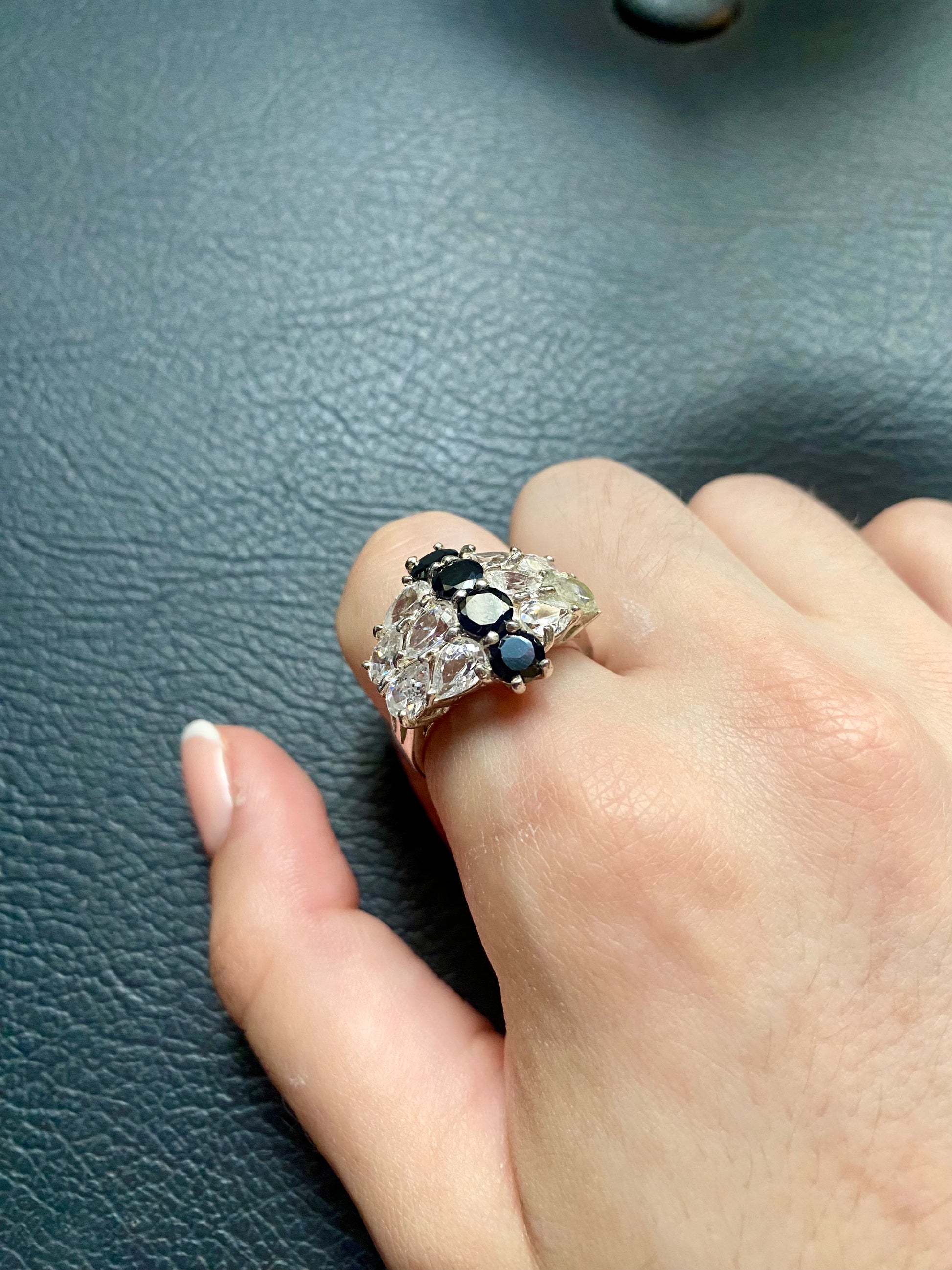 FR/ Une pièce sublime en argent 925. Ce duo de cristaux blancs et noirs donnent une profondeur très élégante et particulière à cette bague.