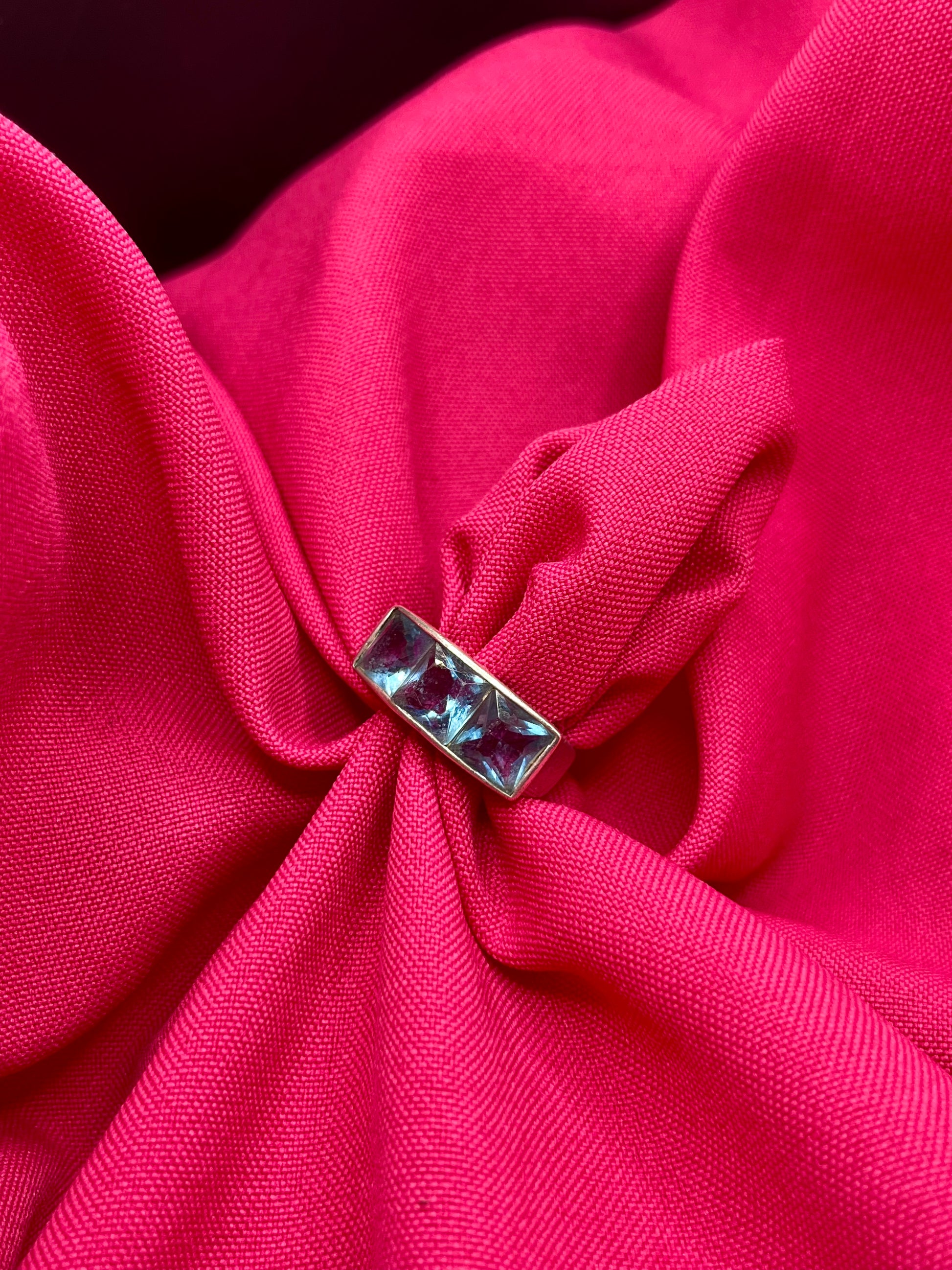 EN/ 925 silver band ring three crystals, of a very pretty light blue. A statement and elegant piece.
