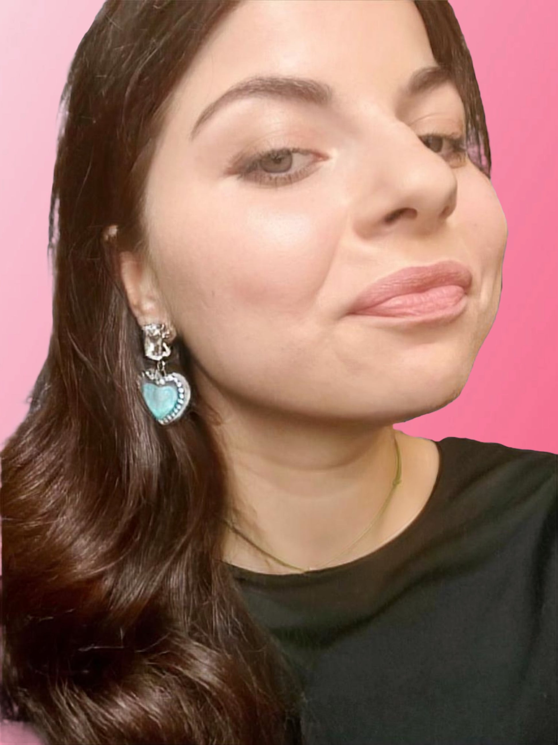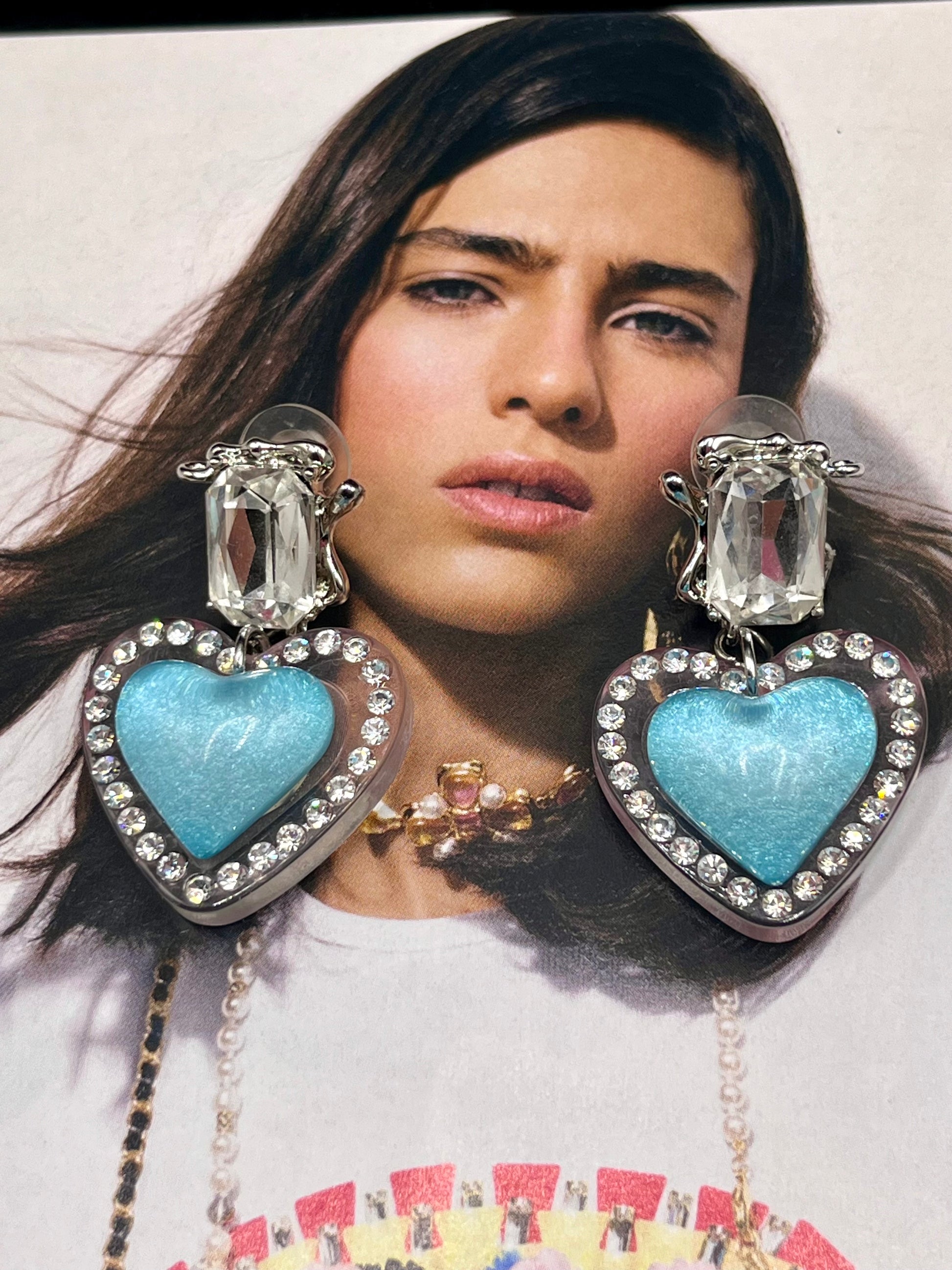 FR/ Une pièce kitsch comme on les aiment, en résine avec un cœur bleu brillant et des strass.
