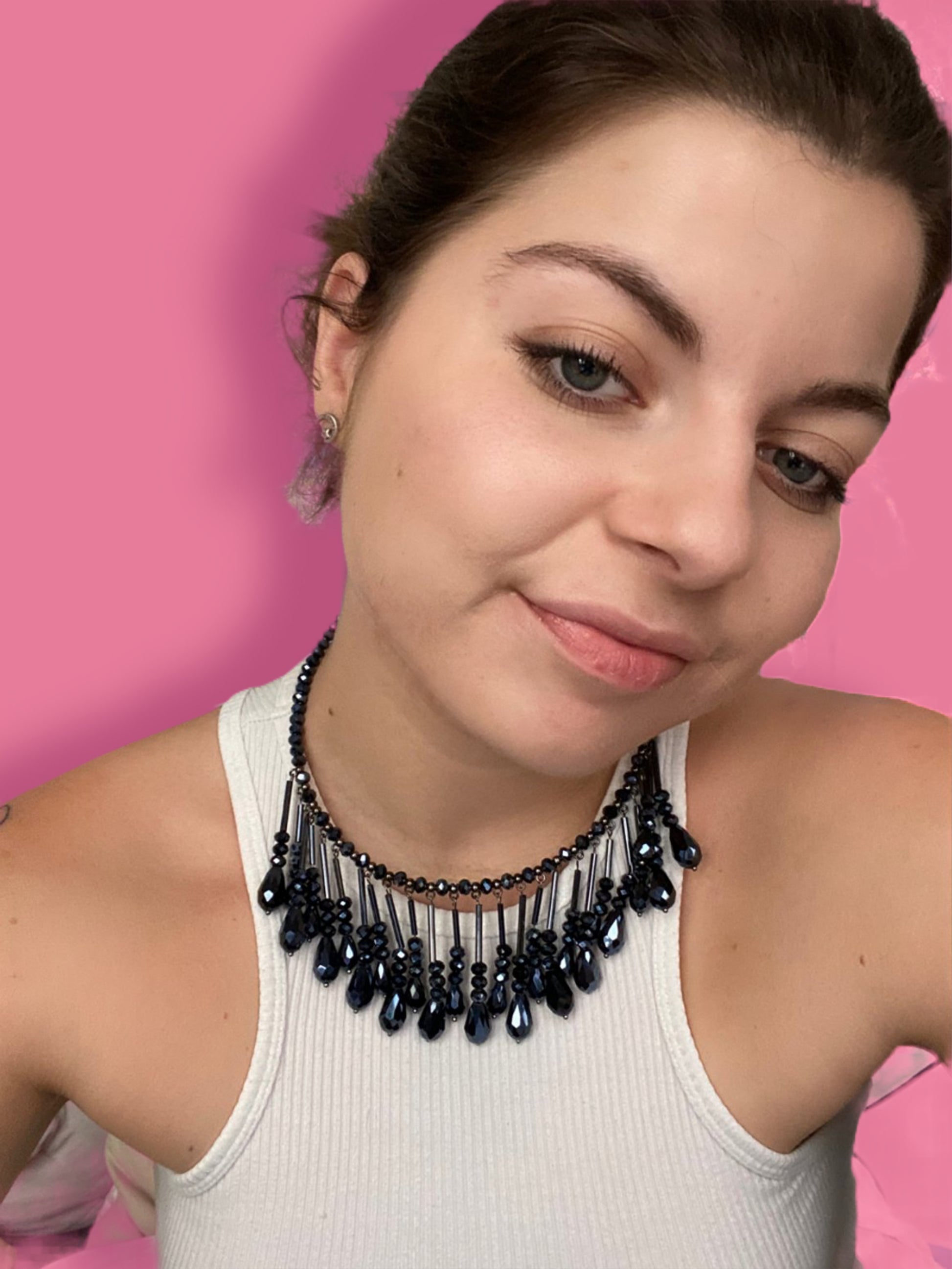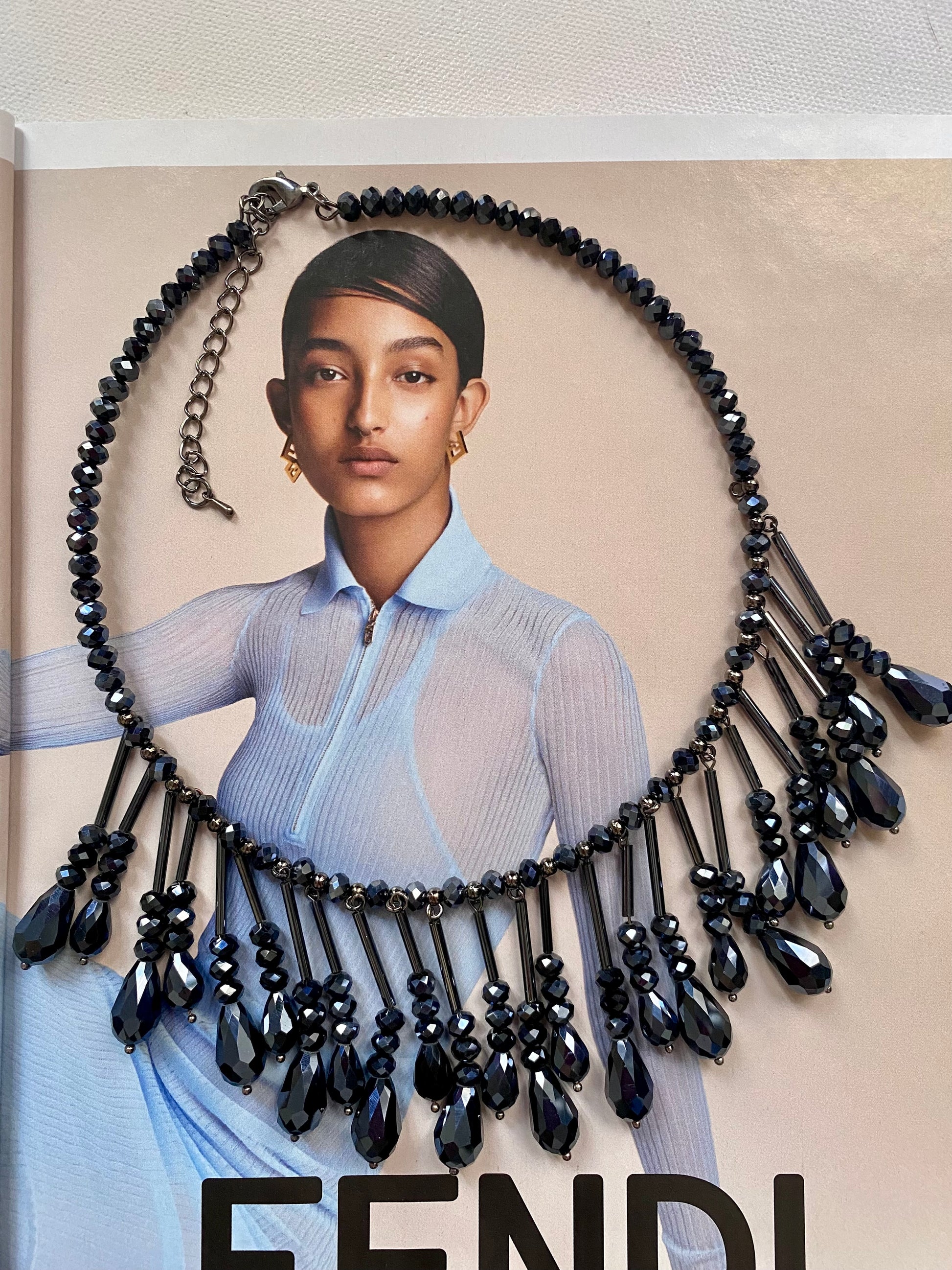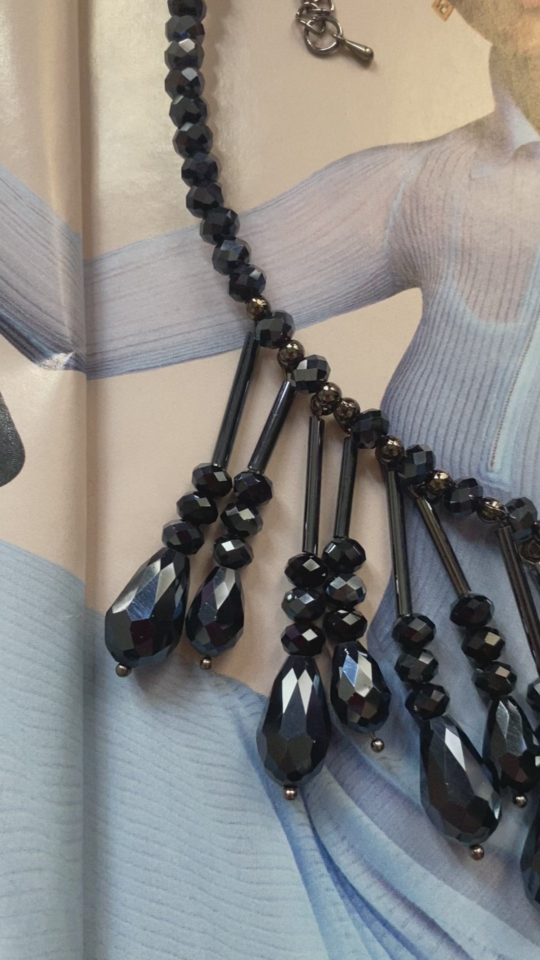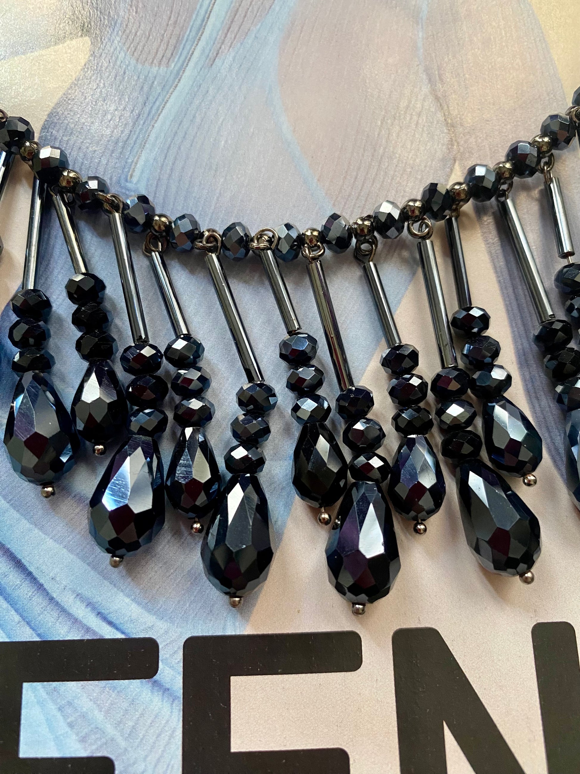Chocker necklace in dark blue varnished pearls. Miss the last pendant on the right but nothing noticeable.