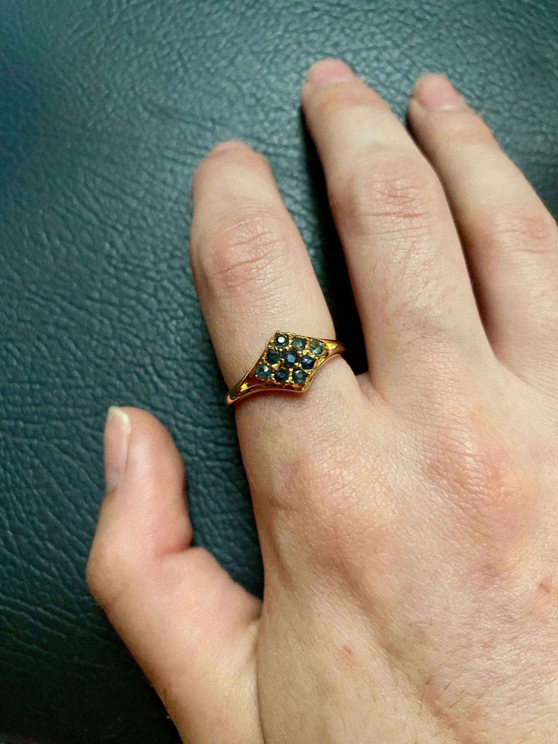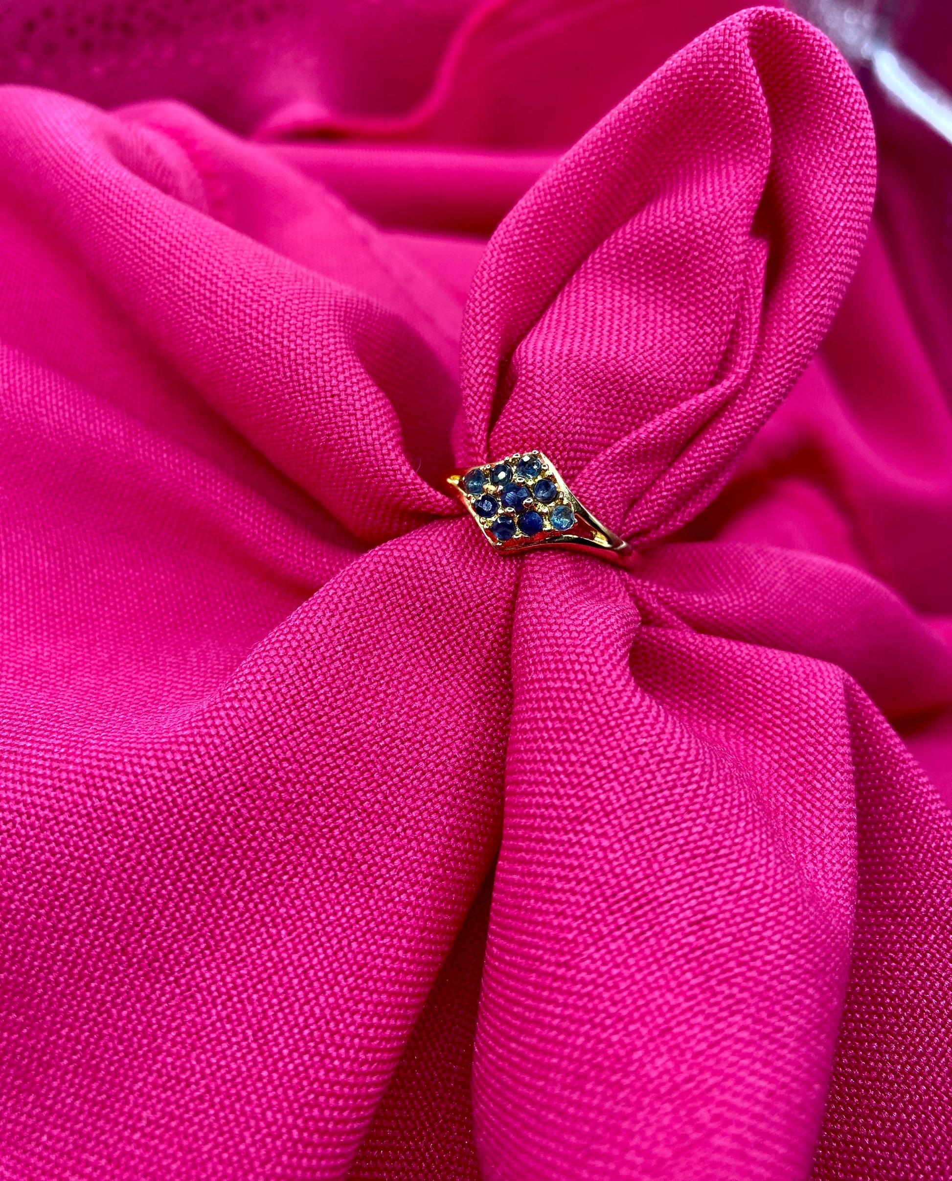 FR/ bague plaqué or sertie de cristaux bleu, d’une élégance sans pareil. Une pièce  intemporelle.