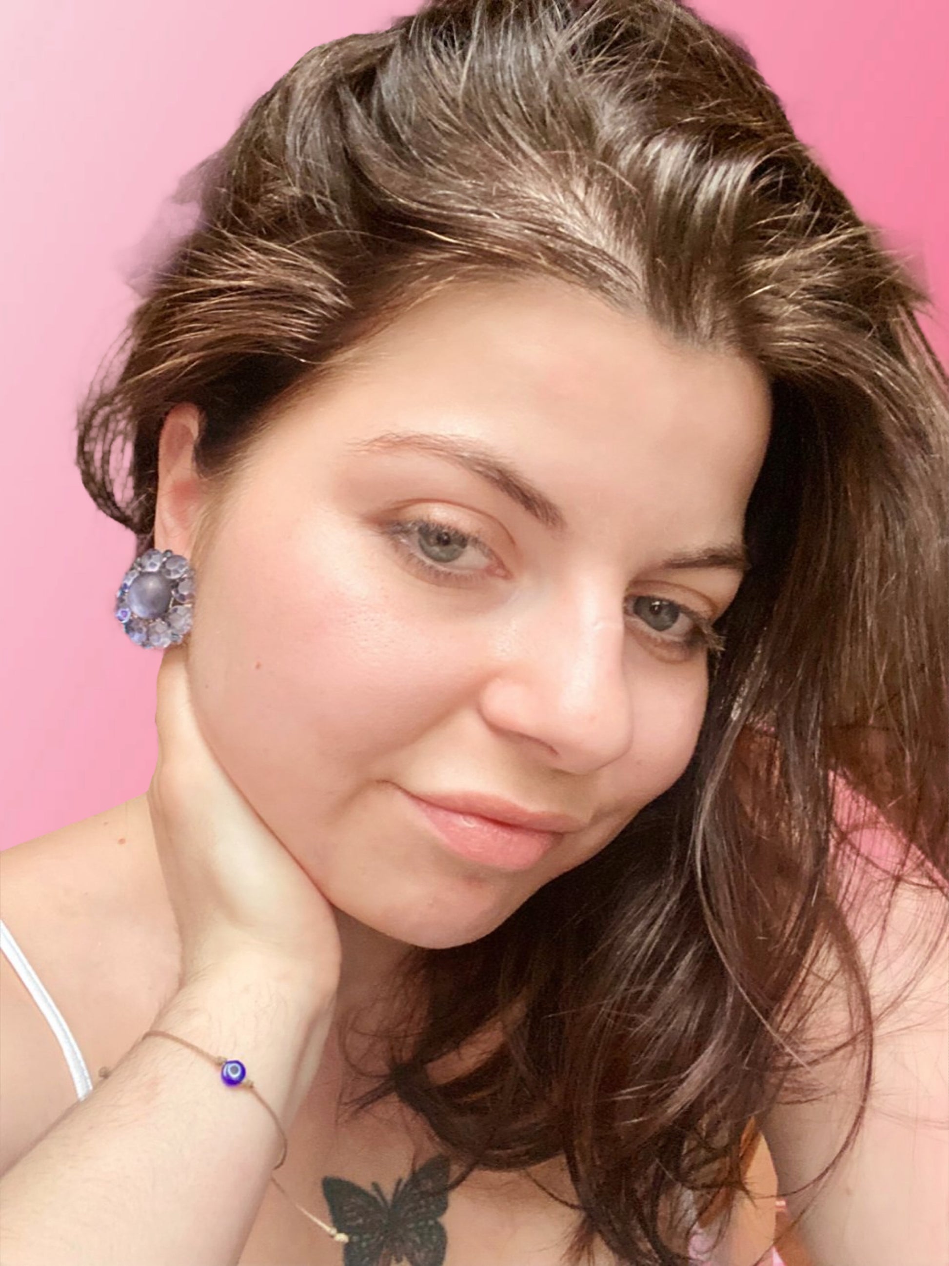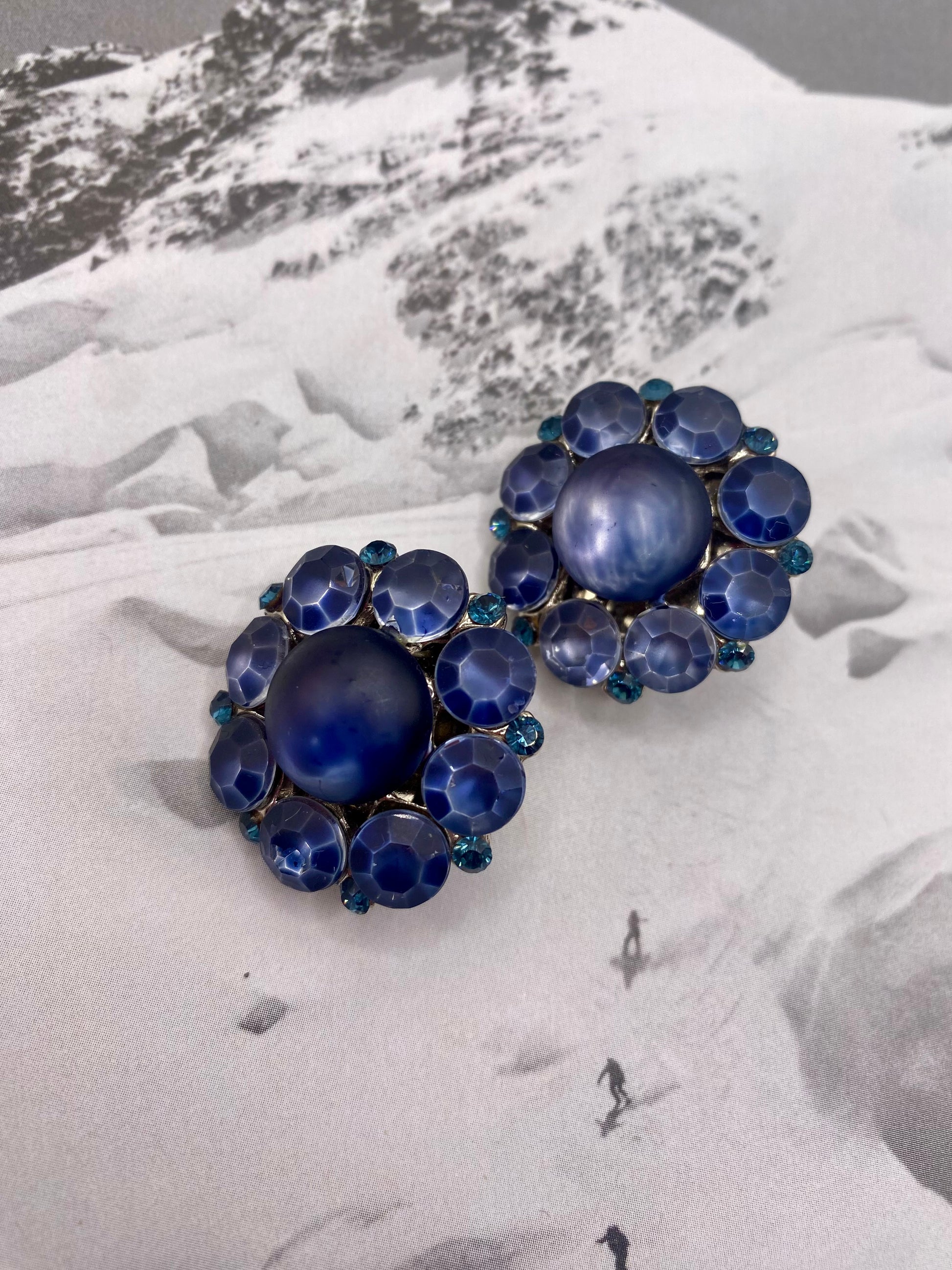 EN/ I had a real crush on this pair of glass paste clips, with its magnificent reflections. Typical of the 80s, they finish a soft look with this dark blue. Very pleasant to wear.