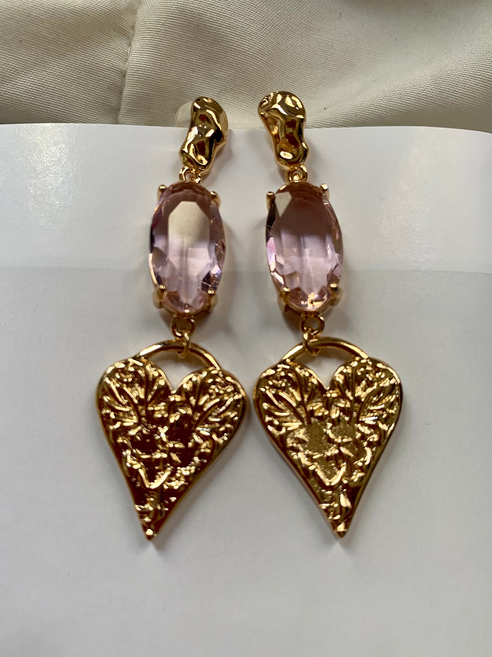 Boucles d’oreilles en plaqué or avec un cristal rose clair.