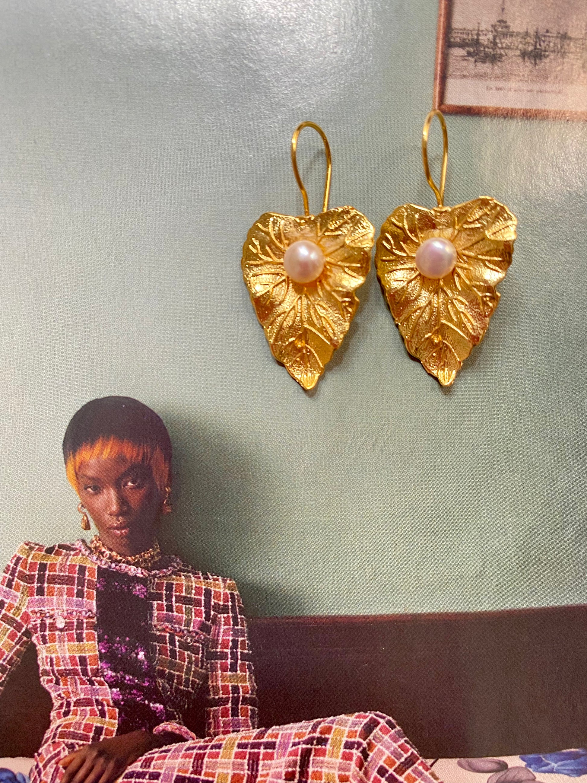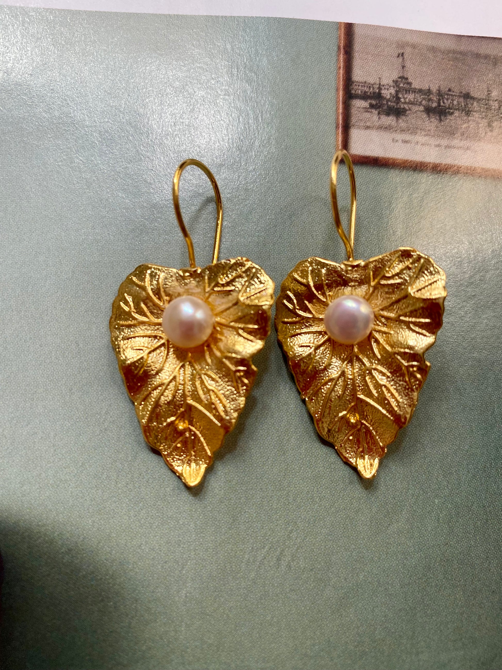 Boucles d’oreilles plaqué or avec une petite perle de culture.