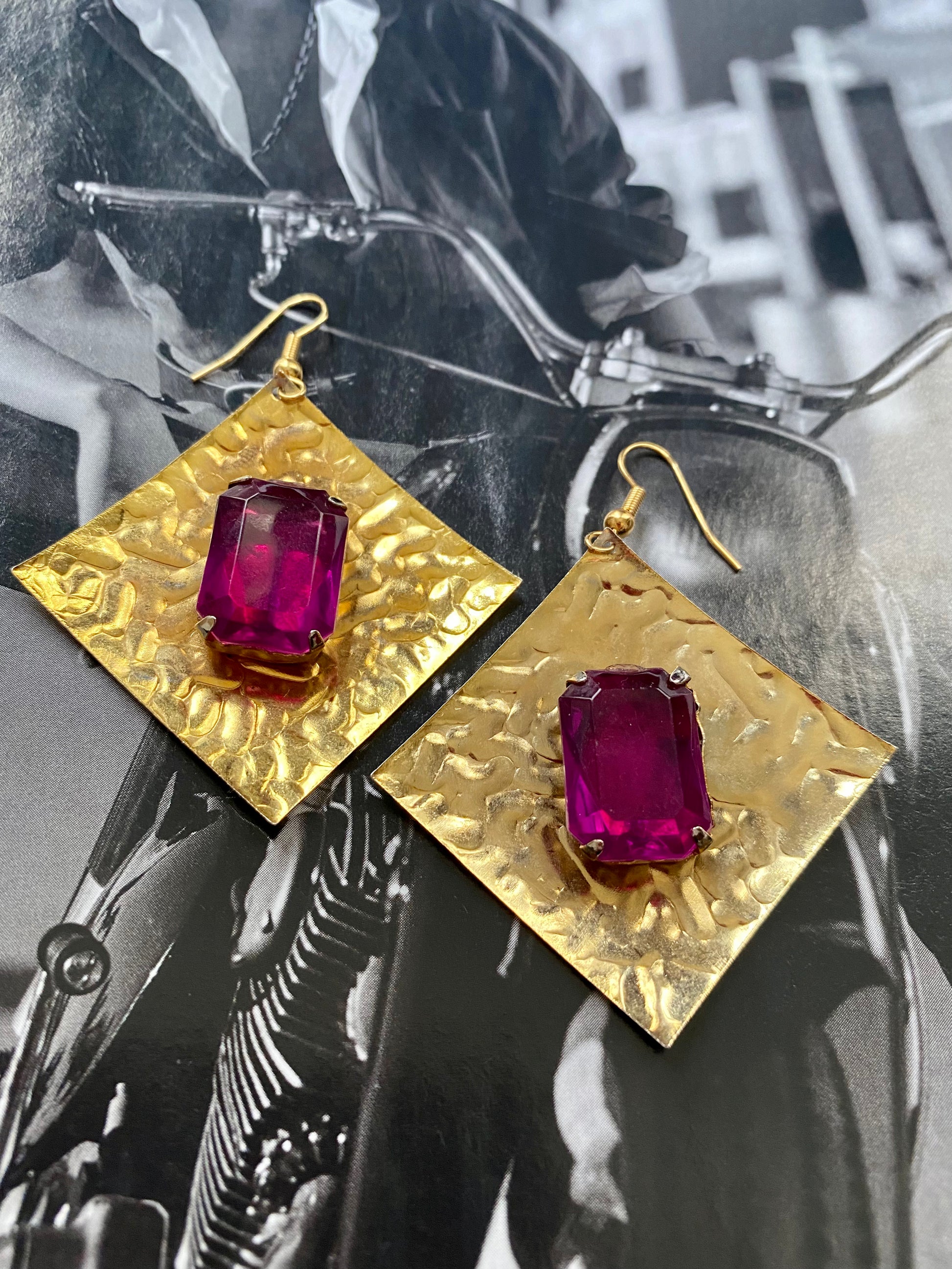 Boucles d’oreilles pour oreilles percées. Métal or et pierre au centre. Bijou fantaisie.