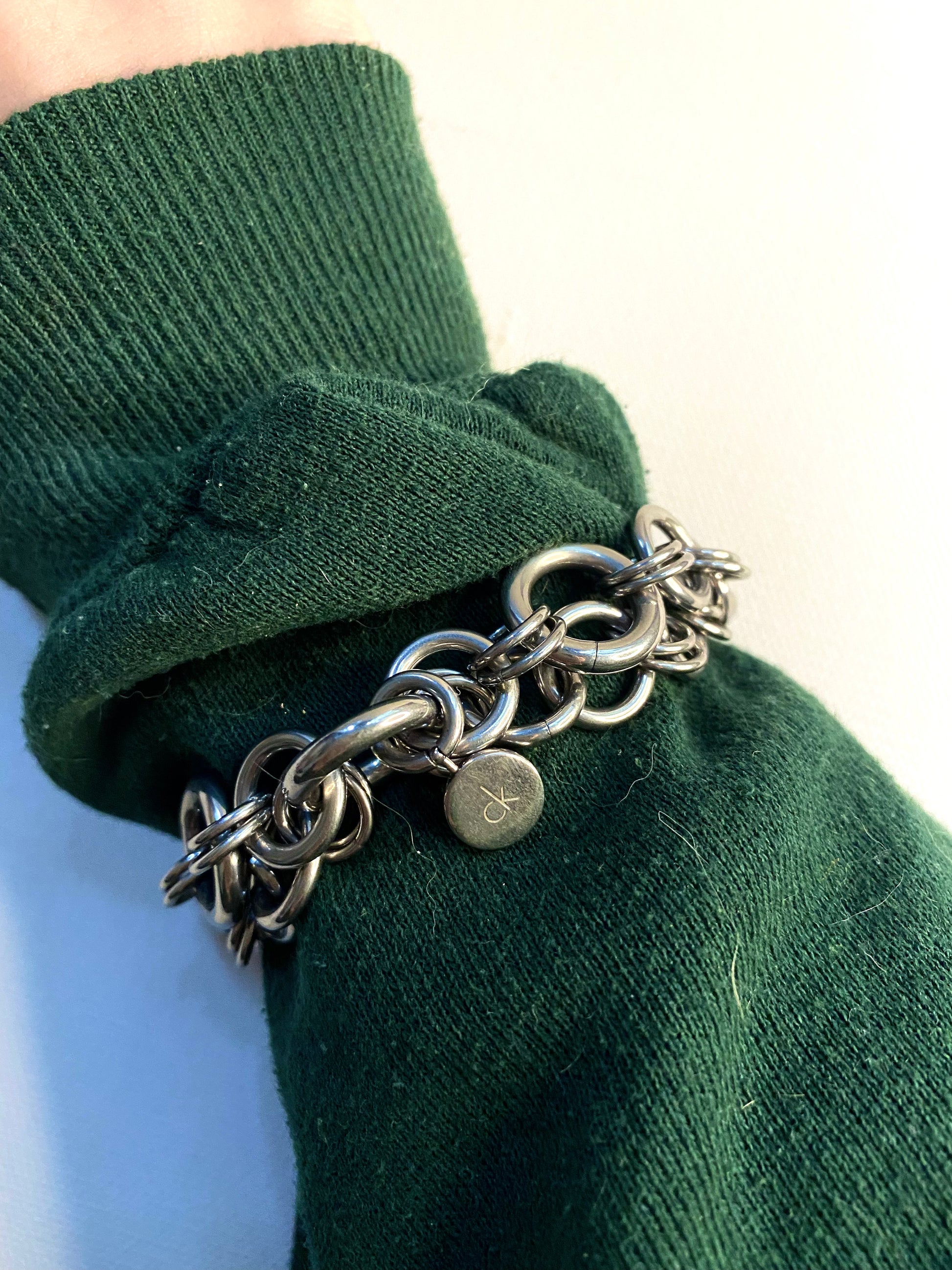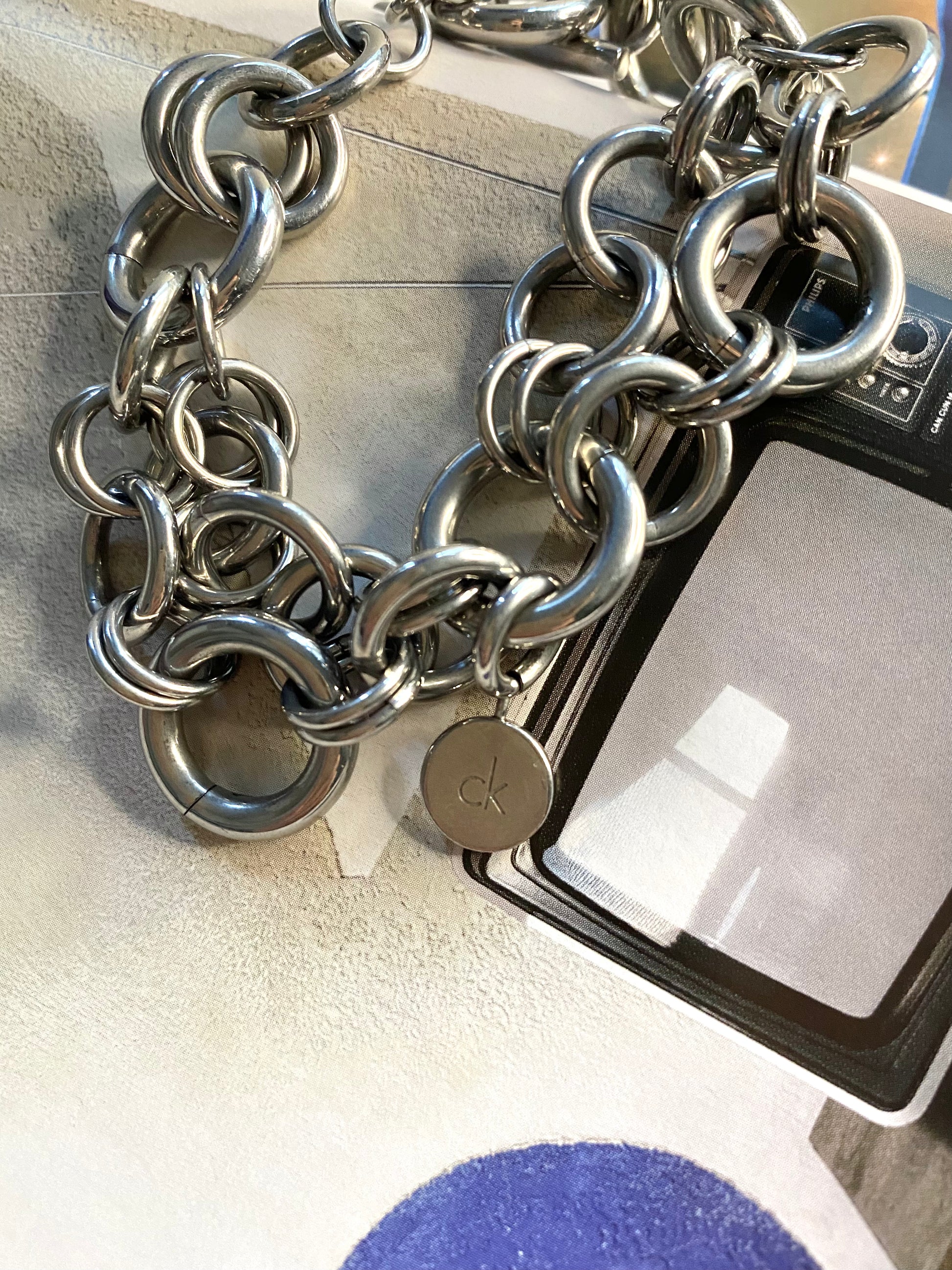EN/ Bracelet with large chains of the Calvin Klein brand in stainless steel. Strong piece that will go with all styles for a touch of rock/punk distinguished.