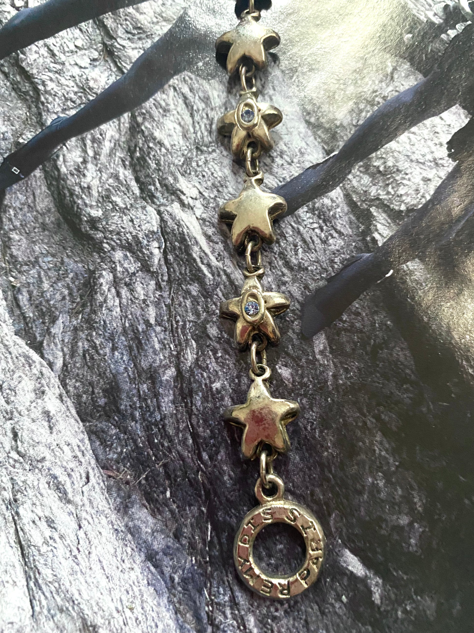 FR/ Bracelet de la marque vintage Remy Dis, modèle étoile en argent et cristaux bleus. Remy Dis était un créateur américain de bijoux dans les années 80. Les cristaux bleu délicatement posés sur le bracelet rende le bracelet encore plus sublime.