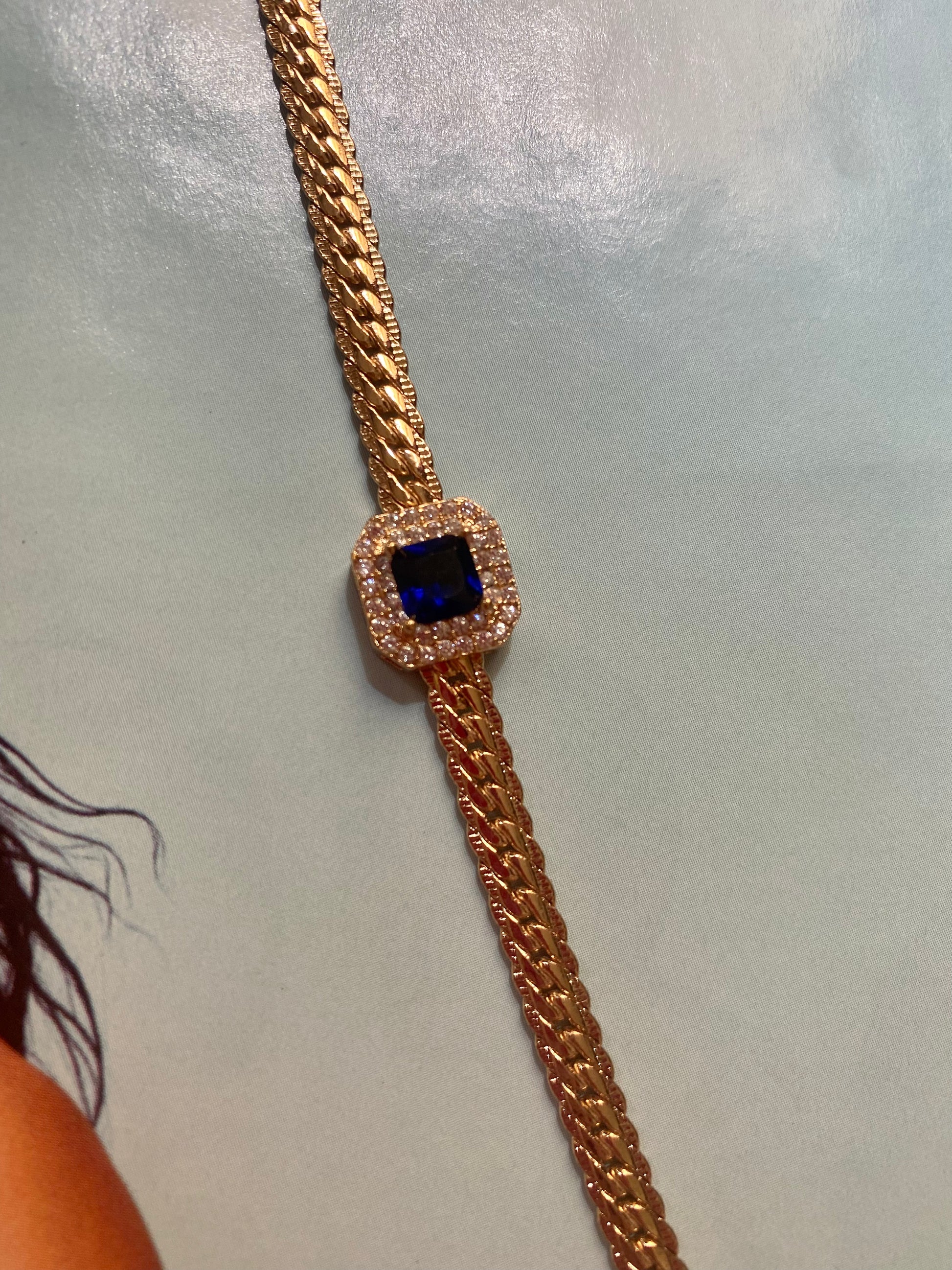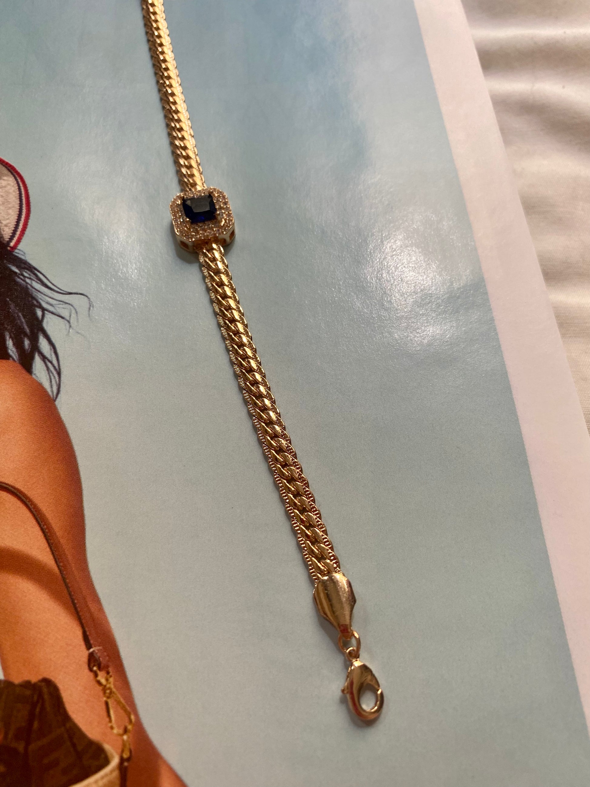 EN/ Gold plated bracelet with a beautiful blue stone and zirconiums. Very chic and elegant.