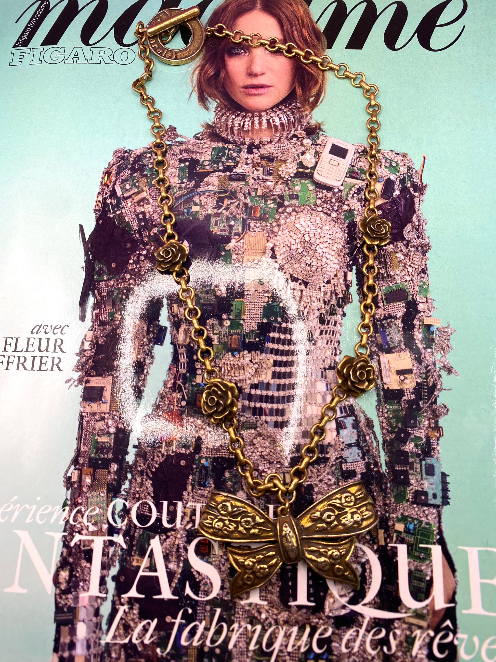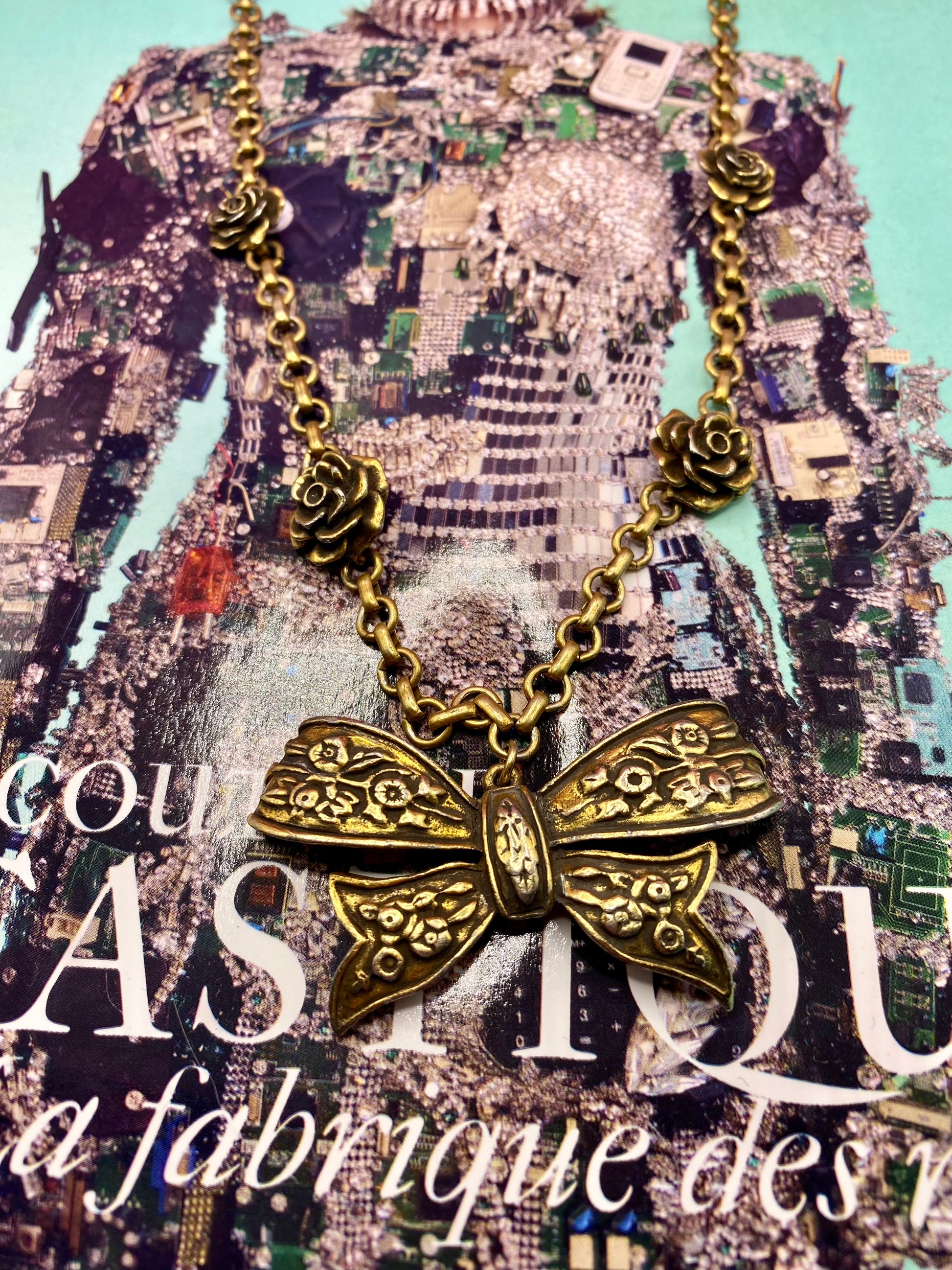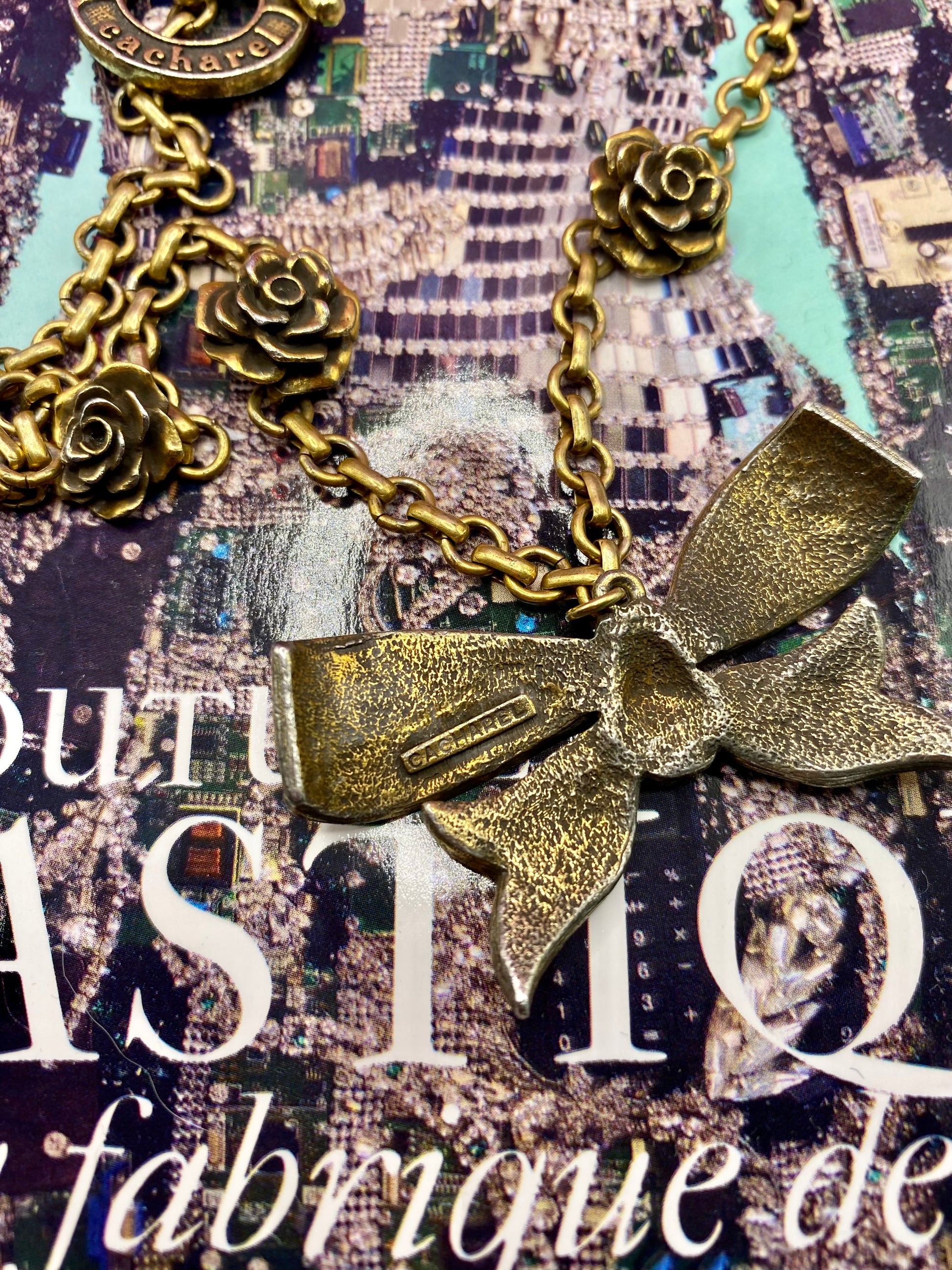 Necklace signed Cacharel in bronze. The bow tie shape is a timeless shape that we never get tired of in jewelry.