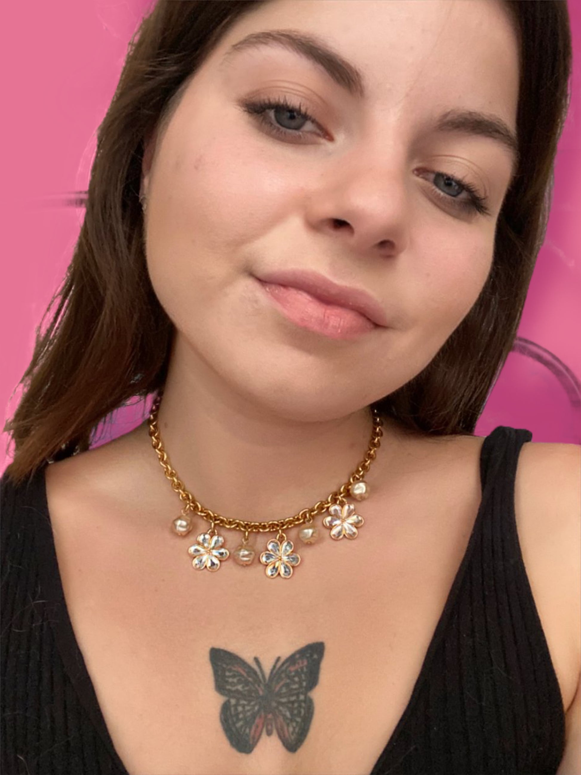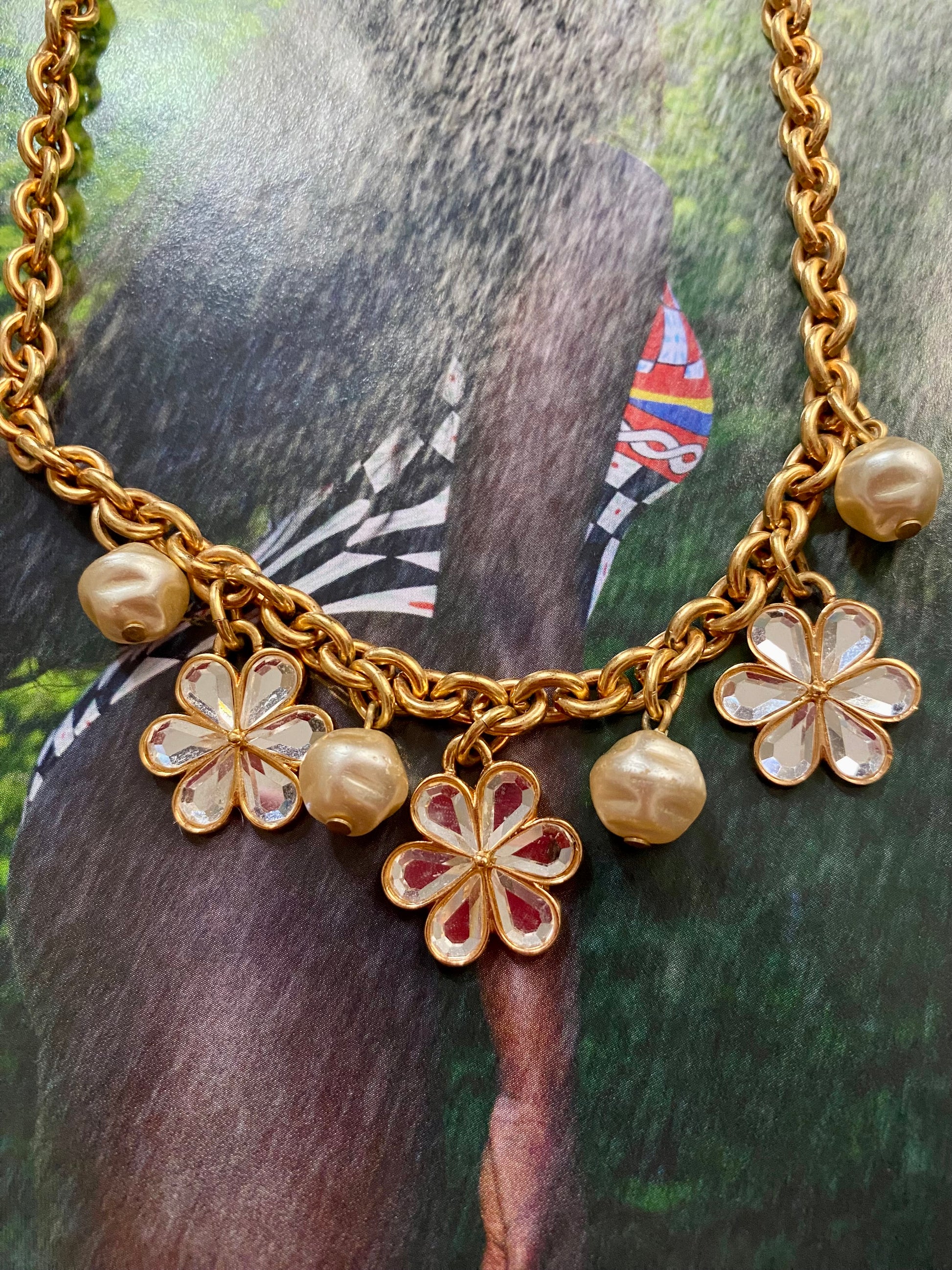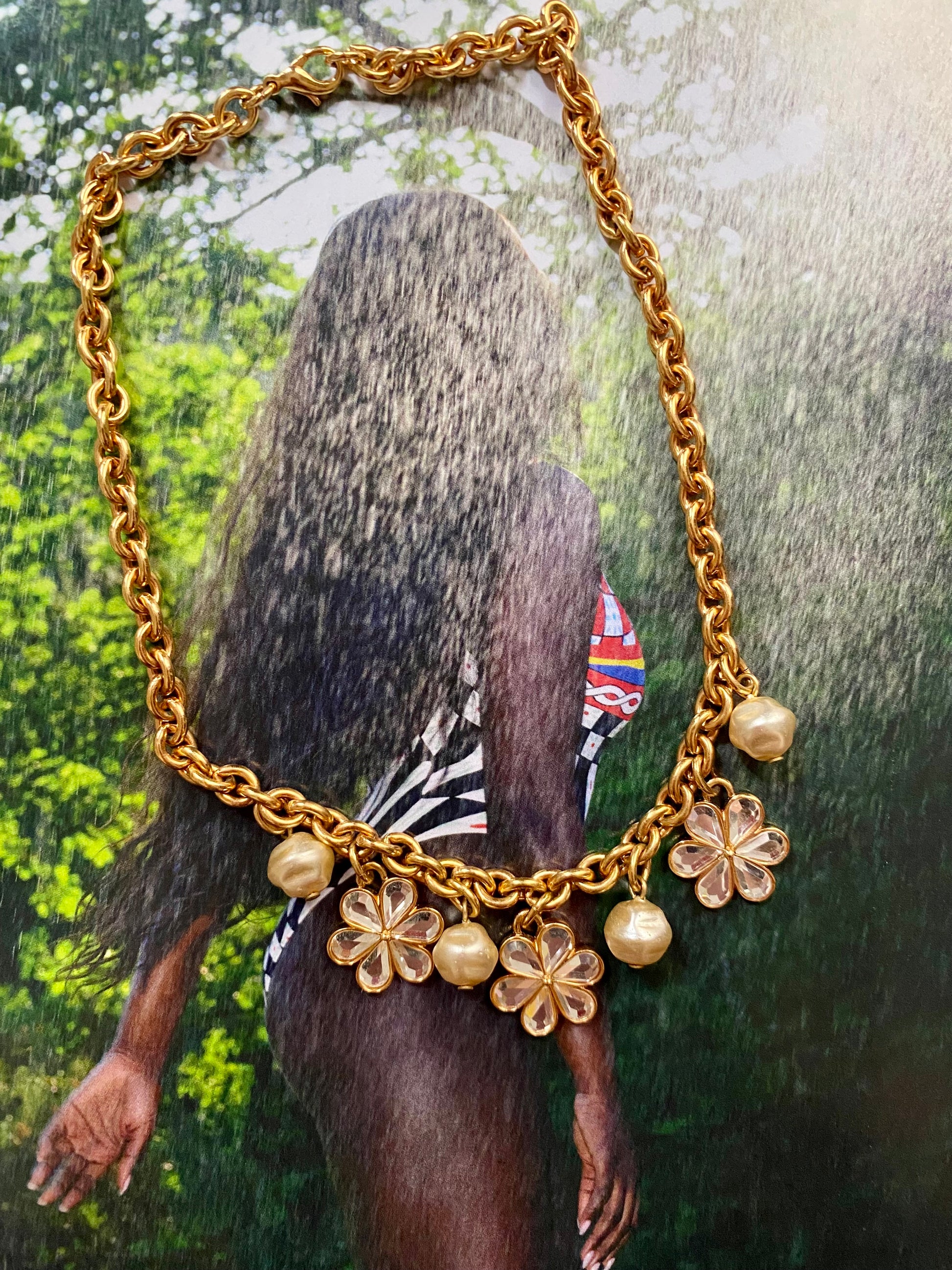 Ras de cou signé Carven en plaqué or, cristaux et perles de cultures.