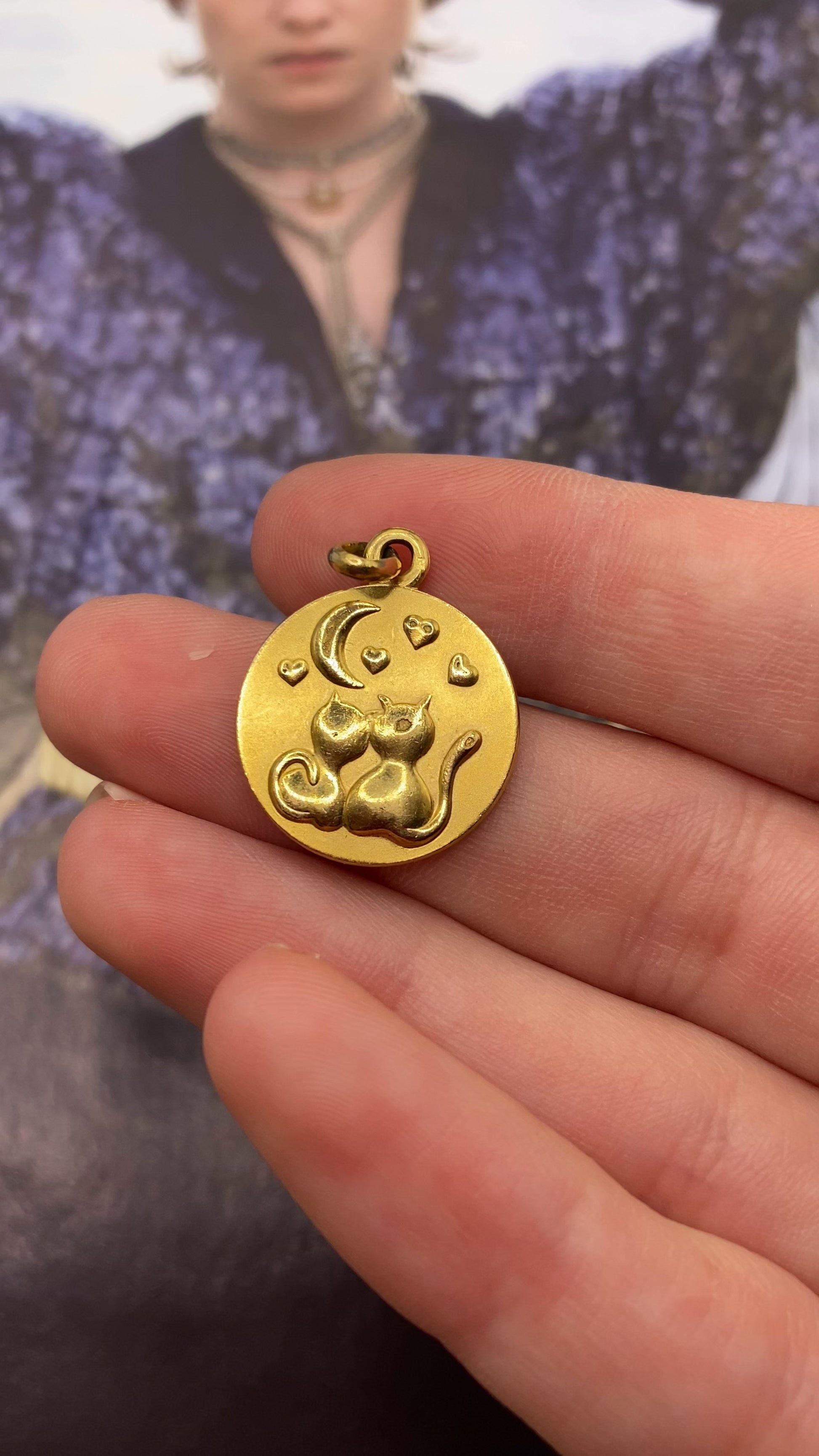 EN/ Adorable little gold-plated pendant, I fell for his childish vibe and these two little cats. Its delicacy makes it precious.