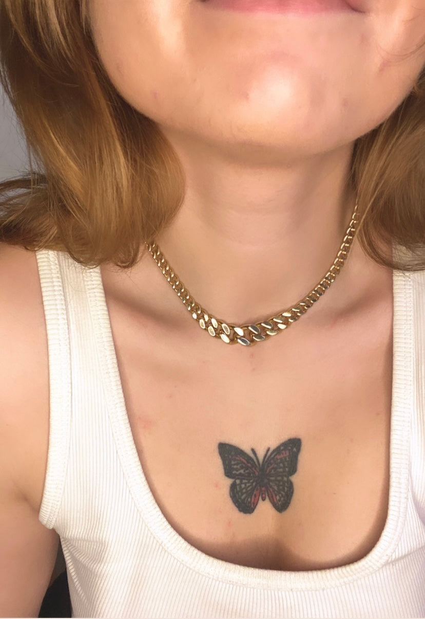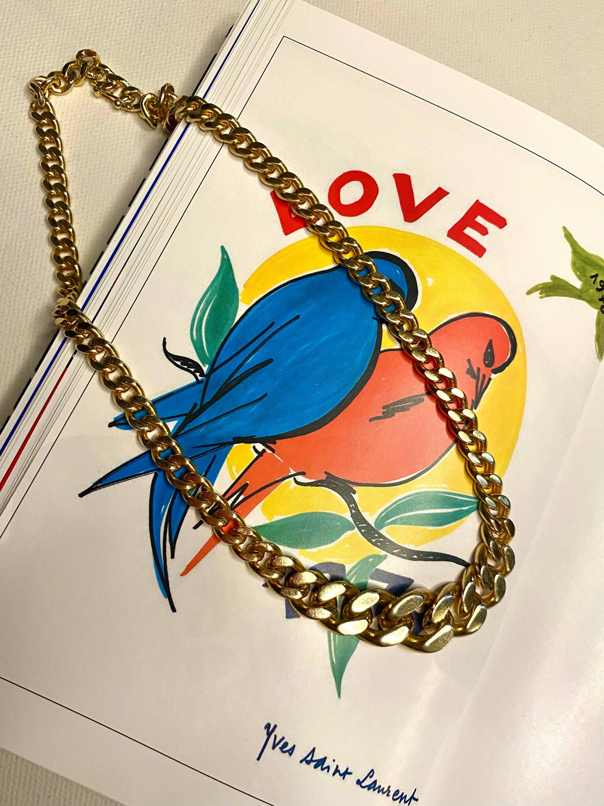 Chaîne plaqué or en maillons du plus large en partant du centre au plus fin.