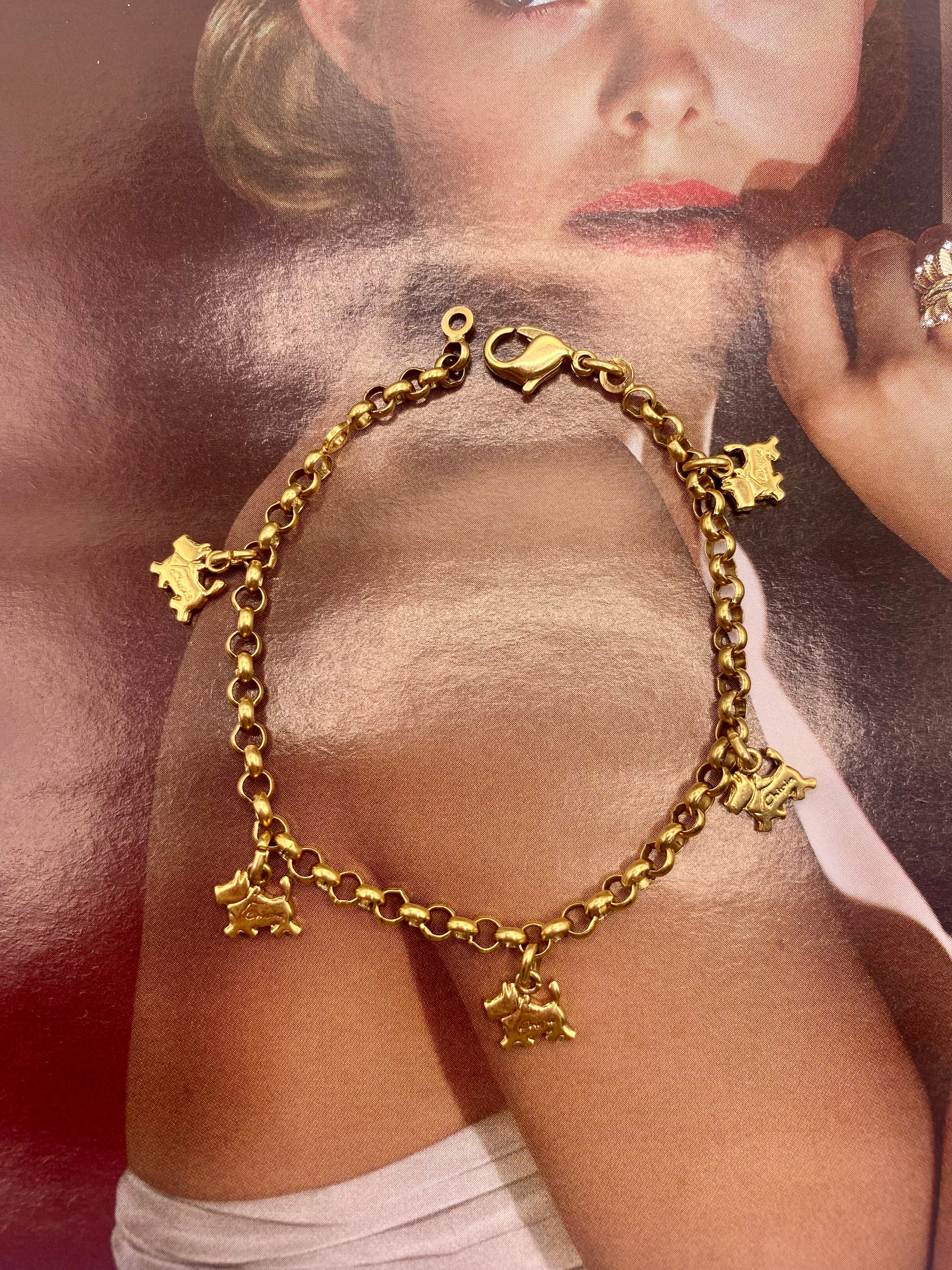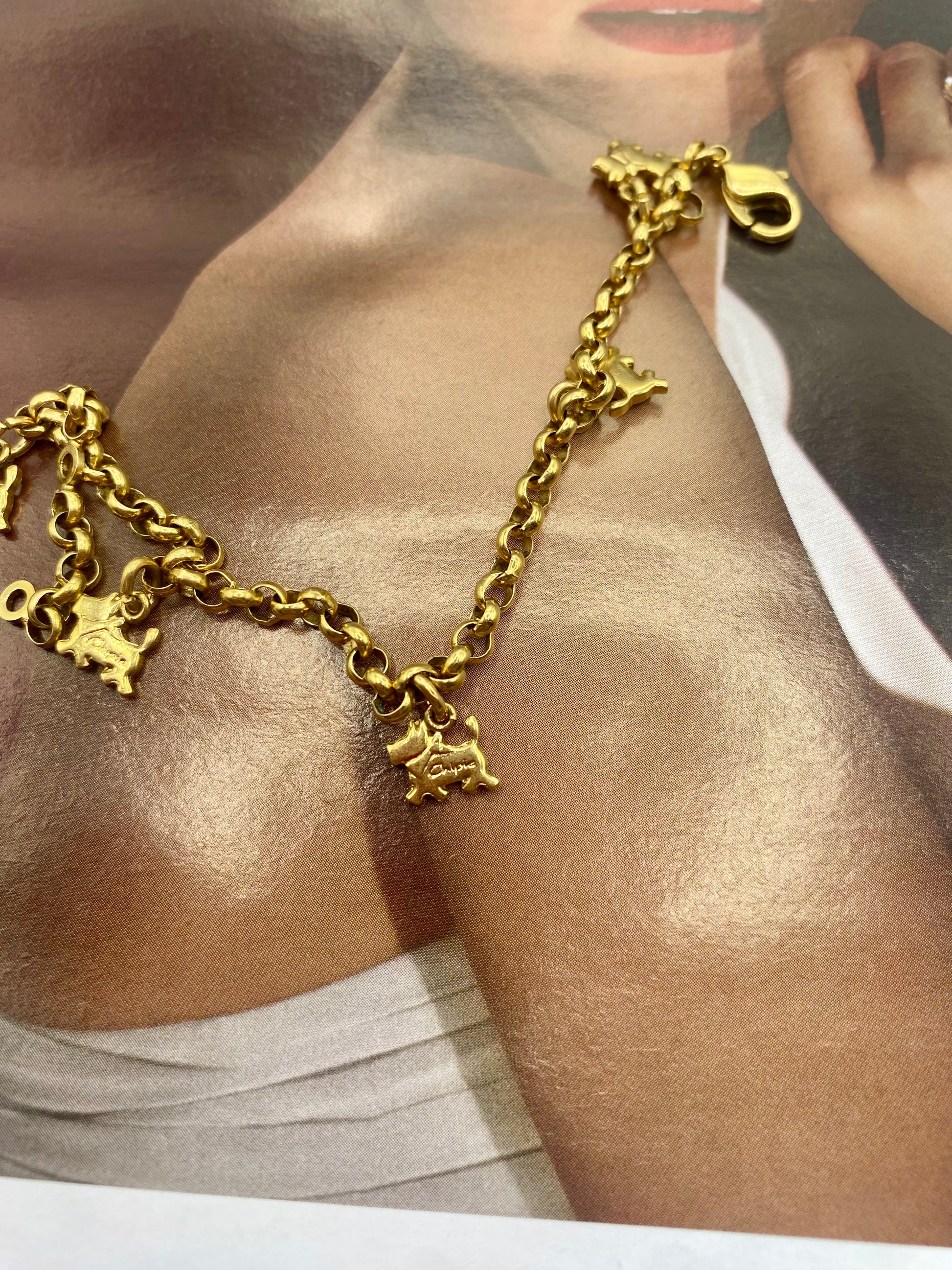 FR/ Adorable bracelet plaqué or de la marque « Chipie » fondé en 1967, marque qui pour ceux des années 90 comme moi, à bercé notre enfance et notre début d’adolescence. Tous les petits pendentifs sont signés et la qualité est encore très belle pour son vécu, piece que vous ne retrouverez plus chez eux. De quoi raviver des souvenirs avec une pièce qui redevient tendance.