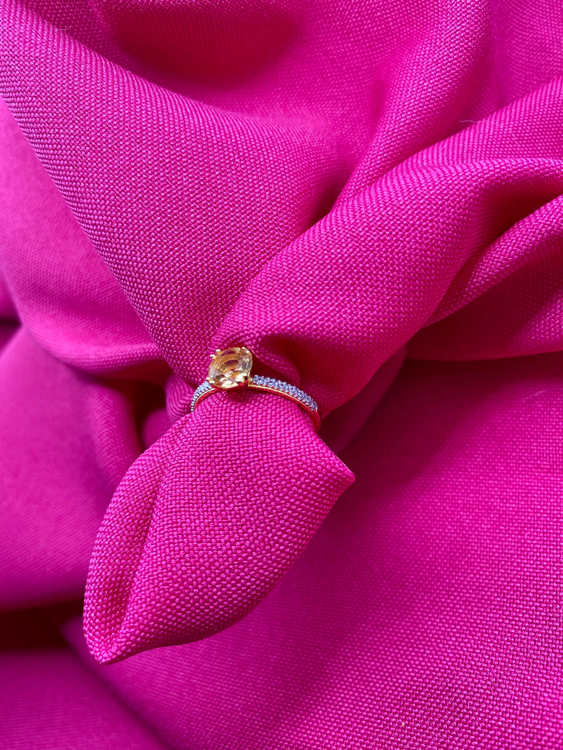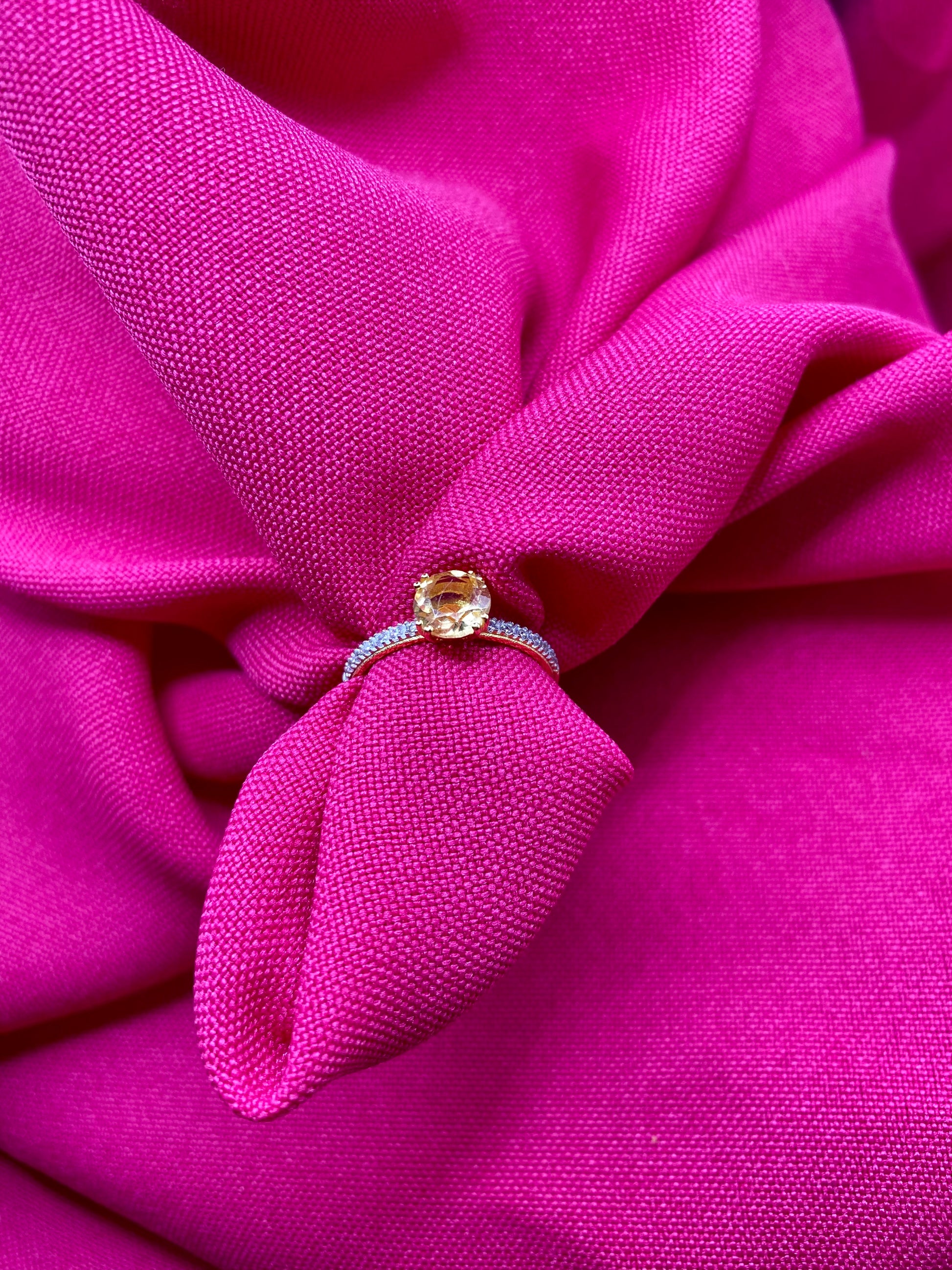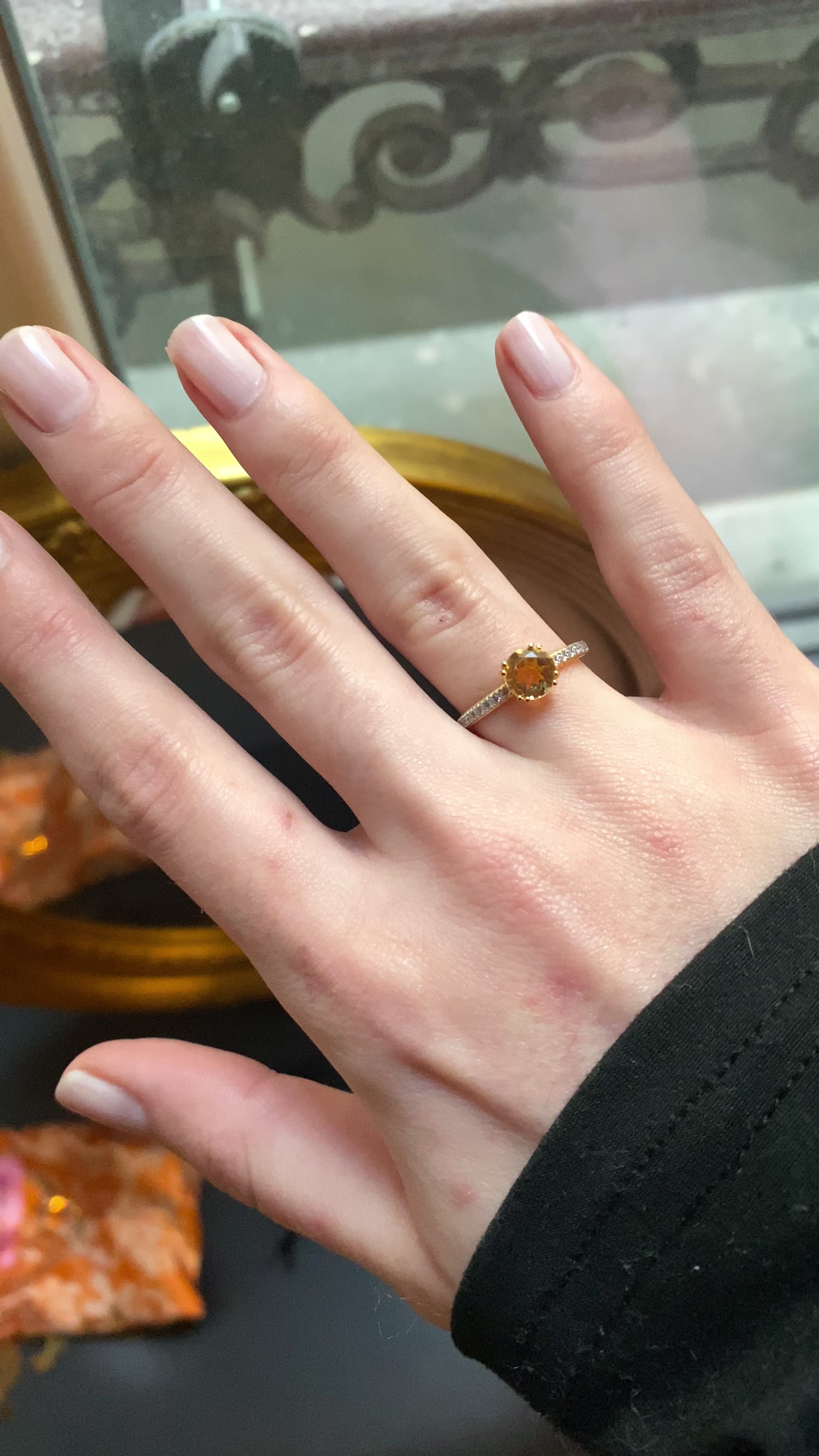 FR/ Bague en argent plaqué or, citrine et zirconiums. Un modèle intemporel et élégant, qui se porte pour toutes les occasions.
