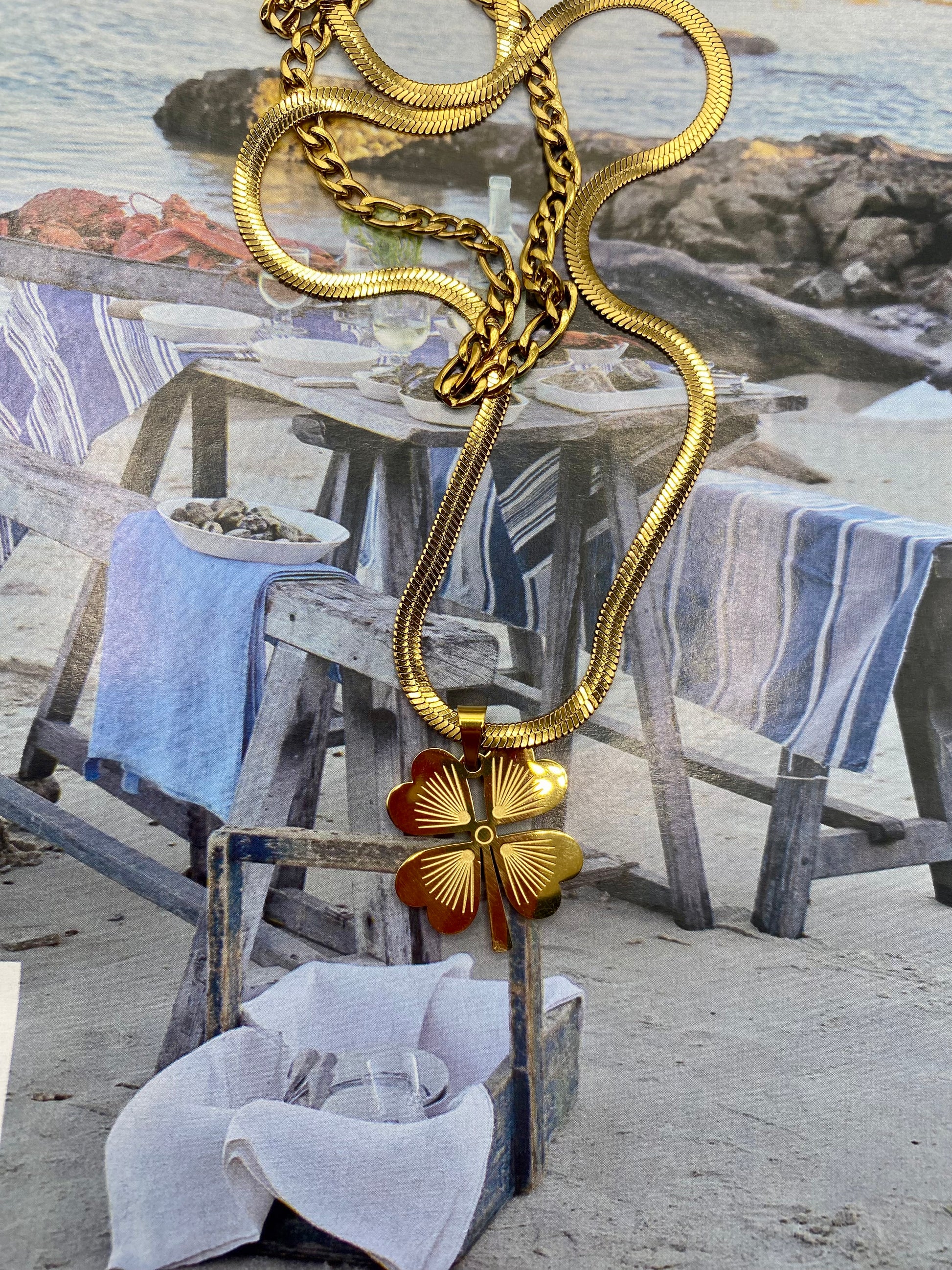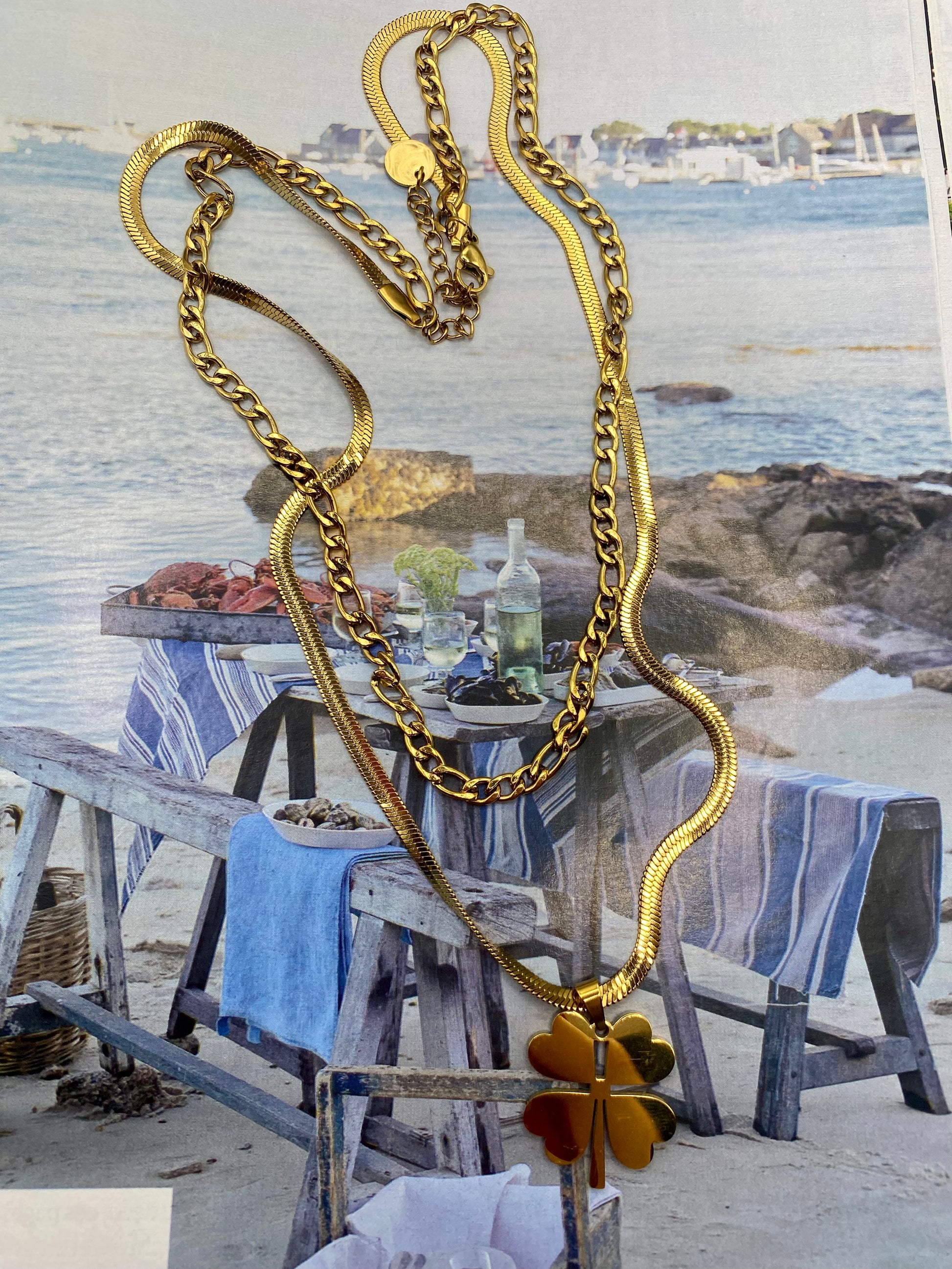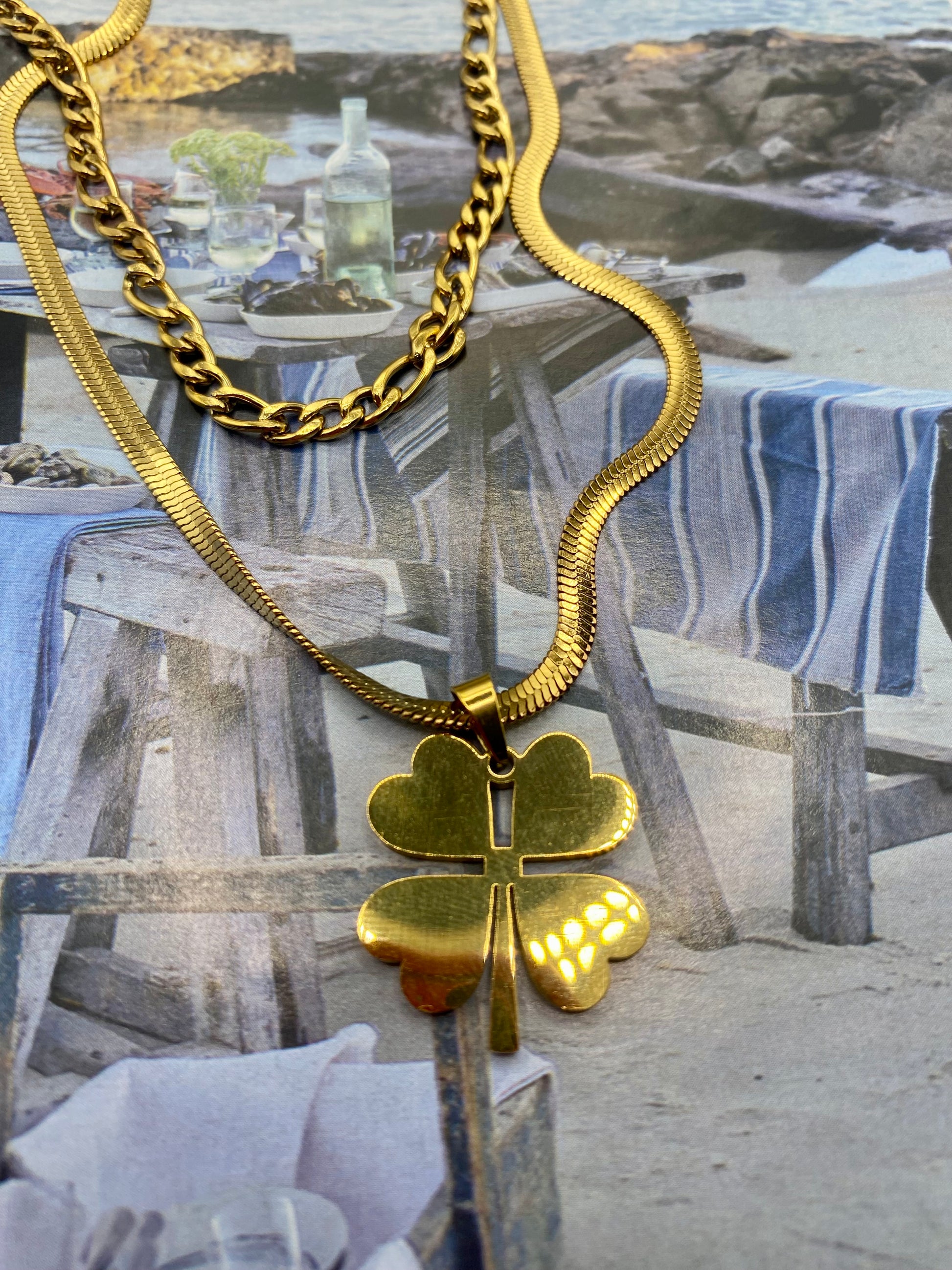 EN/ Double chain clover necklace, this necklace can be worn more or less like a hocker. A timeless and trendy piece with its clover, it will be a pretty everyday lucky charm or to bring luck at a special moment.