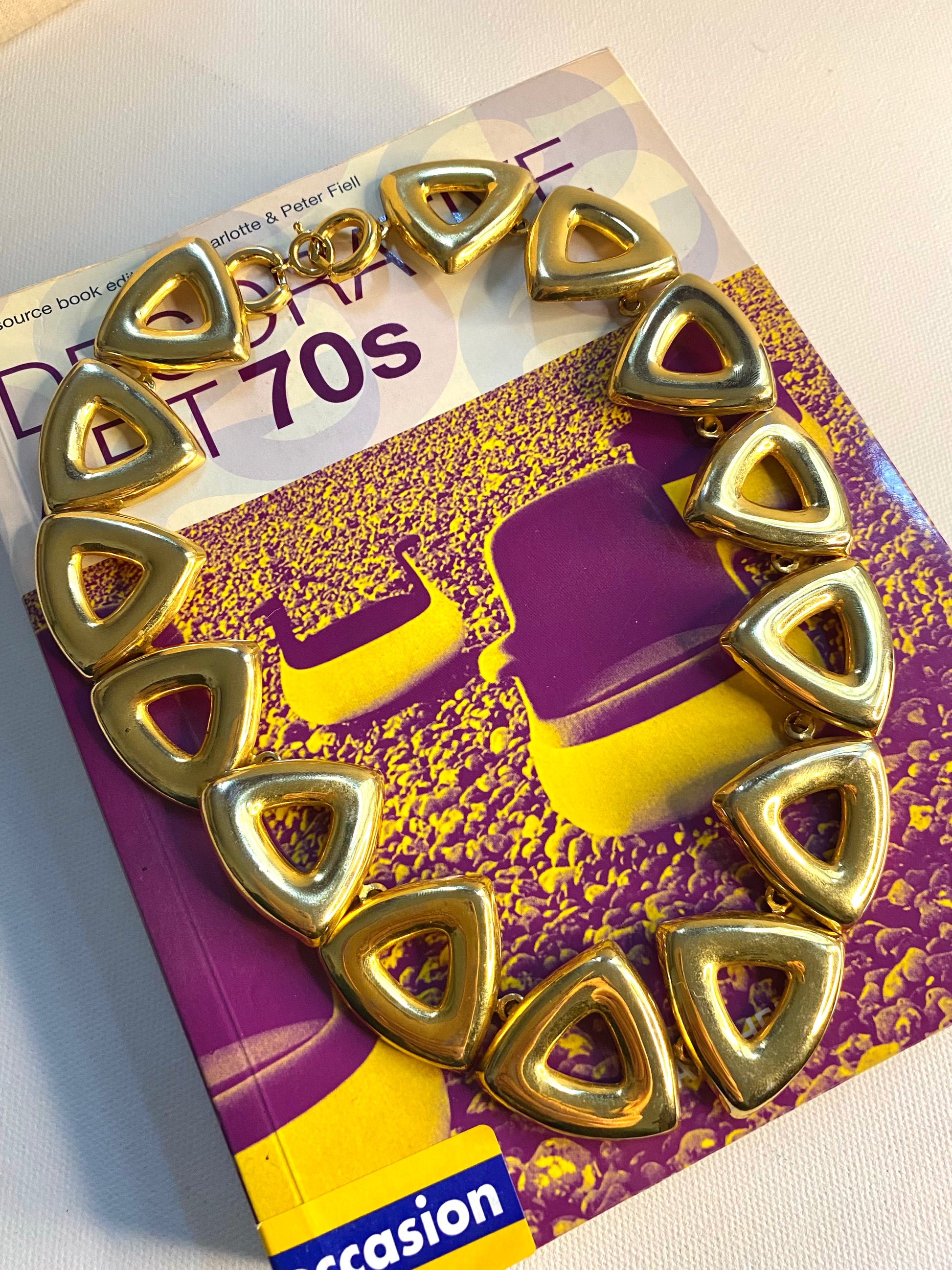 Collier vintage en acier doré et très léger.