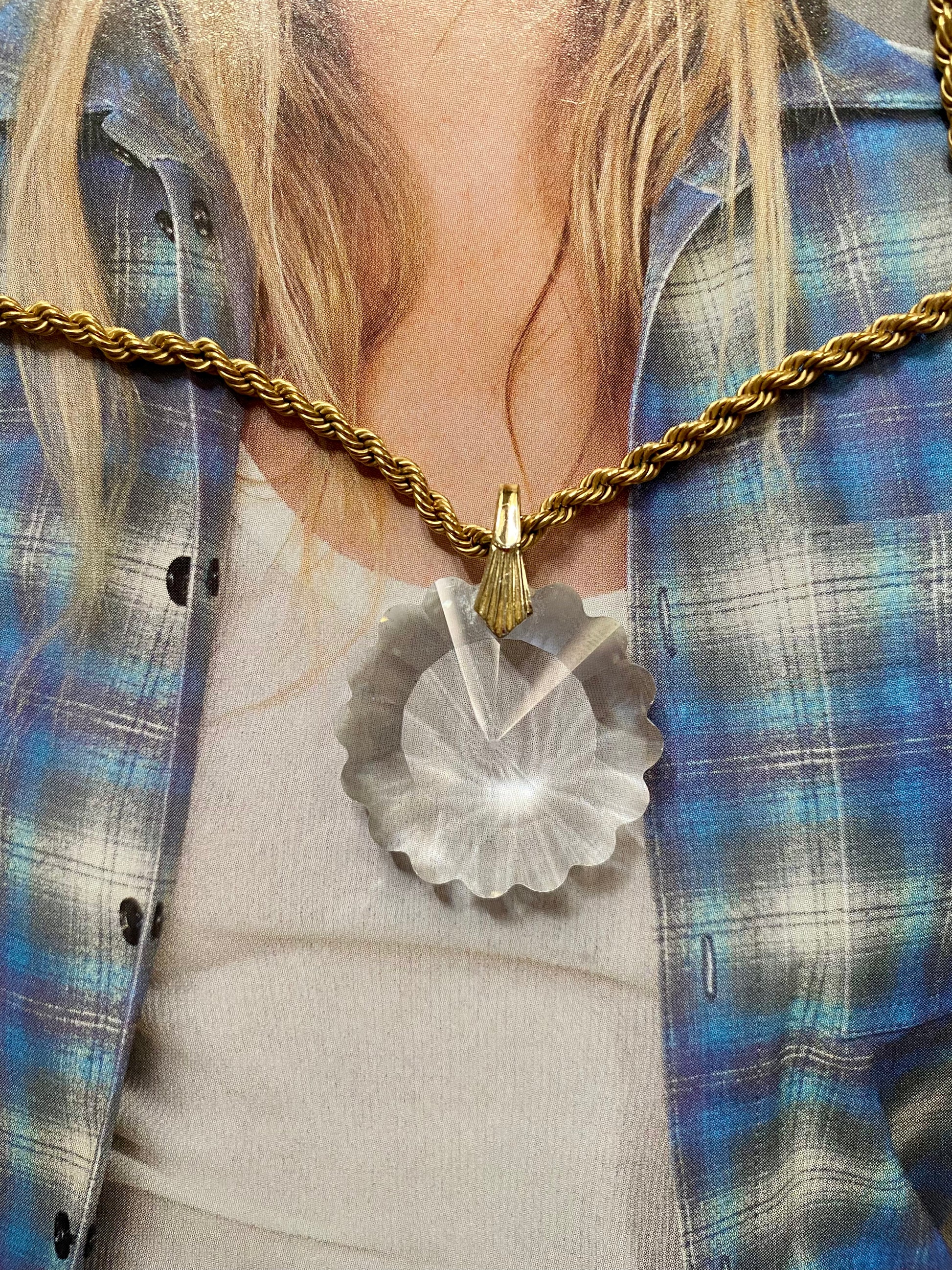 Collier avec une chaîne plaqué or et un gros cristal en pendentif. Date des années 60.