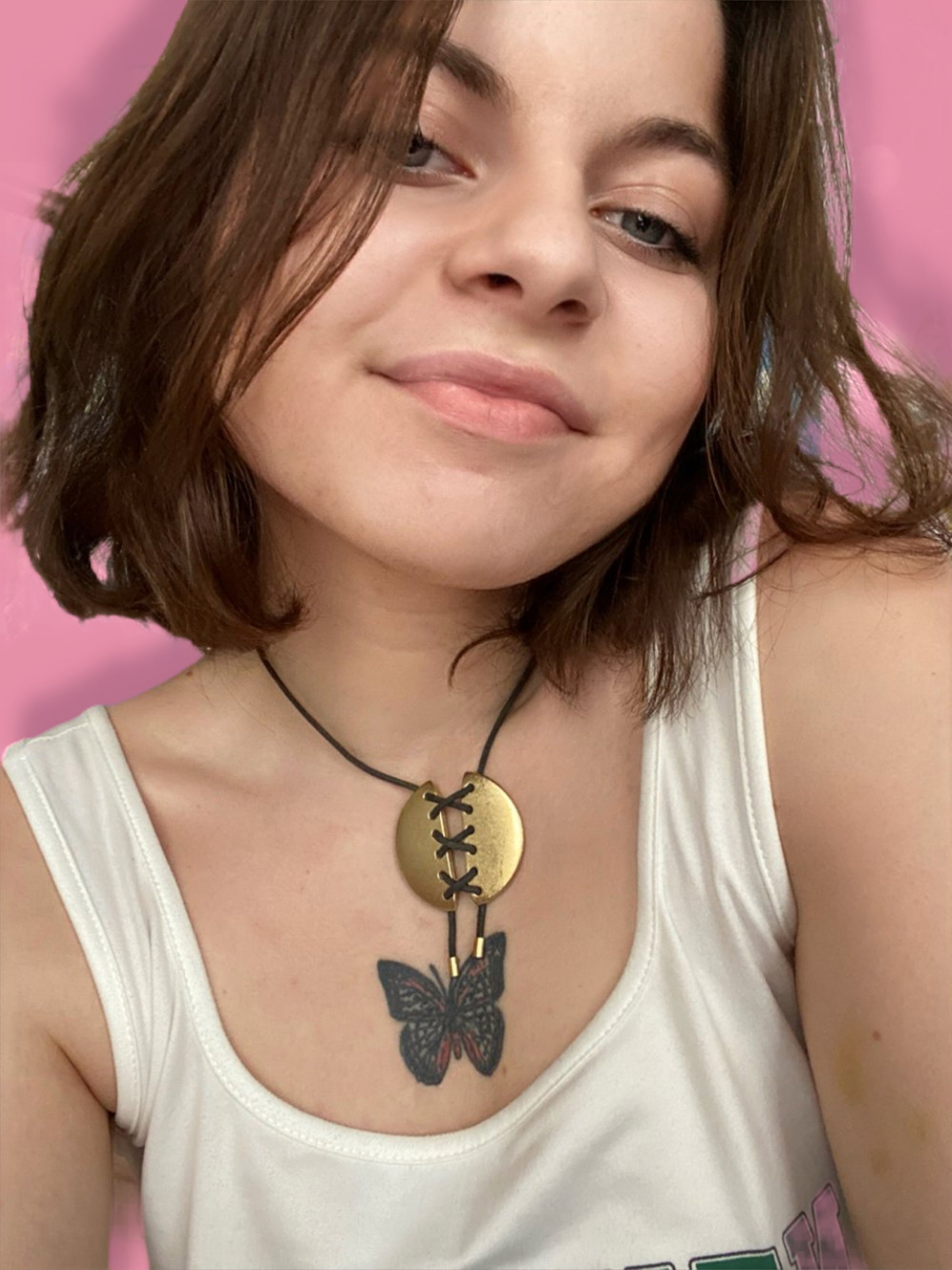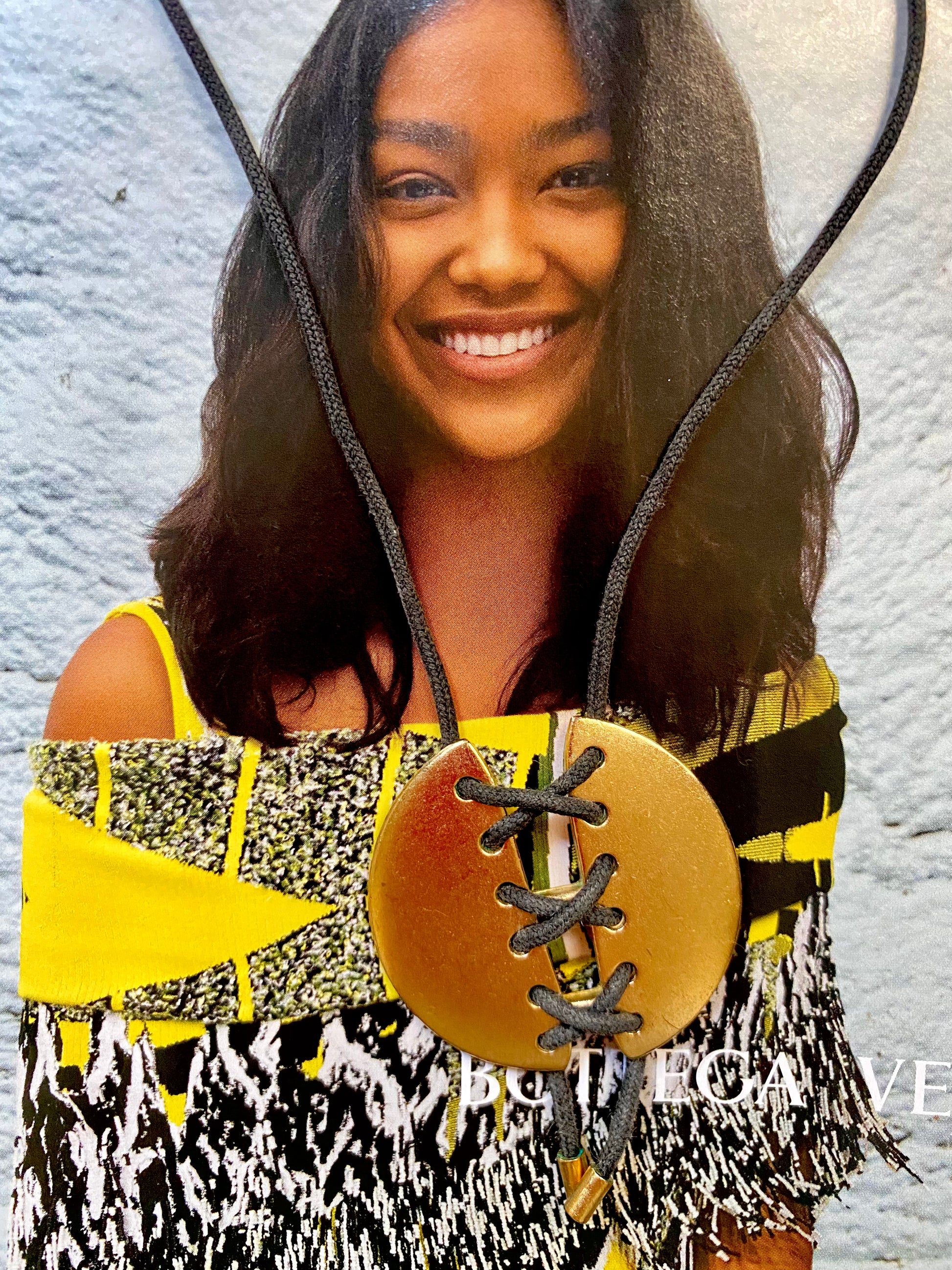 Collier vintage signé Agatha composé d’un pendentif en plaqué or et d’une corde.