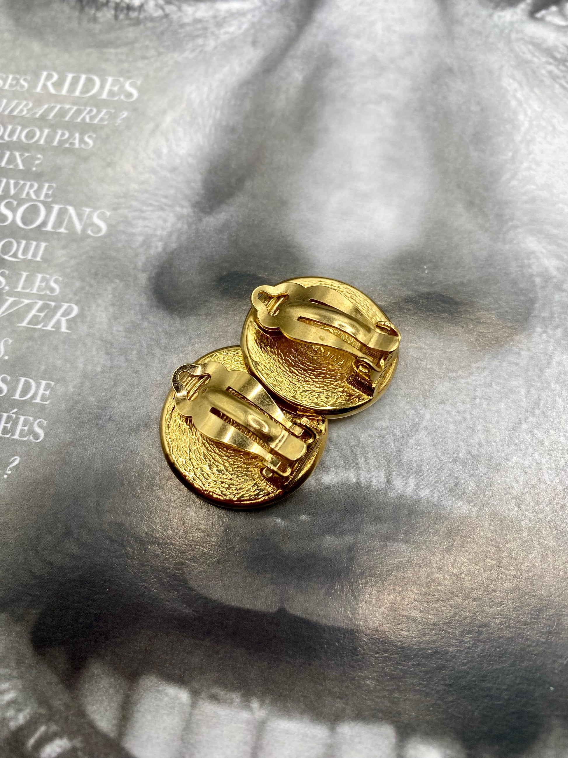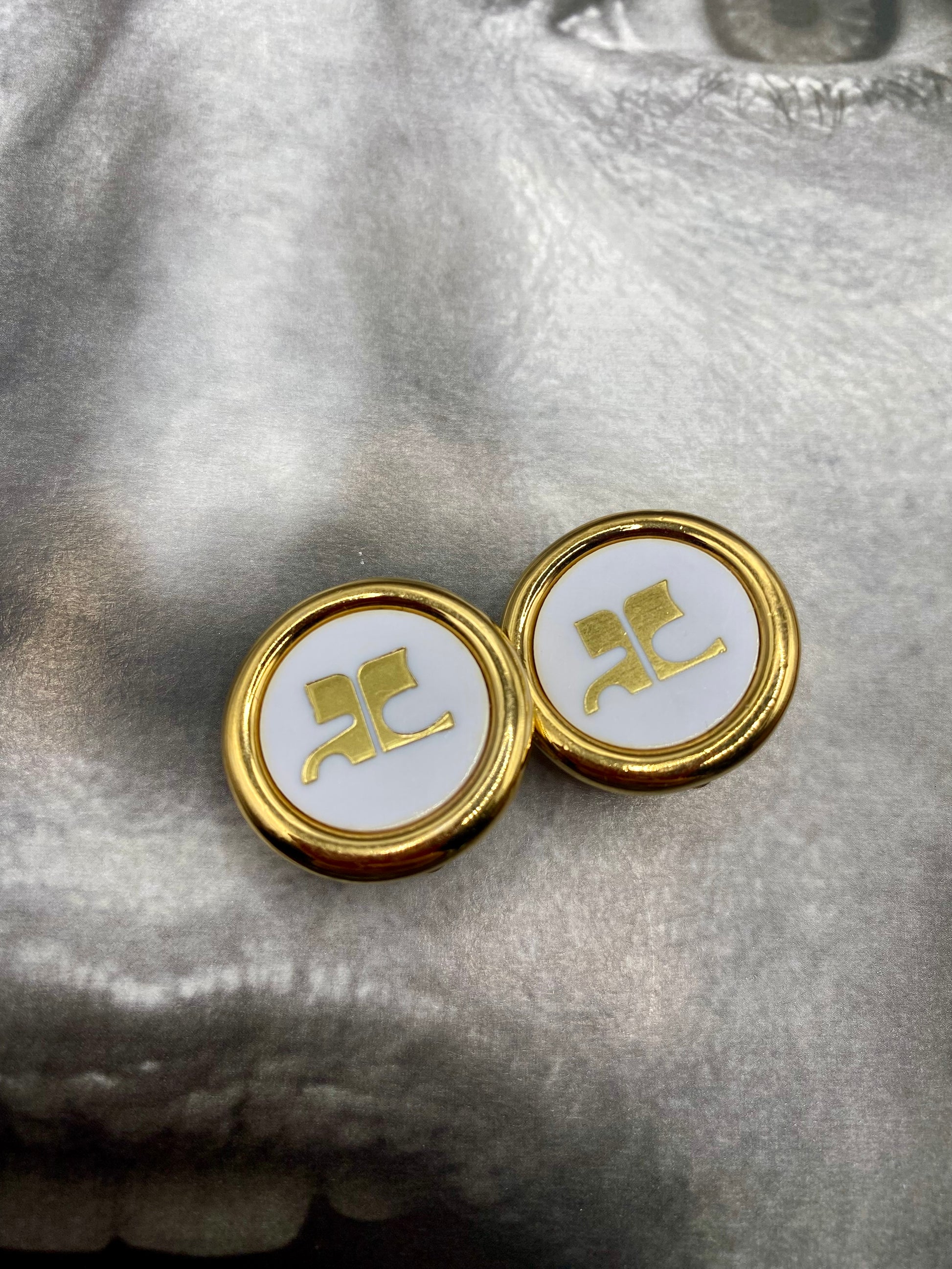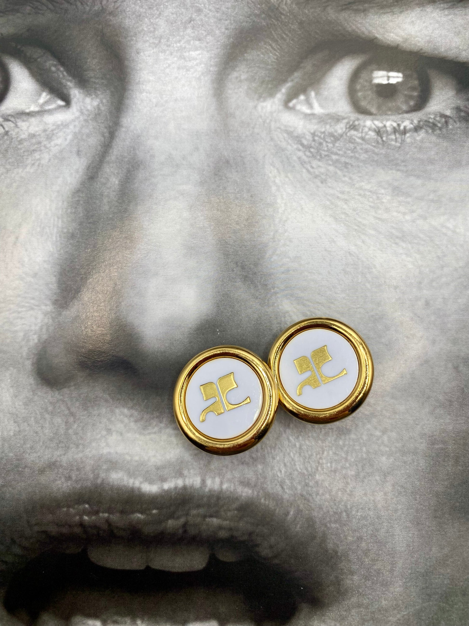 EN/ Clips Courrèges in an almost perfect condition, the logo is placed on a very beautiful white pearl. They are very pleasant to wear.