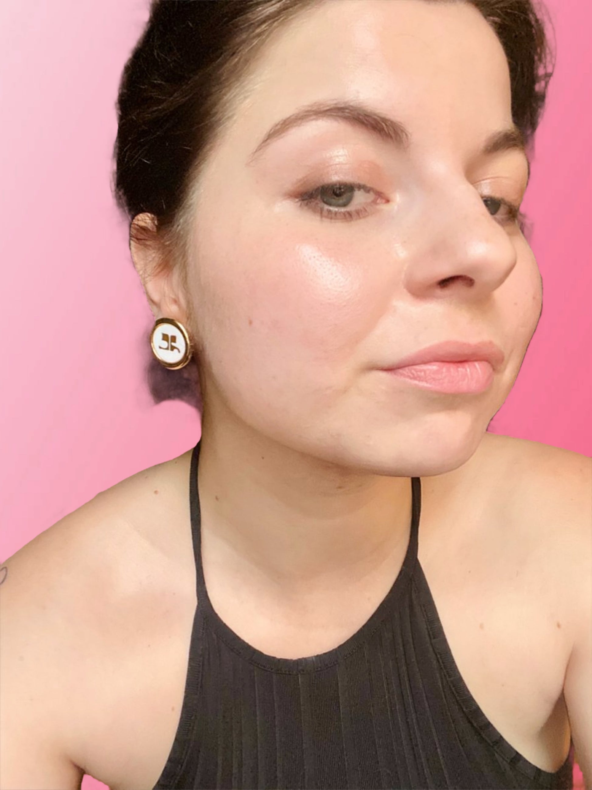 FR/ Clips Courrèges dans un état presque parfait, le logo est placé sur un très beau nacré blanc. Elles sont très agréables à porter.
