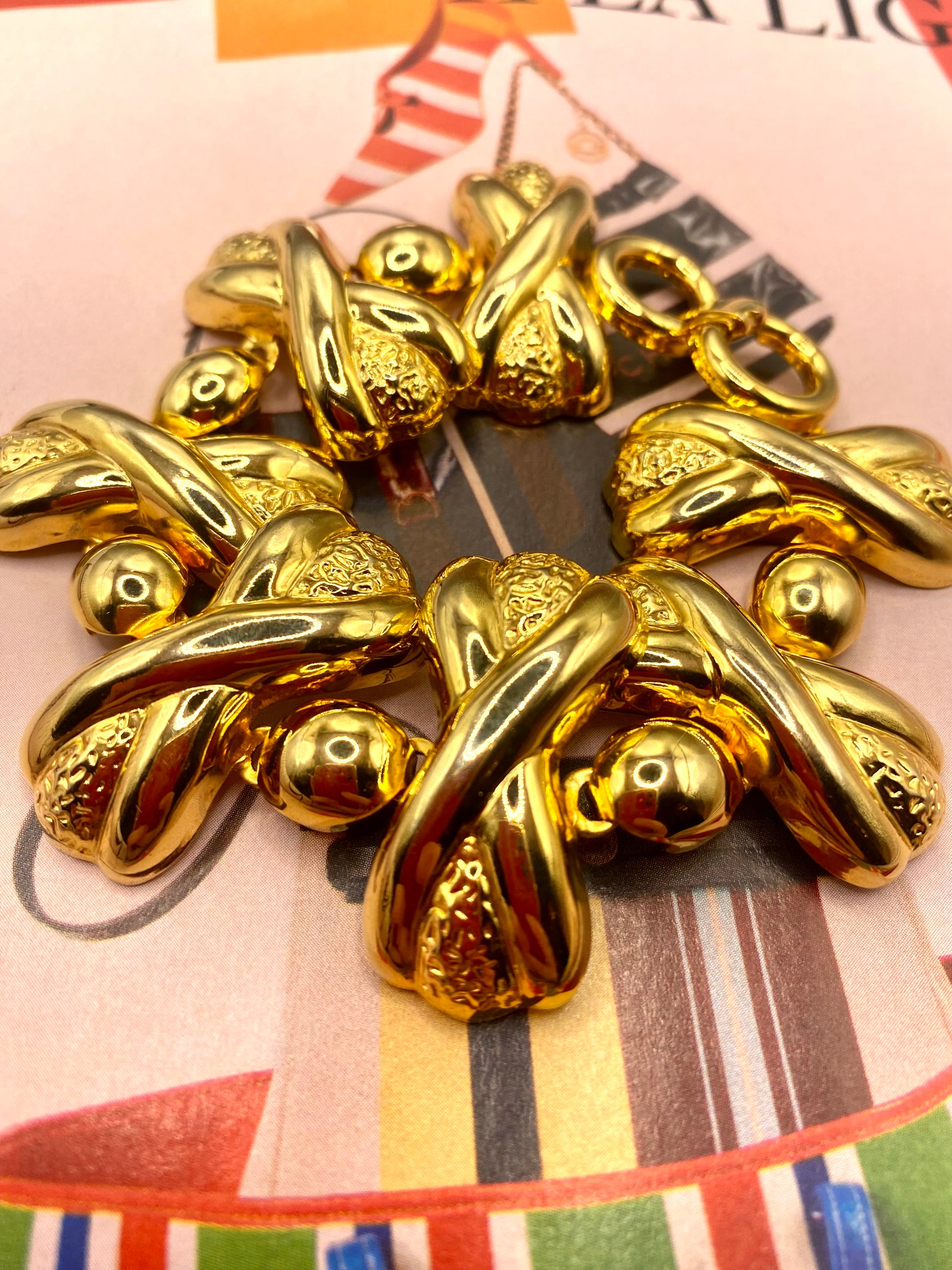 FR/ Bracelet de style années 70 en acier couleur or, léger et très élégant. Une pièce statement qui réveillera un look simple et apportera cette touche couture et chic.