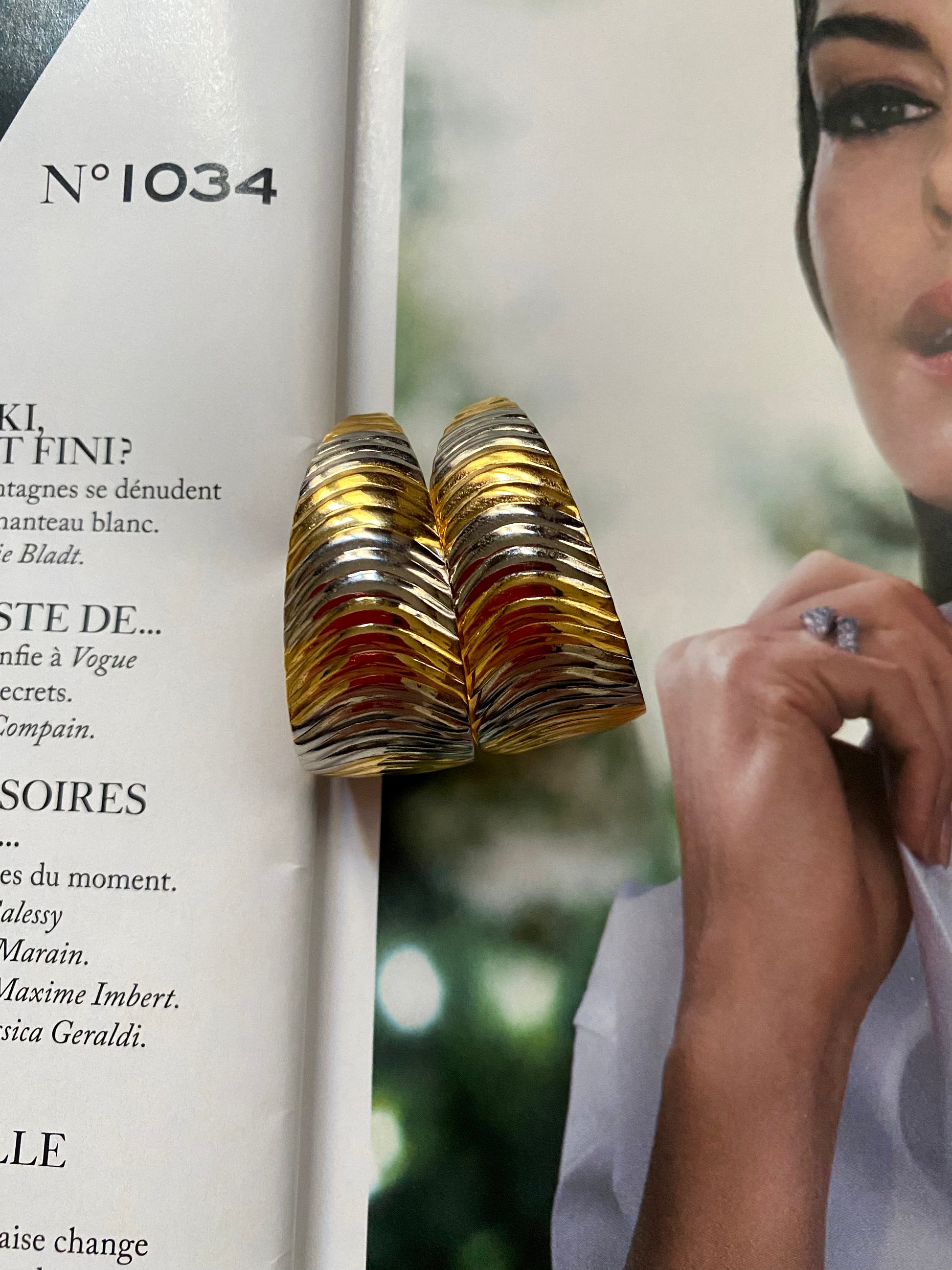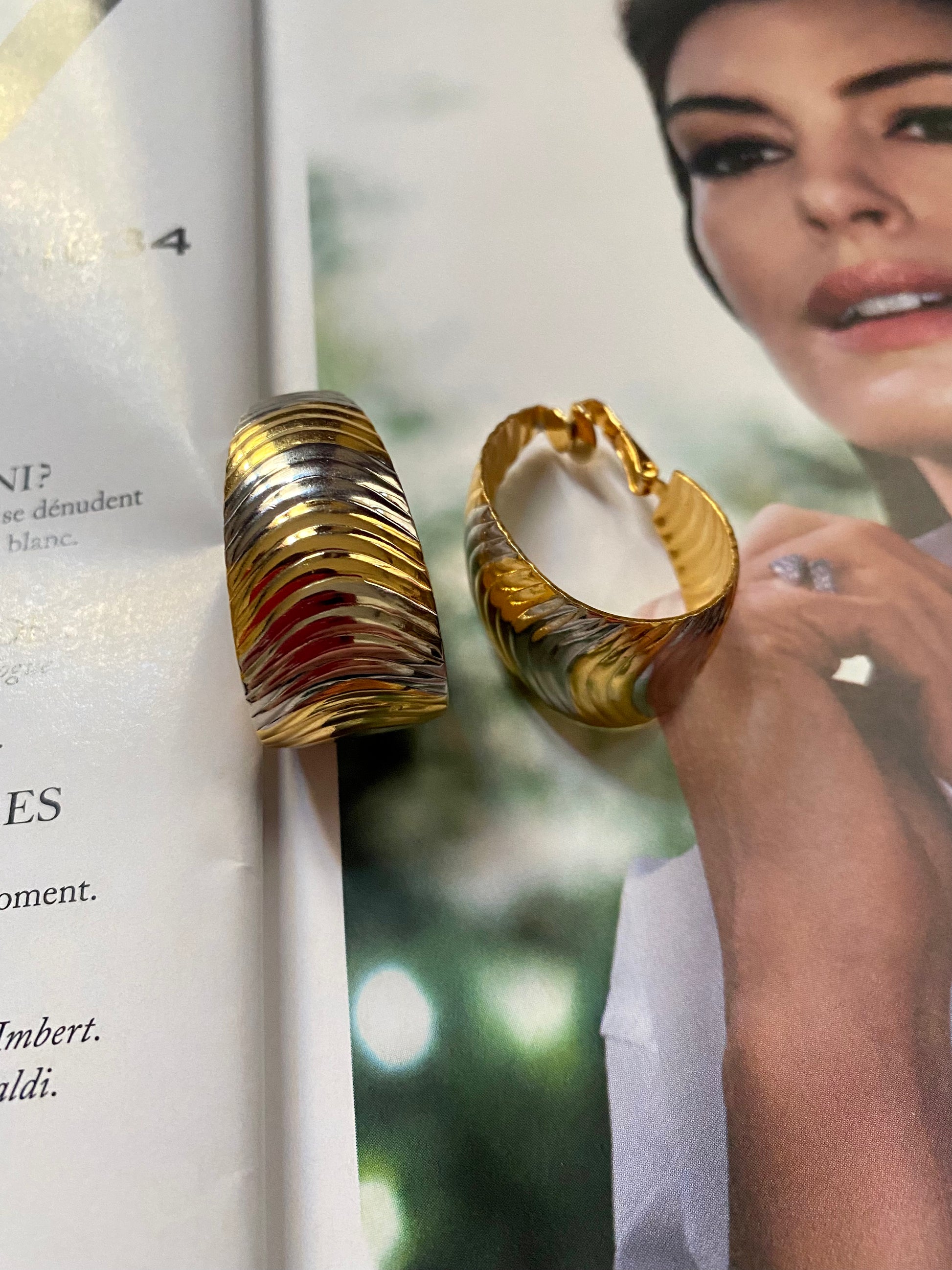 Clips créoles ovales en métal argent et or, elles sont très légères.