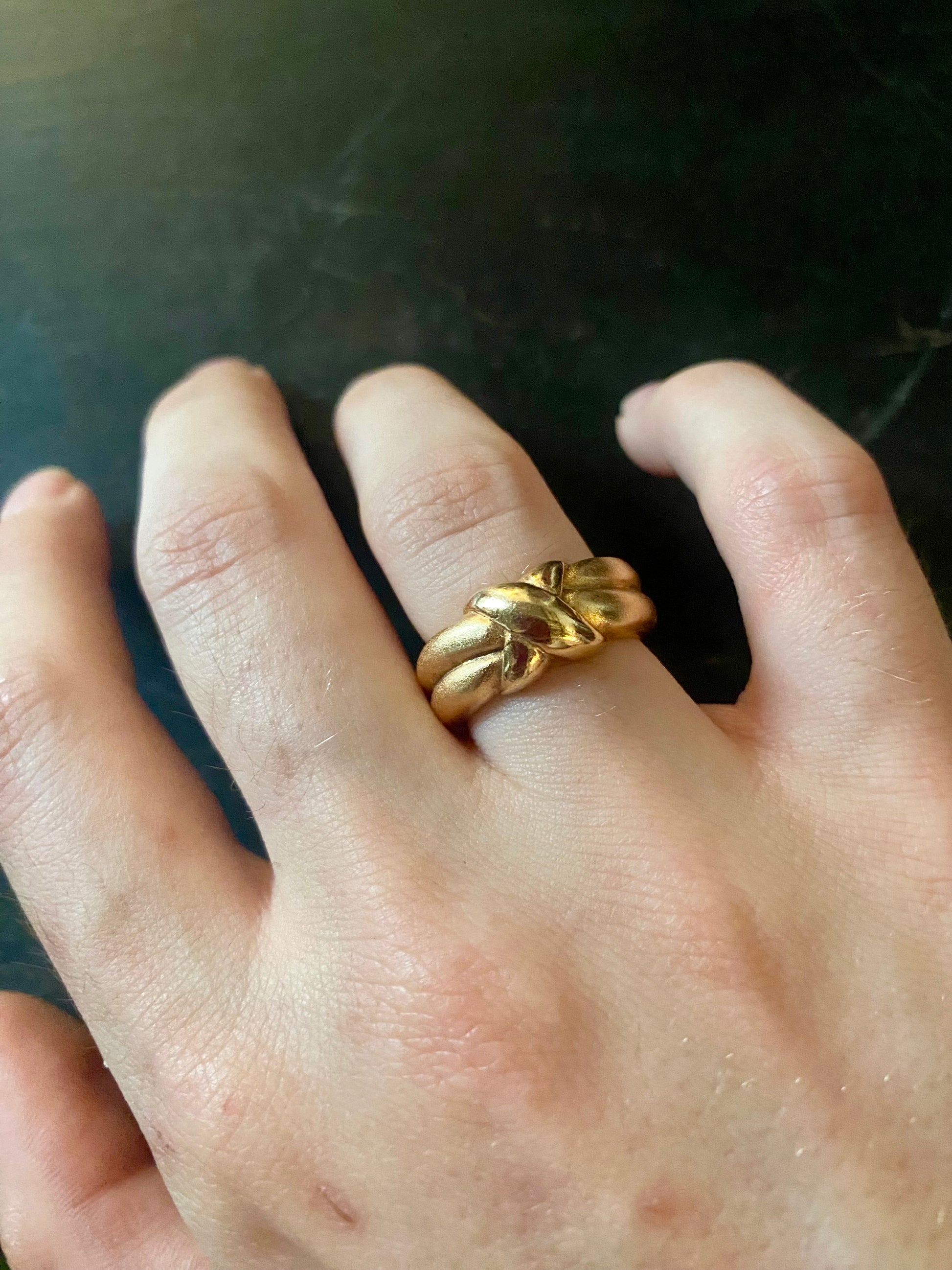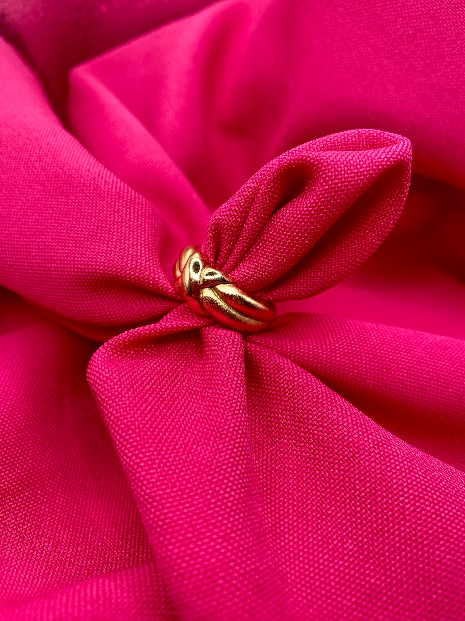 FR/ Sublime bague en plaqué or, avec l’anneau en plaqué or matte et le centre en plaqué or brillant. Une pièce à l’esprit couture, qui se porte tous les jours.