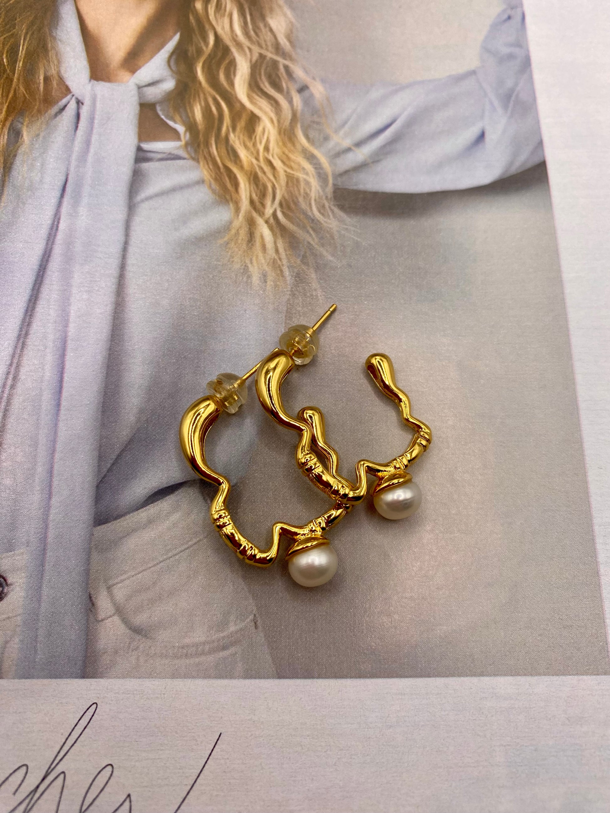 FR/ Créoles déstructurées serties d’une perle de culture, cette pièce est à la fois un mélange de classique et de moderne. Une superbe forme originale et qui fera son effet.