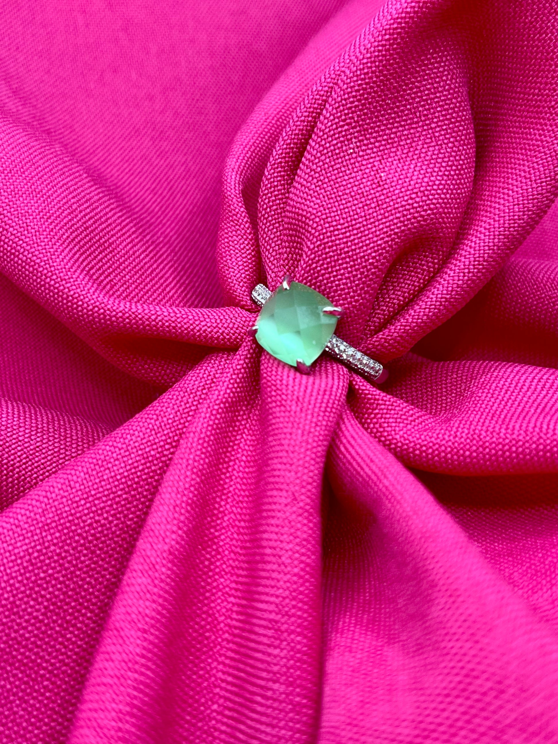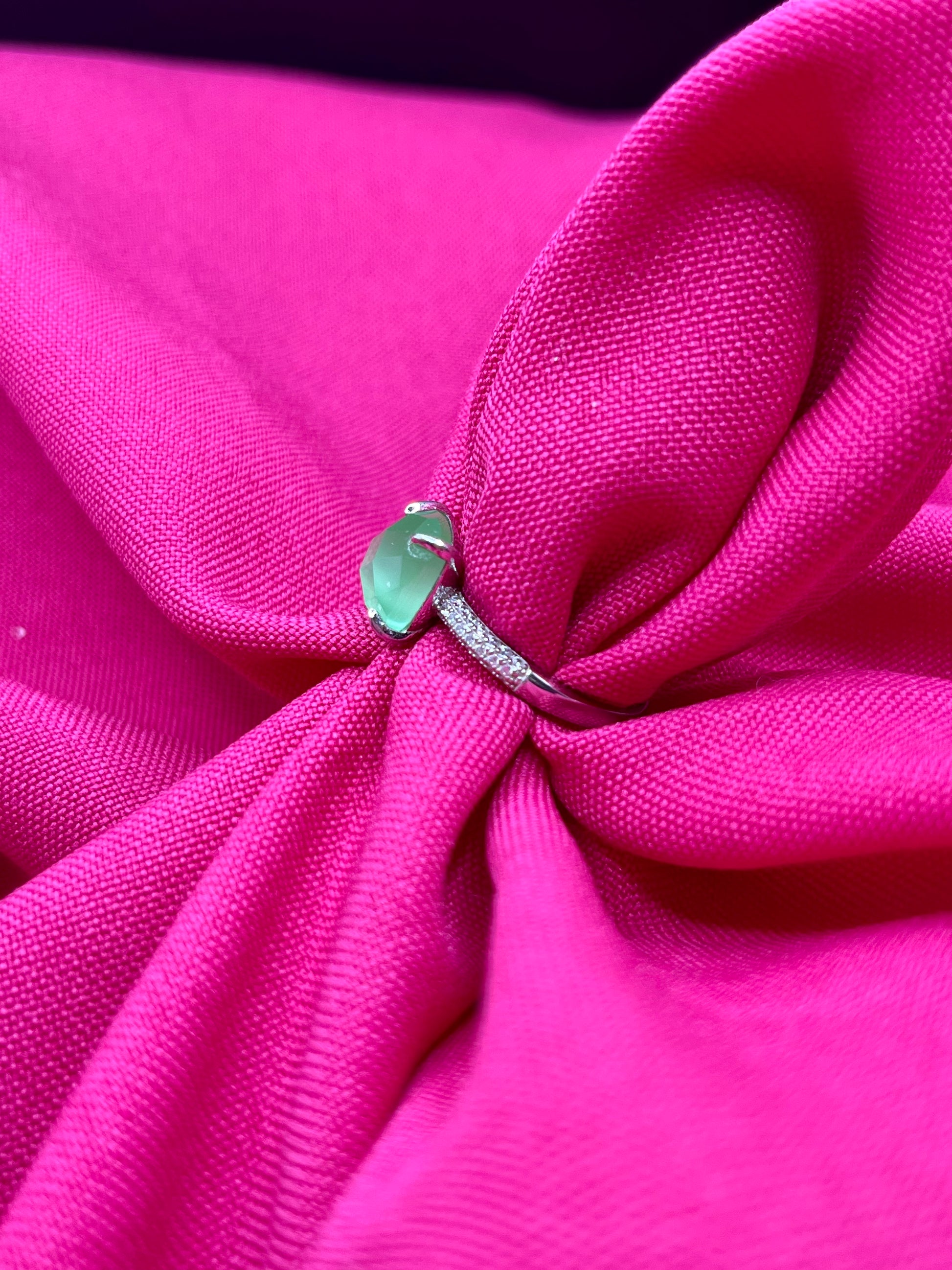 EN/ Very beautiful 925 silver ring with a very beautiful crystal of a pretty water green surrounded by zirconiums. A classic piece that is out of the ordinary by its color.